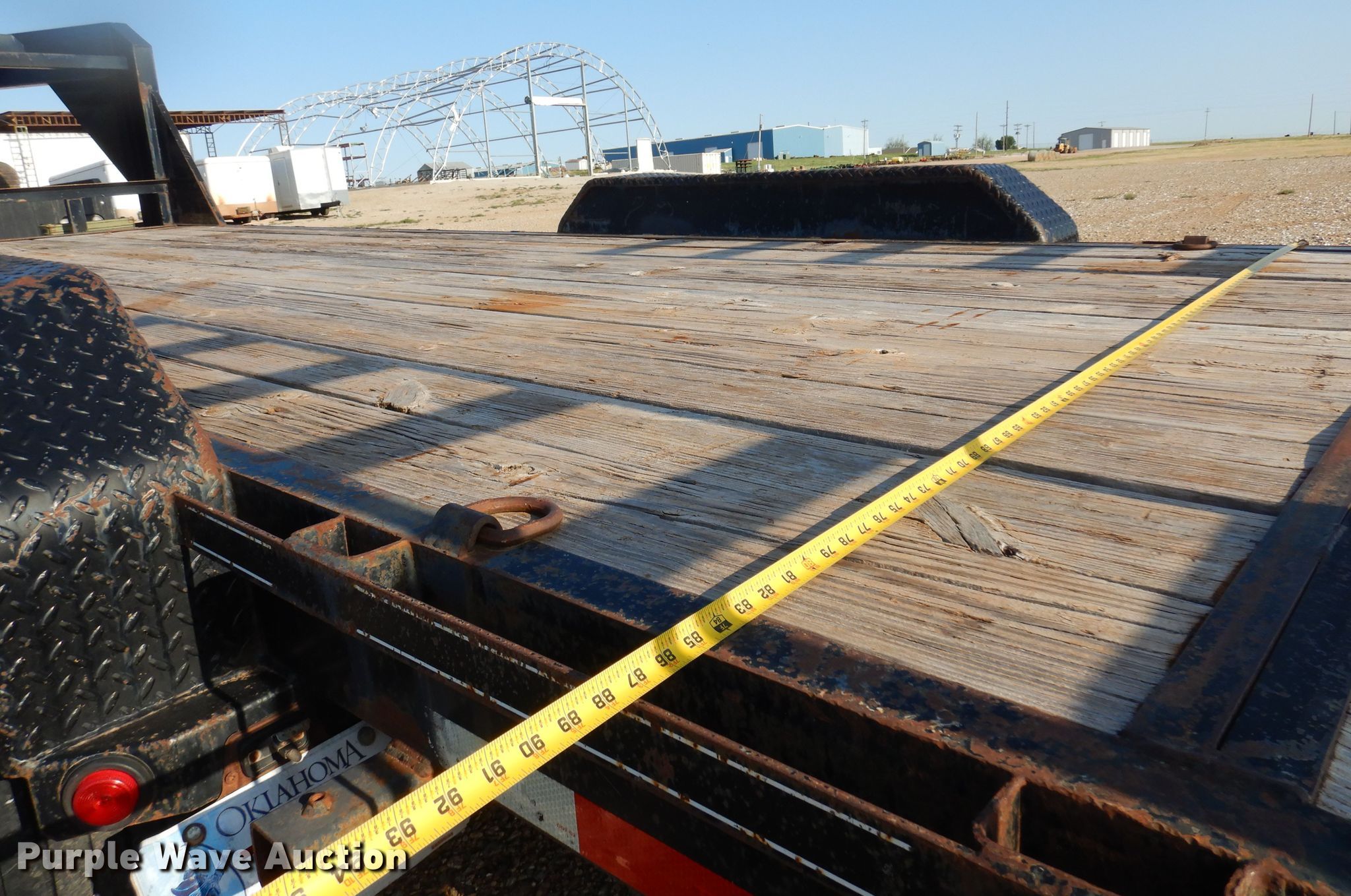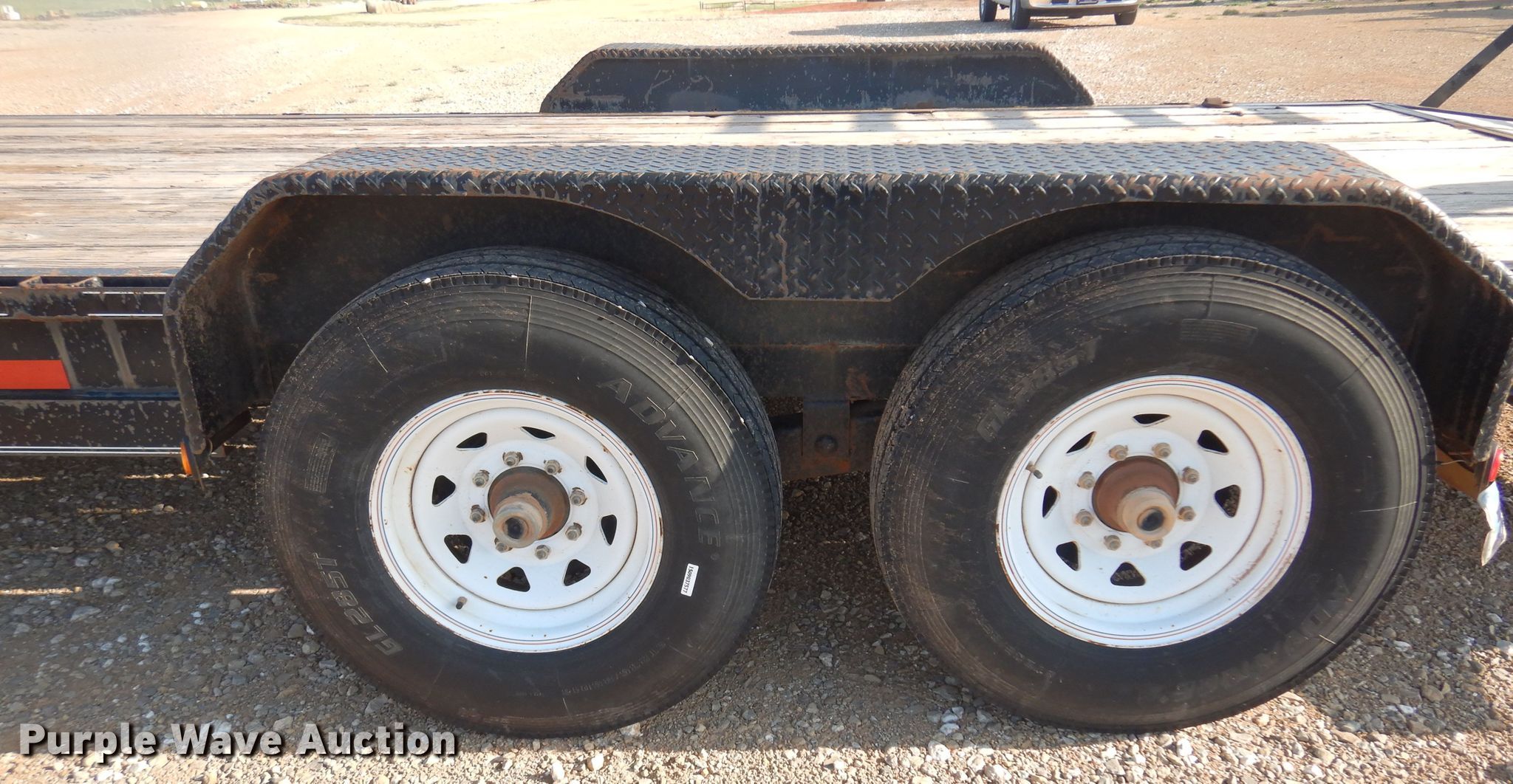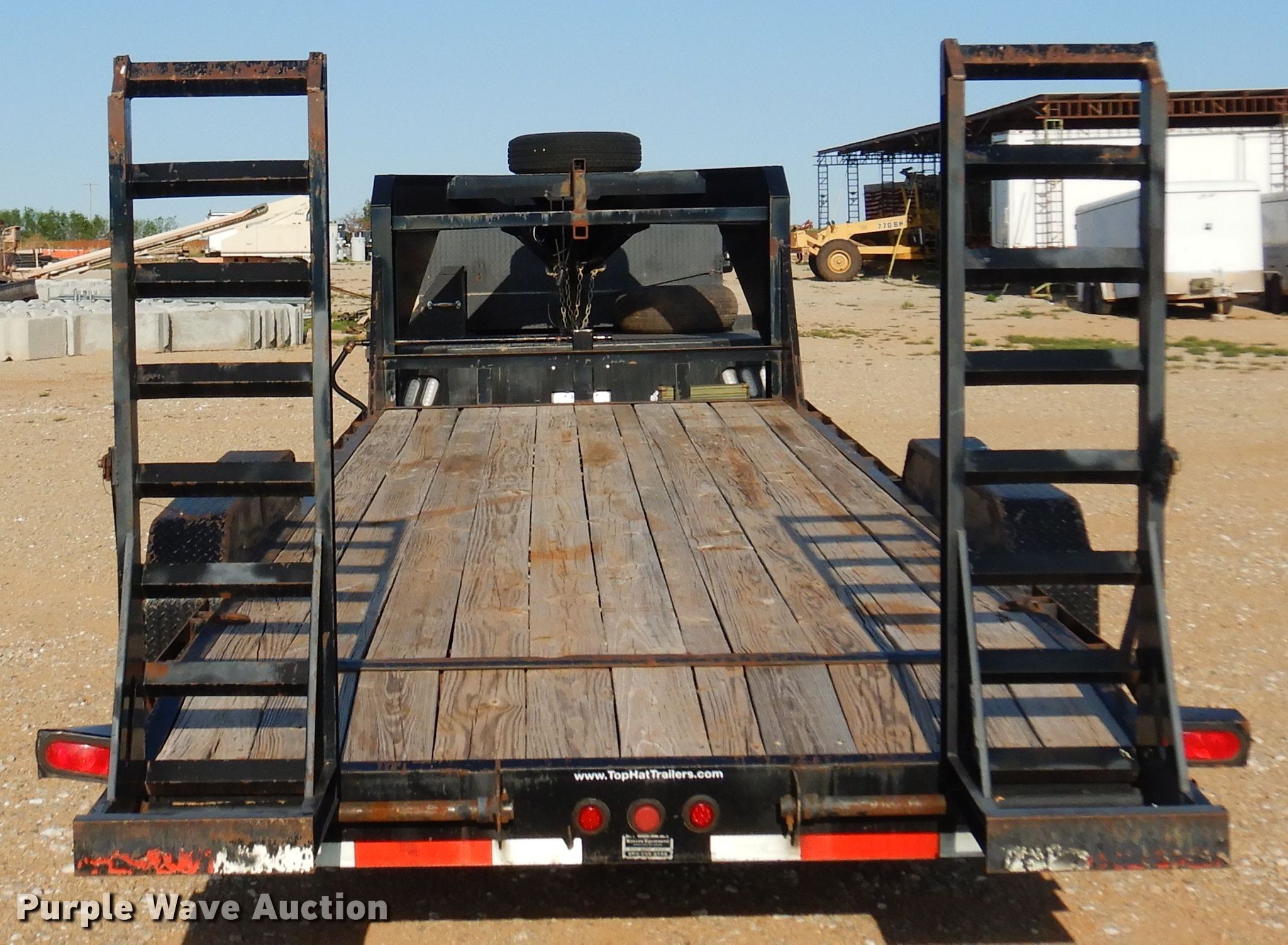2013 Top Hat equipment trailer. VIN: 4R7GU2228DT124005. Dimensions Overall: 28' L x 102" W, Deck: 20' L x 84" W, Tail length: 2', Ramps: Manual Length: 4' 9". Features Deck type: Steel. Chassis Hitch: Gooseneck, Landing gear: Single, Suspension: Spring, Brakes: Electric, Axles: Tandem, GVWR: 14,000 lbs, GAWR: 6,840 lbs. Tires Steel wheels, Size: 235/85R16. Oklahoma title. Title distribution may be delayed up to 14 days from verification of funds. J and J Solutions. Perry, OK 73077
