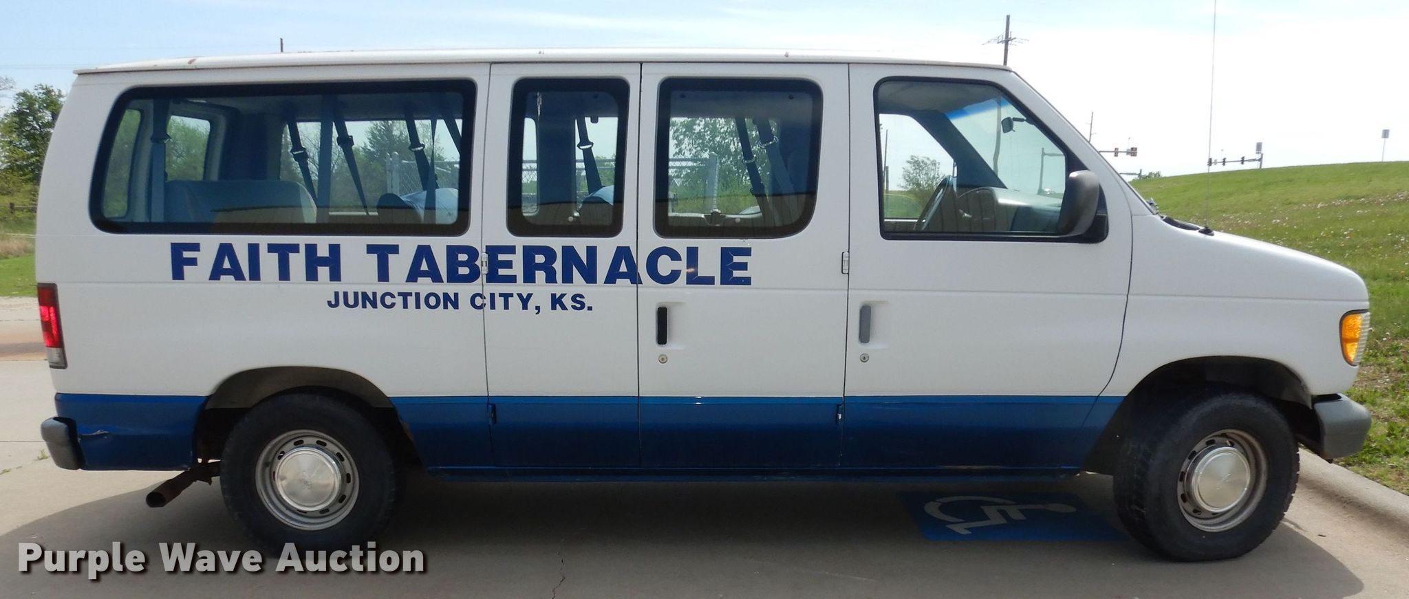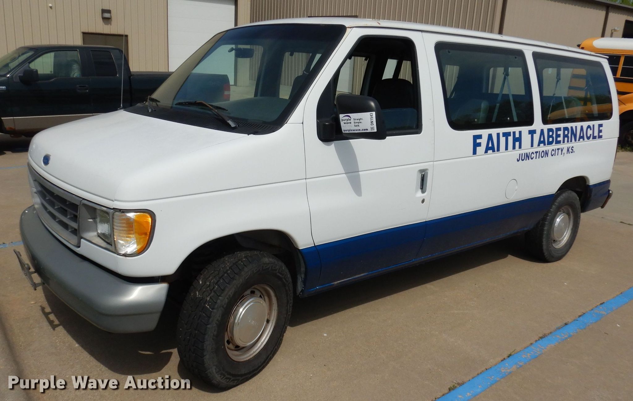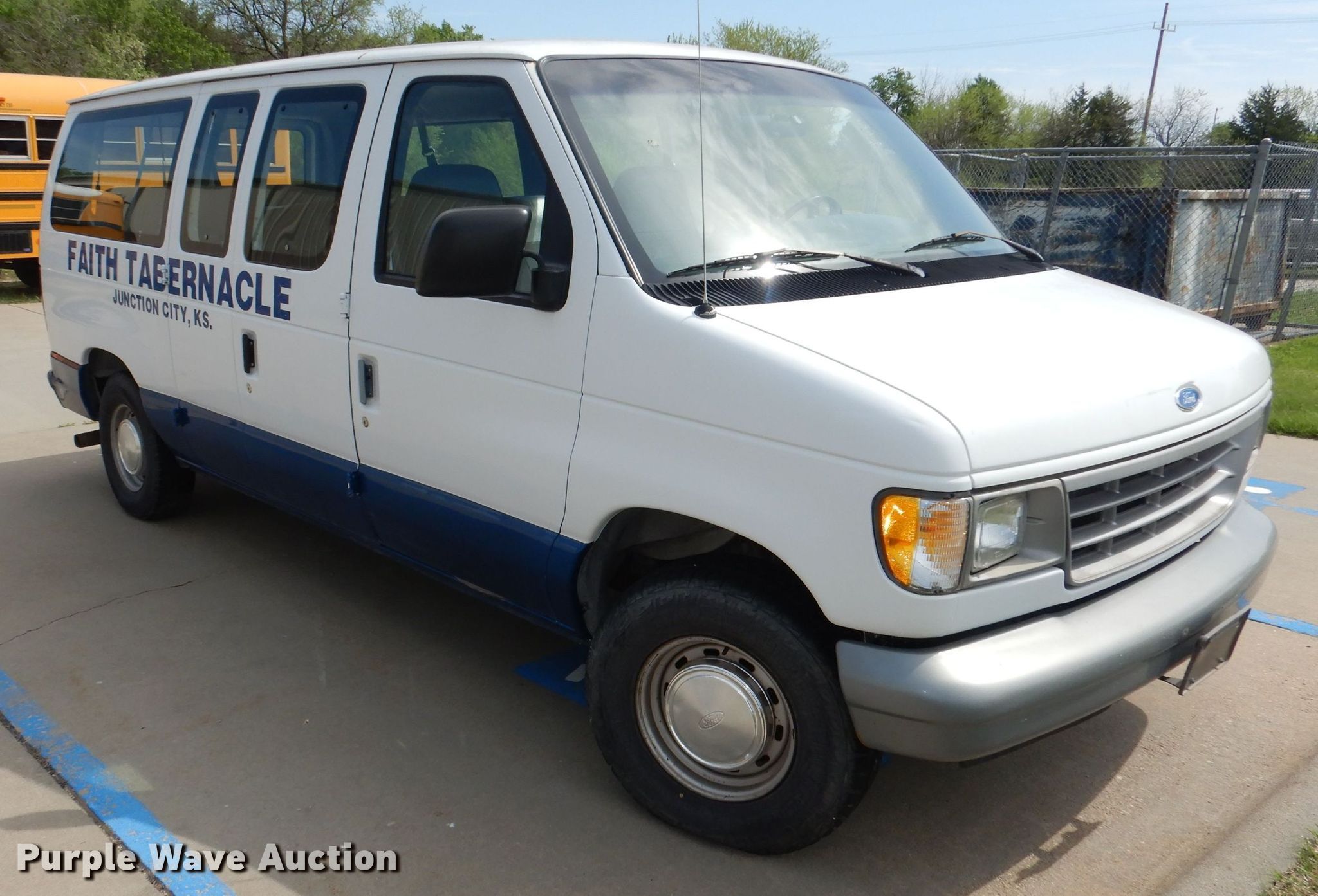 1996 Ford Club Wagon van. Miles: 163,106 on odometer, VIN: 1FMEE11H2THB37766. Engine Displacement: 5.8L V8 OHV, Cylinders: 8, Fuel type: Gas. Transmission Automatic. Interior AC, Heat, Power windows, Power locks, Cruise control. Tires Size: 235/75R15. Notes Decals will be removed or painted over prior to auction, Dash warning indicator: ABS, Air bag, Dead battery. Kansas title. Faith Tabernacle. Junction City, KS 66441