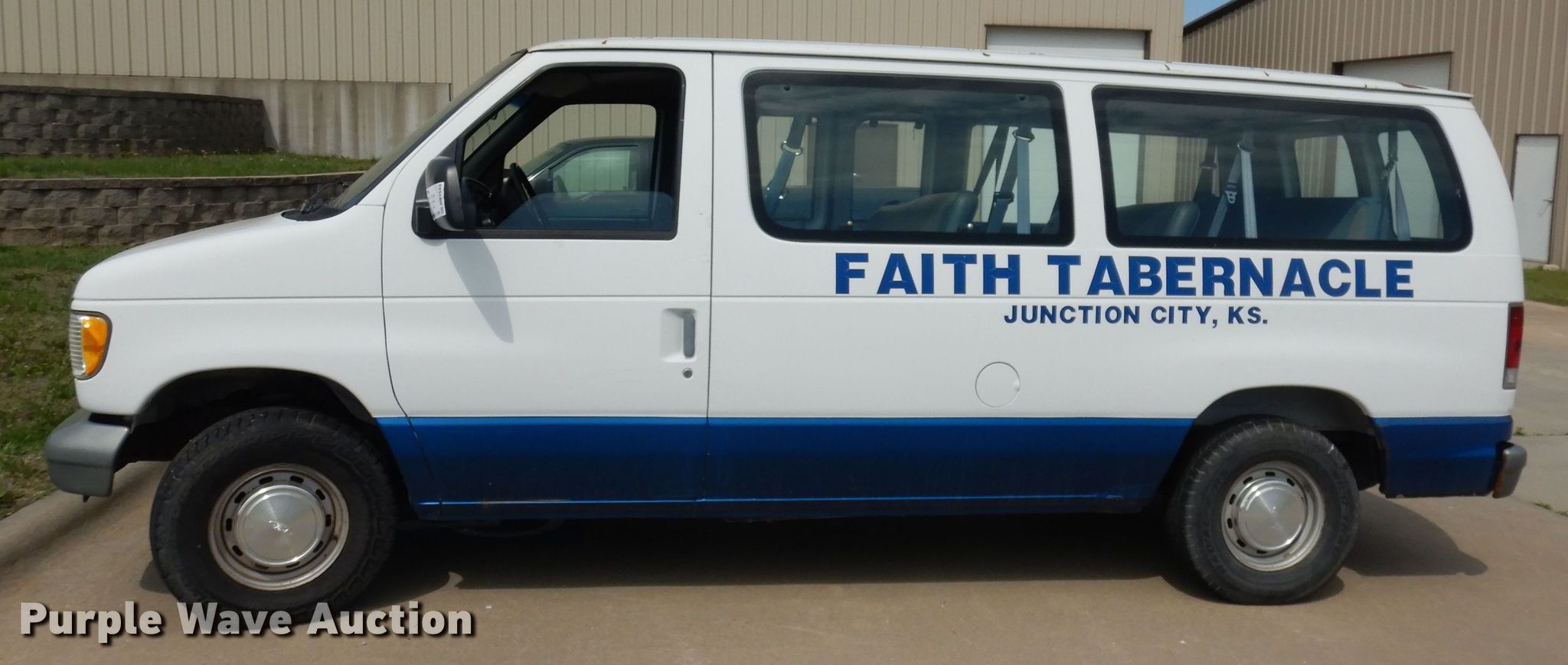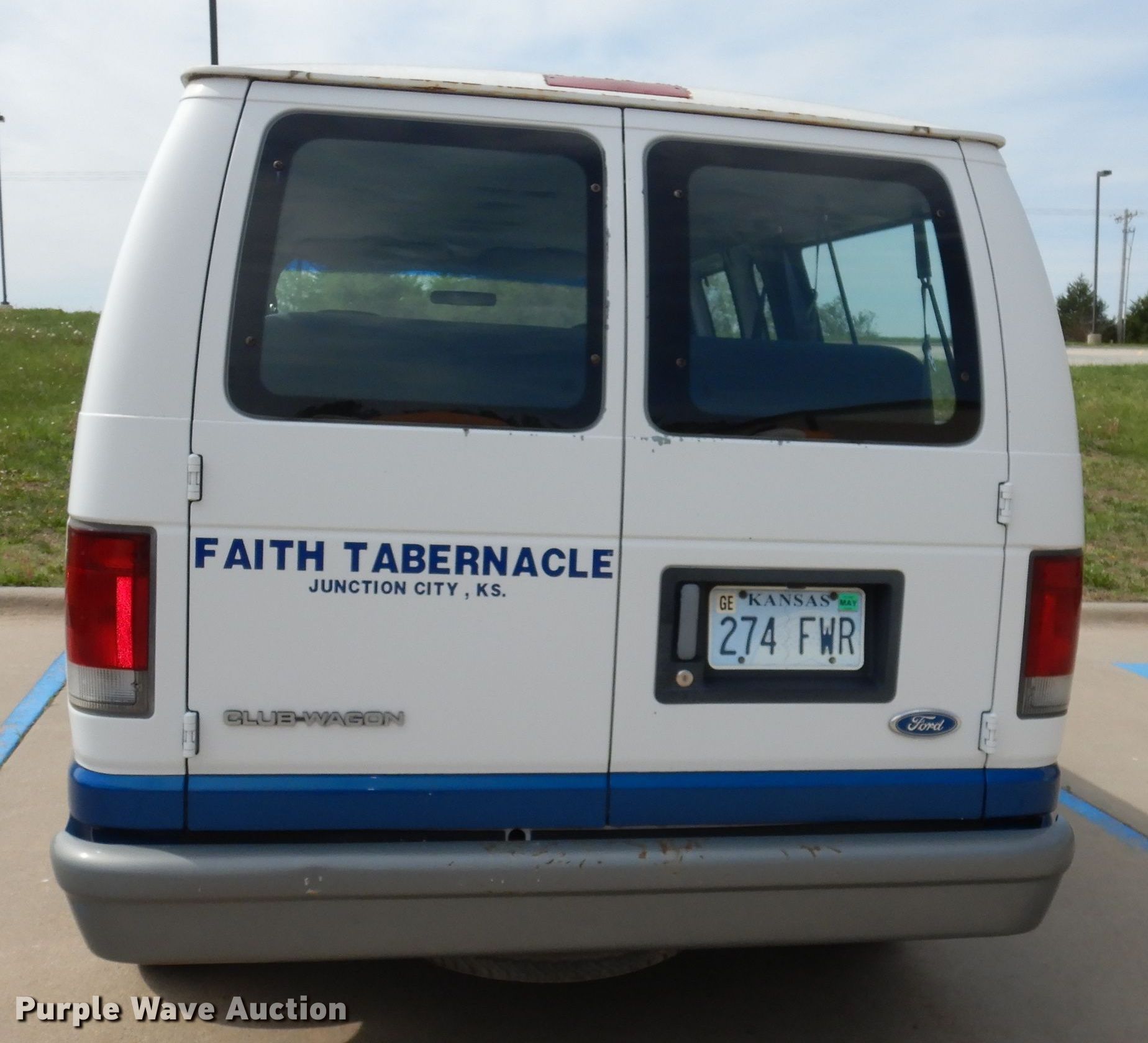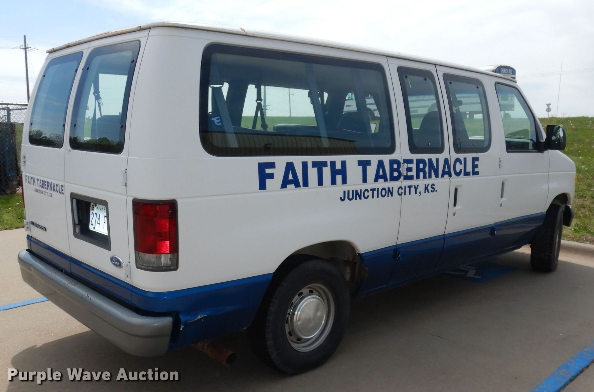 1996 Ford Club Wagon van. Miles: 163,106 on odometer, VIN: 1FMEE11H2THB37766. Engine Displacement: 5.8L V8 OHV, Cylinders: 8, Fuel type: Gas. Transmission Automatic. Interior AC, Heat, Power windows, Power locks, Cruise control. Tires Size: 235/75R15. Notes Decals will be removed or painted over prior to auction, Dash warning indicator: ABS, Air bag, Dead battery. Kansas title. Faith Tabernacle. Junction City, KS 66441