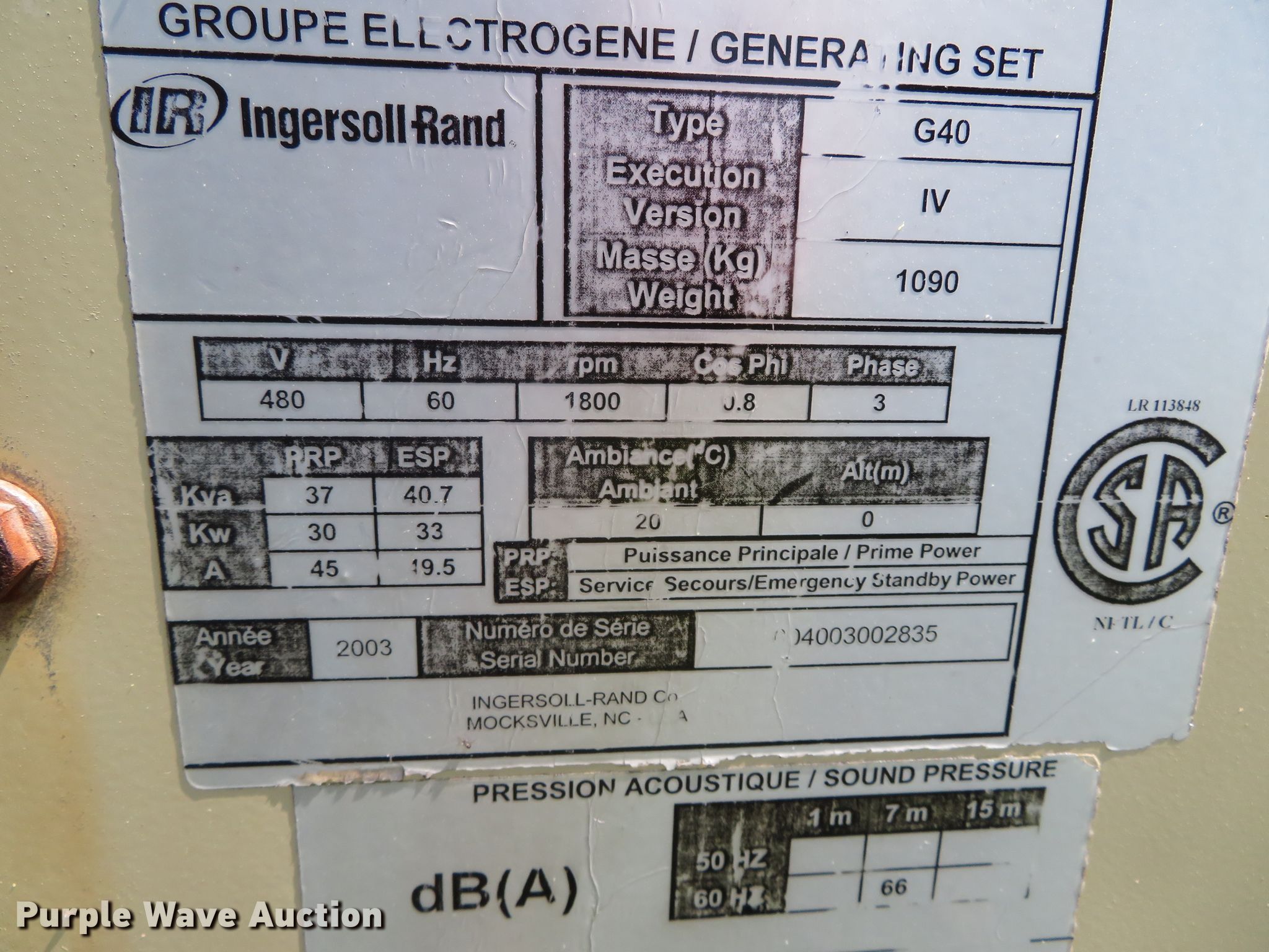 2003 Ingersoll Rand G40 IV generator | SOLD! June 01 Vehicles and Equipment Auction