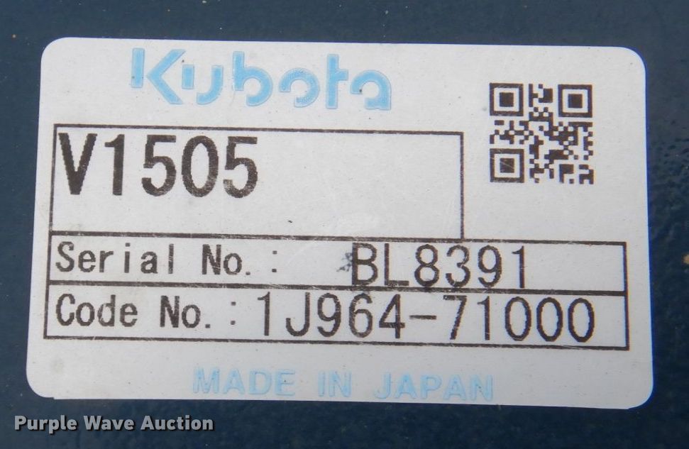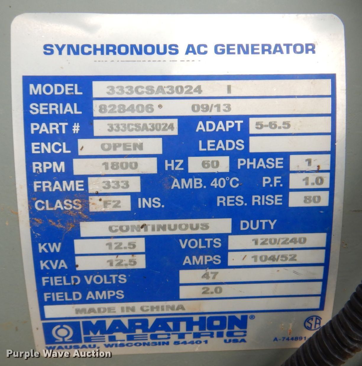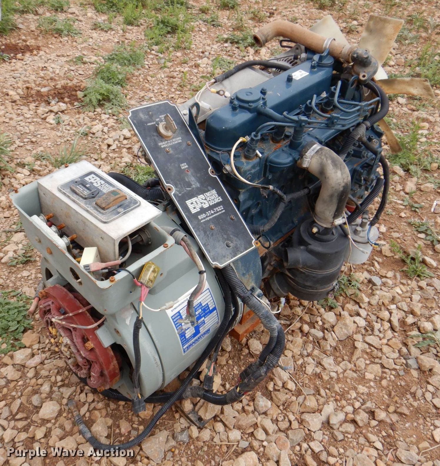 Engine Power Source generator. Serial: 828406. Engine Kubota V1505, Serial: BL8391, Displacement: 1.5L, Cylinders: 3, Fuel type: Diesel, kW: 16.4. Features Generator Marathon Electric 333CSA3024, kW: 12.5, Phase: Single, Electric start. Notes Parts missing, Non-operational unit. 6675 County Rd 415. Merkel, TX 79536