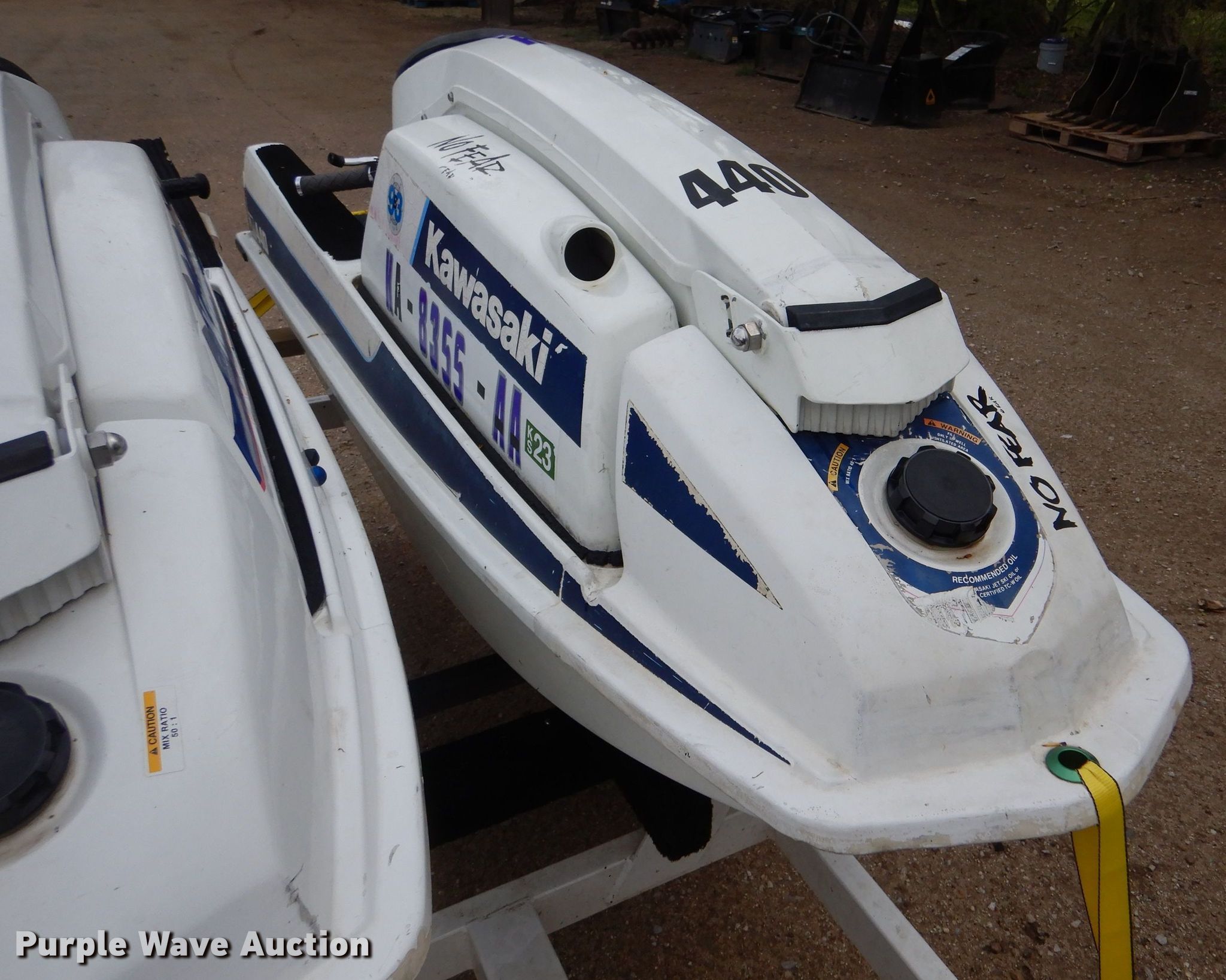 (2) personal watercraft. 1992 Kawaski 440. Hull ID: KAW00146G192. Engine Serial: TC440B055802, Cylinders: 2, Fuel type: Gas. 1990 Kawasaki 440 Hull ID: KAW00319H990. Engine Serial: TC440B048602, Cylinders: 2, Fuel type: Gas. 2008 Trailer VIN: 19BEE11168CC80020, B&M Haul Rite, GVWR: 1,460 lbs, Ball hitch size: 2", Axles: Single, Tire size: 4.80-12. Transfer of ownership documentation will be a bill of sale. Tri Rivers Concrete Const LLC. Salina, KS 67401