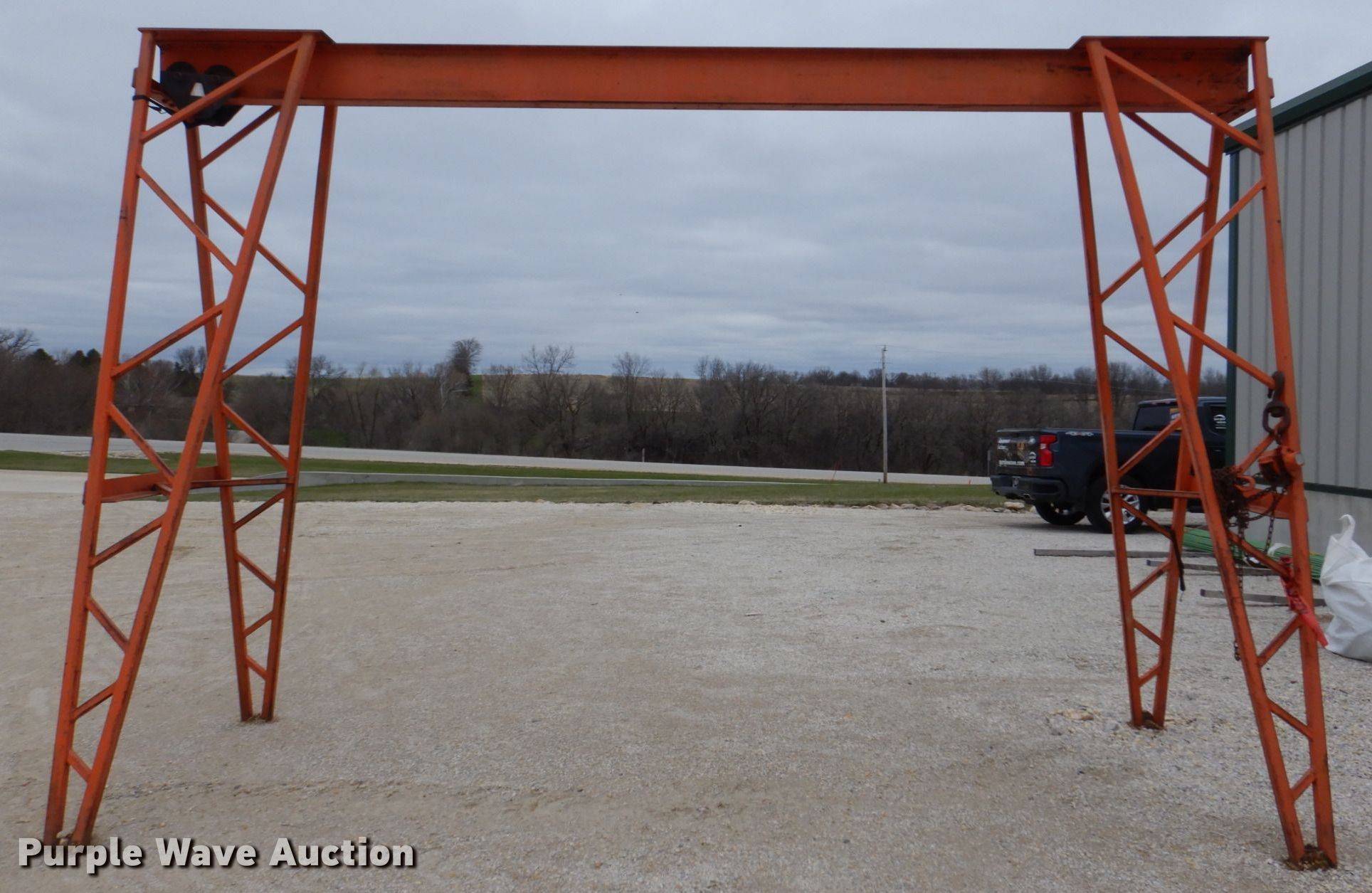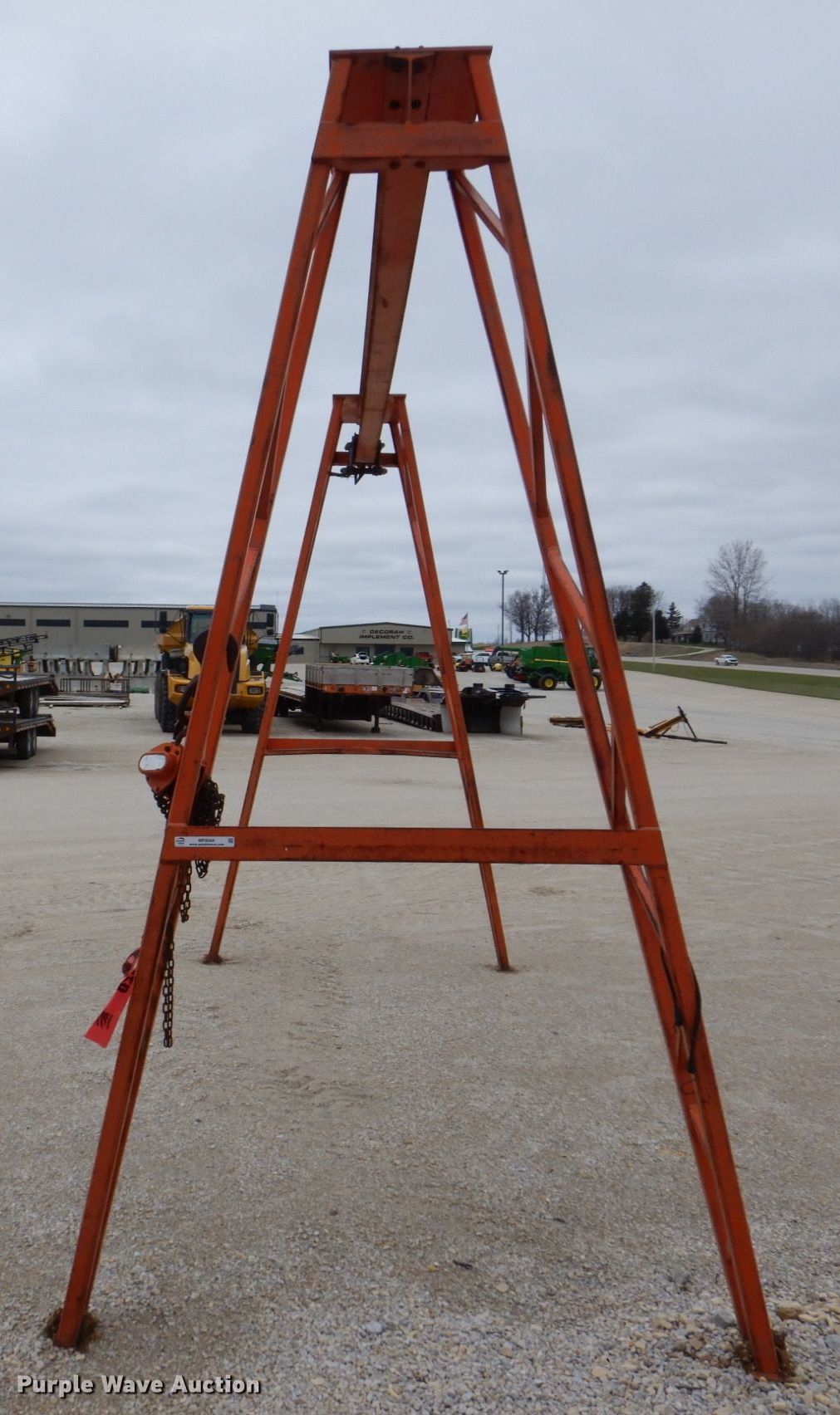 Purple Wave is selling a used Tools in Iowa. This item is a A-frame hoist with the following: 16'W x 10'H, Dayton two ton trolly, American Gauge & Mfg No. 9812 chain hoist, Capacity: 1/2 ton