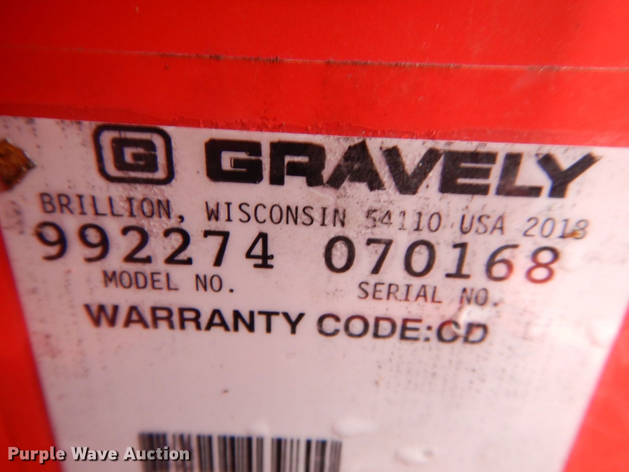 Purple Wave is selling a used Commercial Turf Mower in Minnesota. This item is a 2018 Gravely Pro-Turn 460 ZTR lawn mower with the following: Model: 992274, Hours: 88 on meter, Cutting width: 60", Serial: 070168