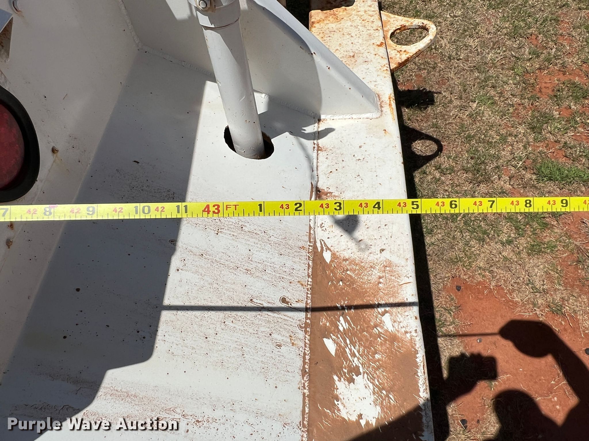 1993 Eagle TSPT tank trailer. VIN: 1VT1993011062130B. Dimensions Overall: 43' L x 8' W. Features Tank type: Steel Capacity: 130 BBL, Baffles: 4, Outlet valves: 3 Size: 4", No. of manways/manholes: 4 Width: 20", Full length walkway. Chassis Hitch: Fifth wheel, Landing gear: Dual, Two speed, Suspension: Spring, Brakes: Air, Axles: Tandem. Tires Steel wheels, Size: 11R24.5. Oklahoma title. Title distribution may be delayed up to 14 days from verification of funds. Canyon Oilfield Services. 11552 Hwy 6 South. Elk City, OK 73644