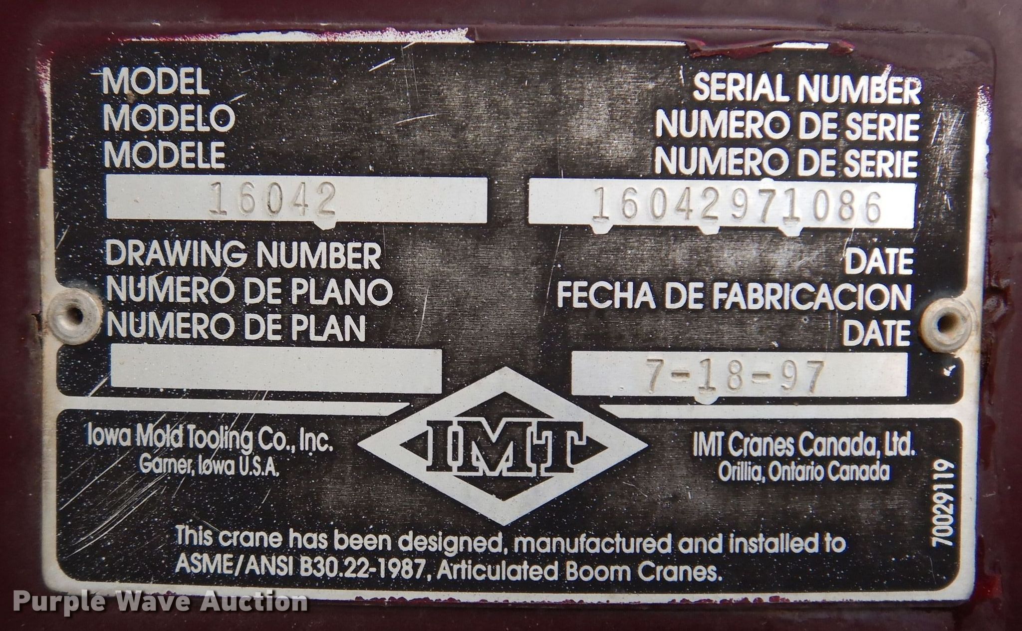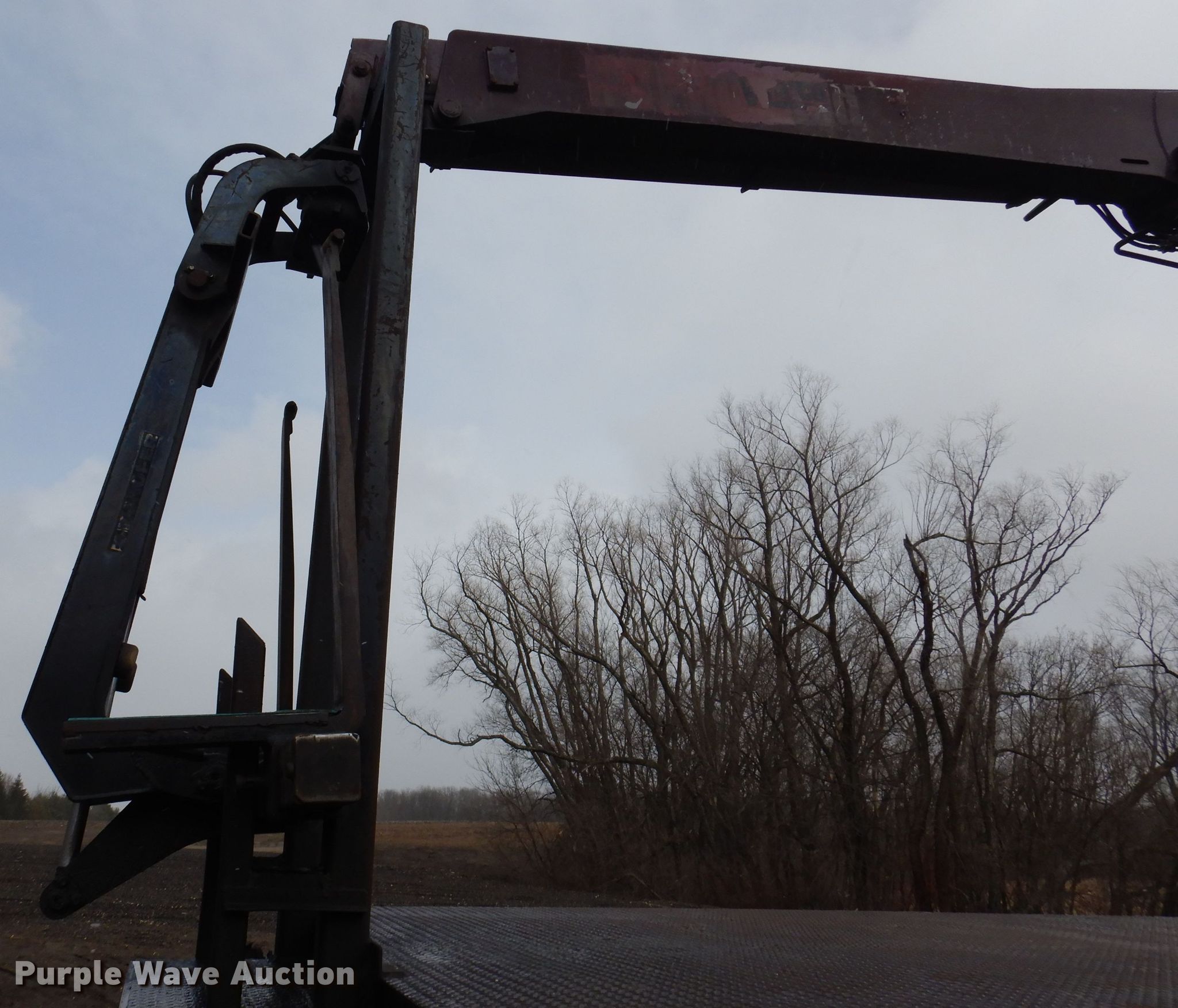 1998 Ford Louisville crane truck. Miles: 193,346 on odometer, Hours: 20,436 on meter, VIN: 1FDZS96T9WVA17989. Engine Caterpillar 3306, Serial: 9TL17321, Displacement: 10.5L, Cylinders: 6, Fuel type: Diesel, HP: 300, Engine brake. Transmission Eaton Fuller, Manual, Speed: 10. Chassis Axles: Triple, Tag axle, Suspension: Walking beam, Brakes: Air. Interior AC, Heat. Features Flatbed IMT, Crane Boom Telescopic, Knuckle, Boom length: 42', Sections: 3, Maximum lift capacity: 6,000 lbs, Boom controls Ground, Lift chart. Tires Front: 385/65R22.5, Rear: 11R22.5, Tag axle: 10R17.5. Minnesota title. Seller is a Minnesota licensed motor vehicle dealer. The buyer may be required to pay sales tax and/or registration fees to the dealer prior to taking possession. Title will be assigned and distributed by the dealer. Please contact the seller for distribution questions. 14203 230th. Hutchinson, MN 55350