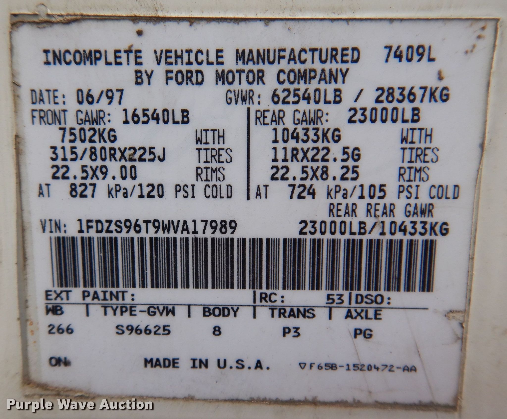 Purple Wave is selling a used Crane Truck in Minnesota. This item is a 1998 Ford Louisville crane truck with the following: Miles: 193,346 on odometer, Hours: 20,436 on meter, VIN: 1FDZS96T9WVA17989