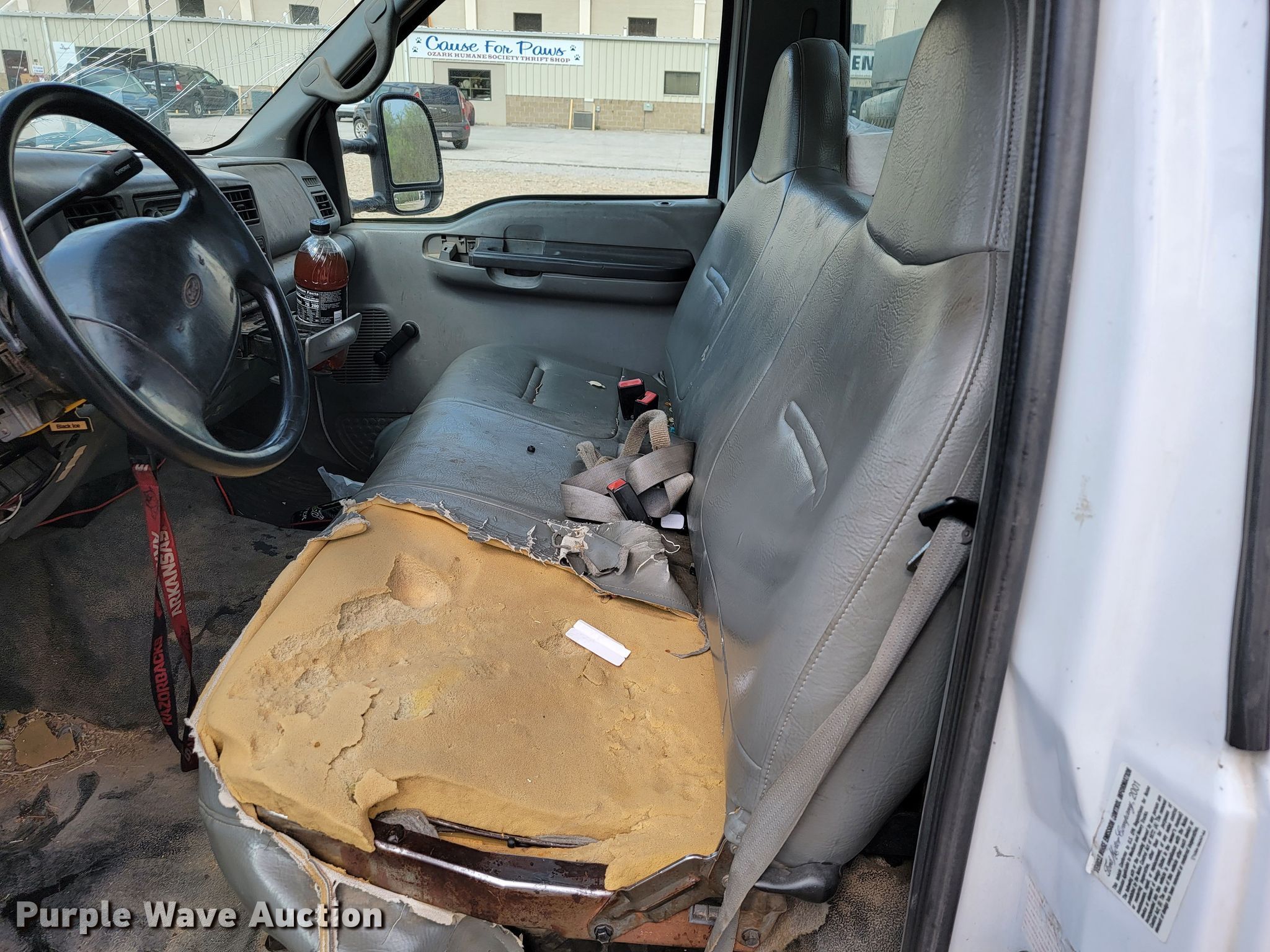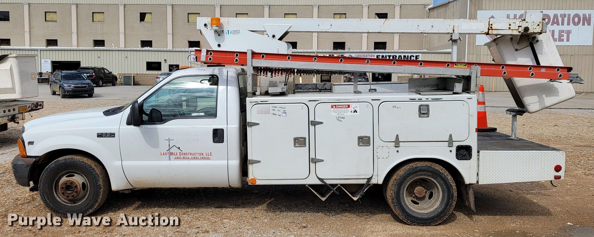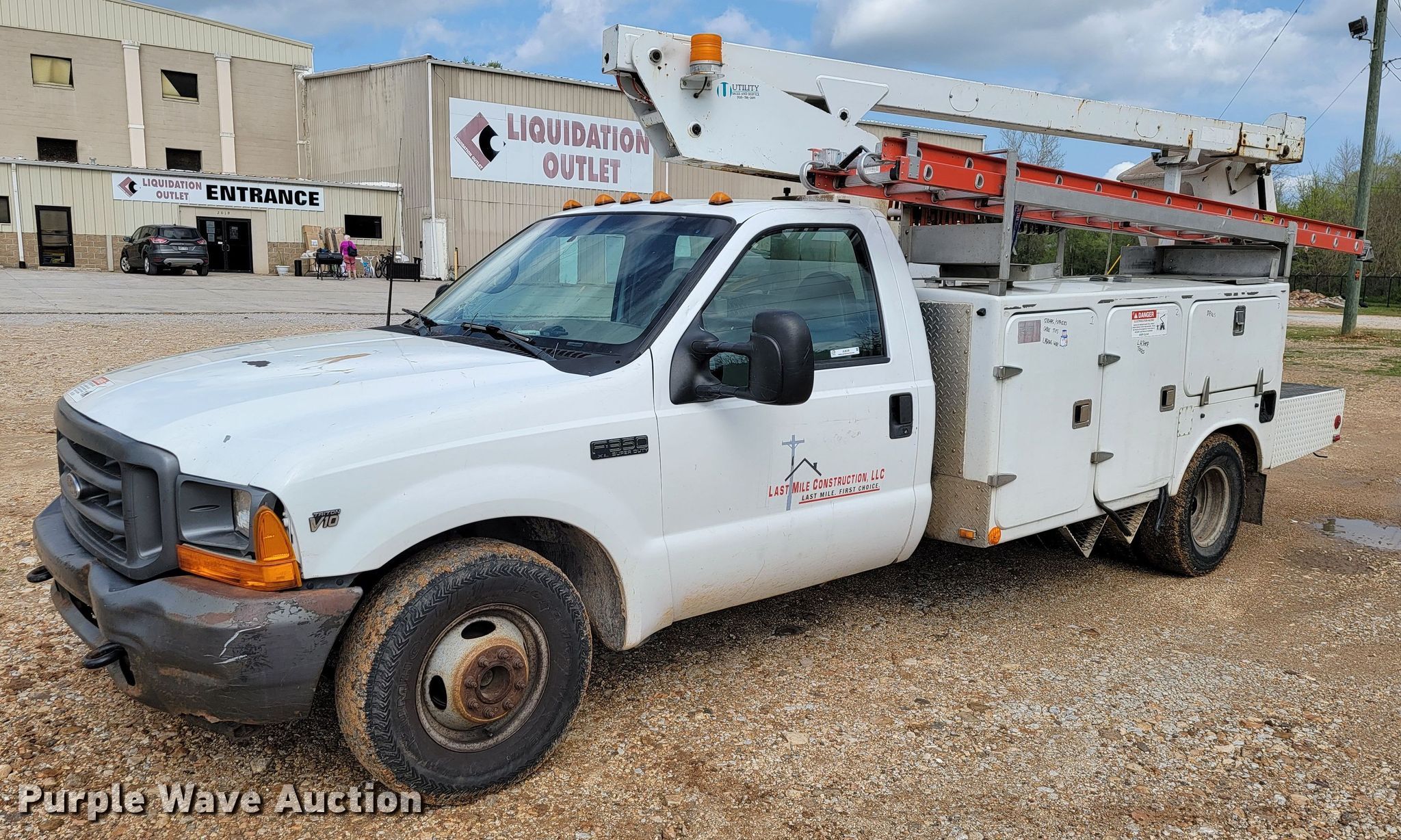 This 2002 Ford F350 Super Duty XL bucket truck will sell to the highest bidder regardless of price.