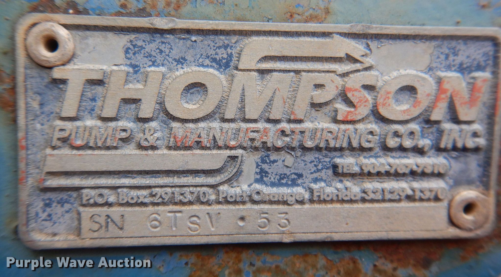 Purple Wave is selling a used Irrigation Pump in Iowa. This item is a Thompson water pump with the following: Hours: 4,778 on meter, Serial: 6TSV-53