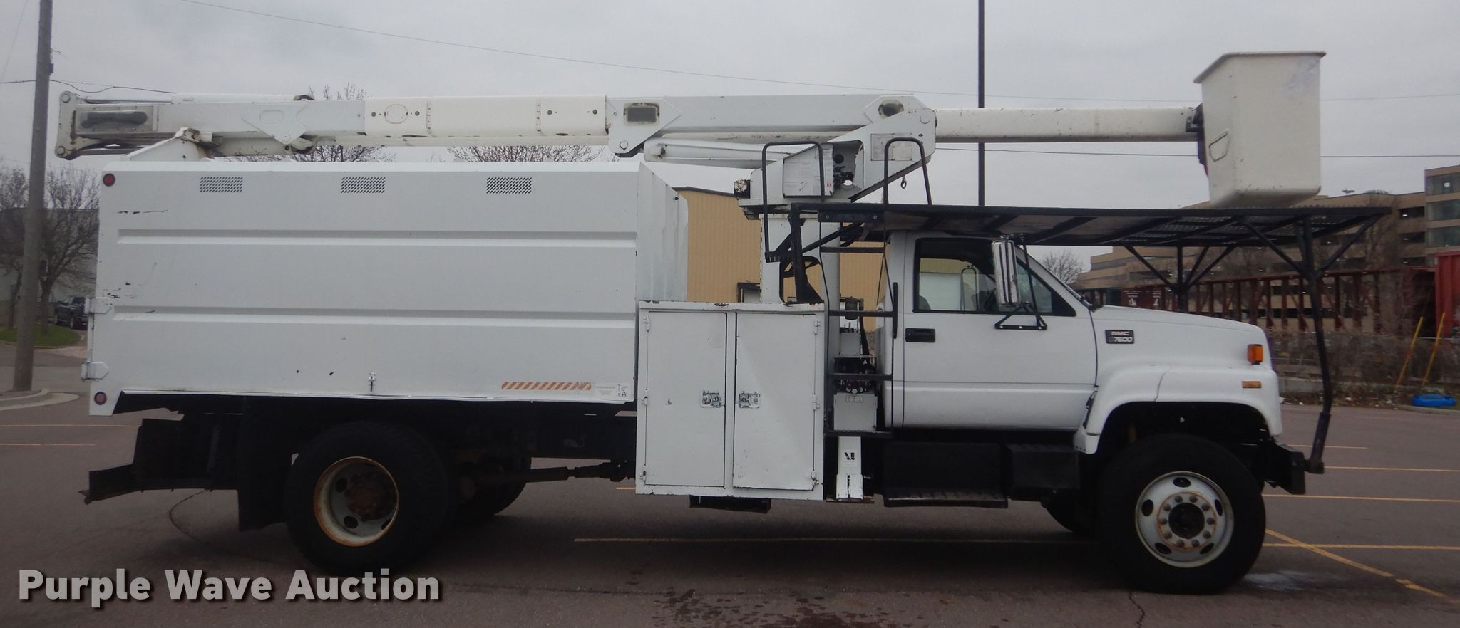 Purple Wave is selling a used Bucket Truck in South Dakota. This item is a 2002 GMC C7500 forestry bucket truck with the following: Miles: 174,600 on odometer, VIN: 1GDM7H1C12J518275