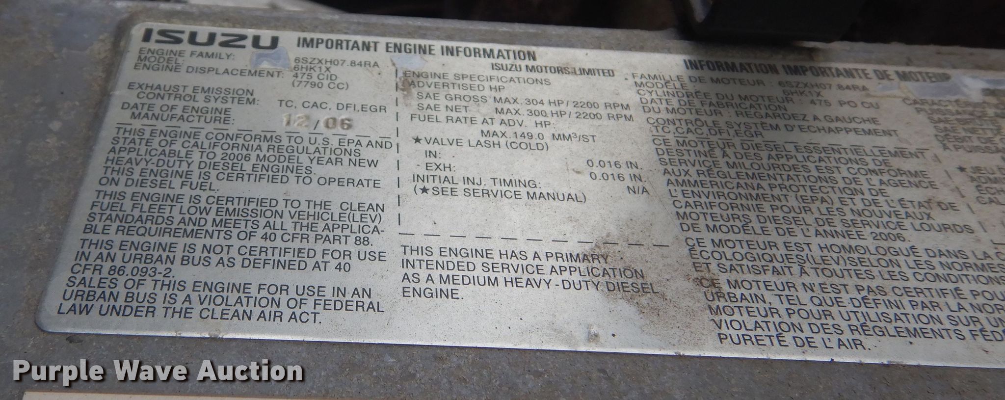 2007 GMC T7500 dump flatbed truck. Miles: 99,366 on odometer, VIN: 1GDM7F1327F419334. Engine Isuzu 6HK1X, Displacement: 7.8L, Cylinders: 6, Fuel type: Diesel. Transmission Automatic. Chassis Axles: Single, Suspension: Spring, Brakes: Air, PTO, GVWR: 29,000 lbs. Interior AC, Heat, Brake controller. Features Dump flatbed 16' L x 102" W, Ram: Double. Tires Size: 10R22.5. Notes Dash warning indicator: ABS. South Dakota title. 909 S 9th Ave. Sioux Falls, SD 57104