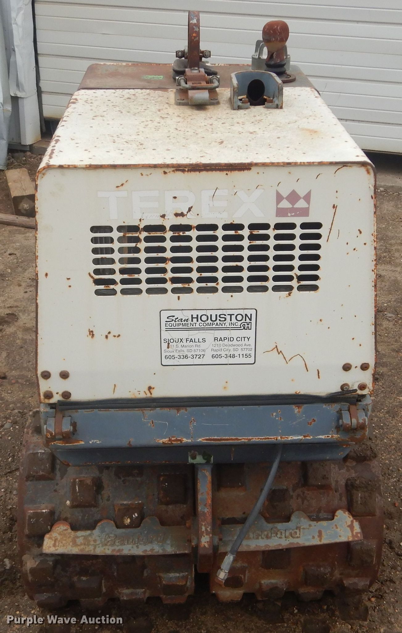 Terex BTR850 trench compactor. Serial: SLBT0000E101LK003. Engine Hatz, Cylinders: 2, Fuel type: Diesel. Transmission Hydrostatic, Two speed travel. Features Vibratory system Two speed, Drum: Padfoot Width: 33", Diameter: 19", Drum scrapers: Front, Rear, Remote control. Notes Remote control, Remote battery dead. Kyburz-Carlson Construction. 409 7th Ave SW. Aberdeen, SD 57401