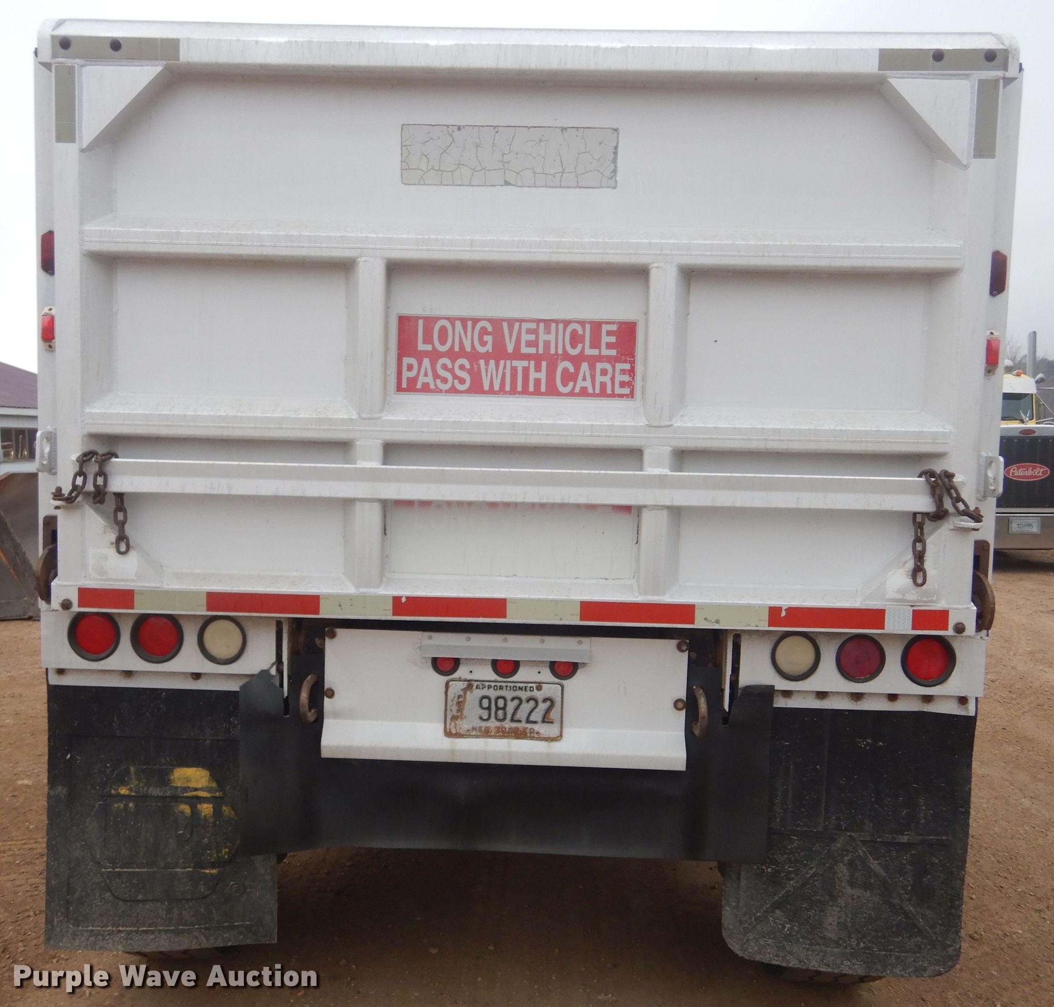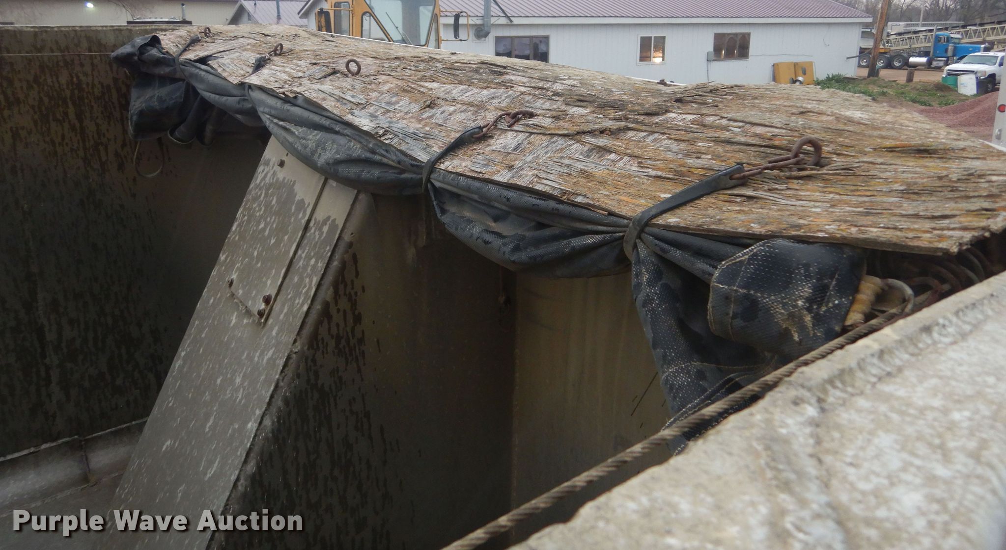 1993 Cornhusker end dump pup trailer. VIN: 1F9LC1930P0007743. Dimensions Overall: 38' L x 8' W, Body: 14' L x 8' W, Side height: 57". Features Body type: Aluminum, Ram: Single, End gate: Air operated, Roll tarp. Chassis Landing gear: Single, Suspension: Spring, Brakes: Air, Axles: Triple. Tires Aluminum wheels, Size: 385/65R22.5. Nebraska title. Title distribution may be delayed up to 14 days from verification of funds. Sinclair Sand & Gravel INC.. Spencer, NE 68777