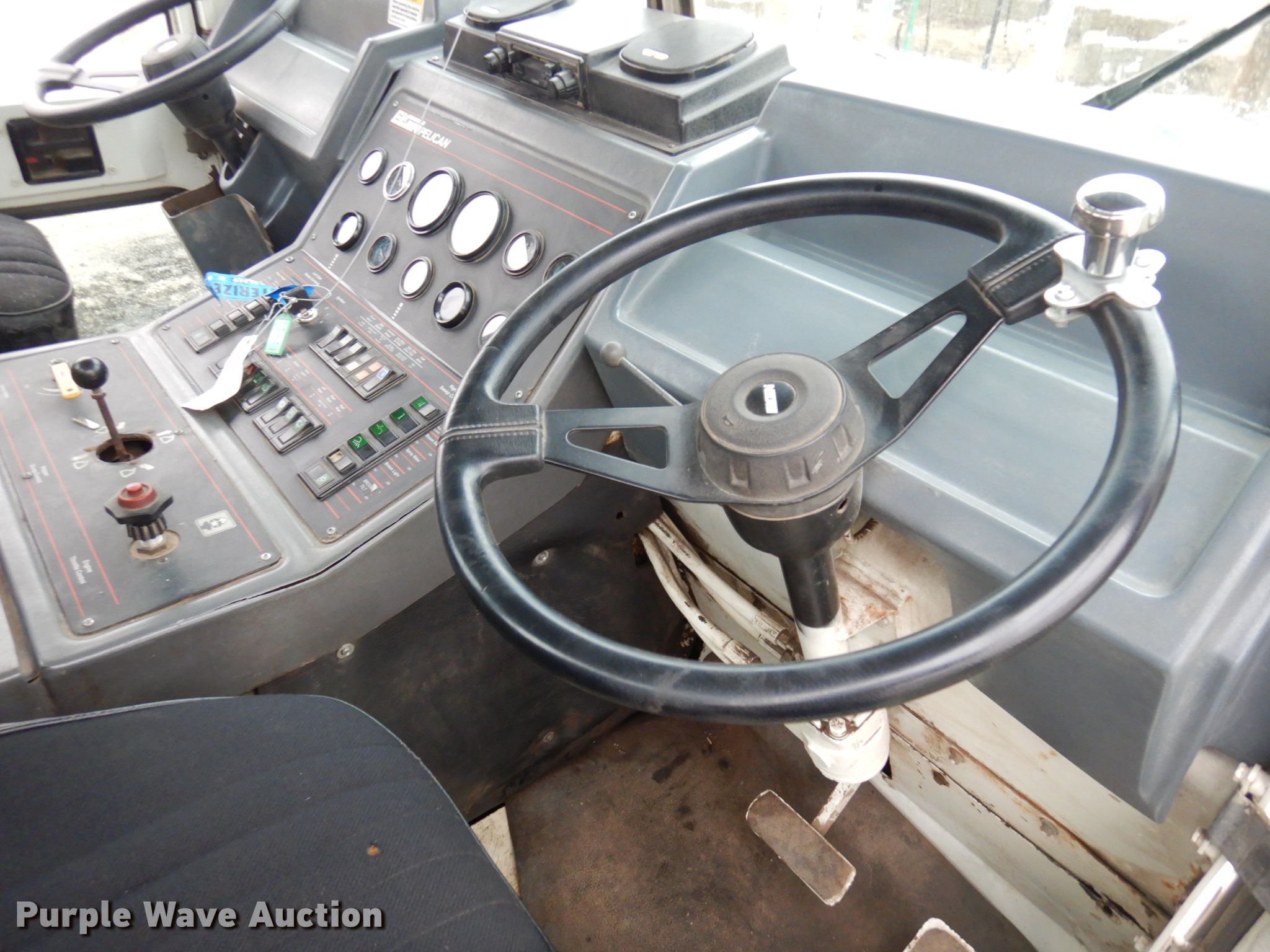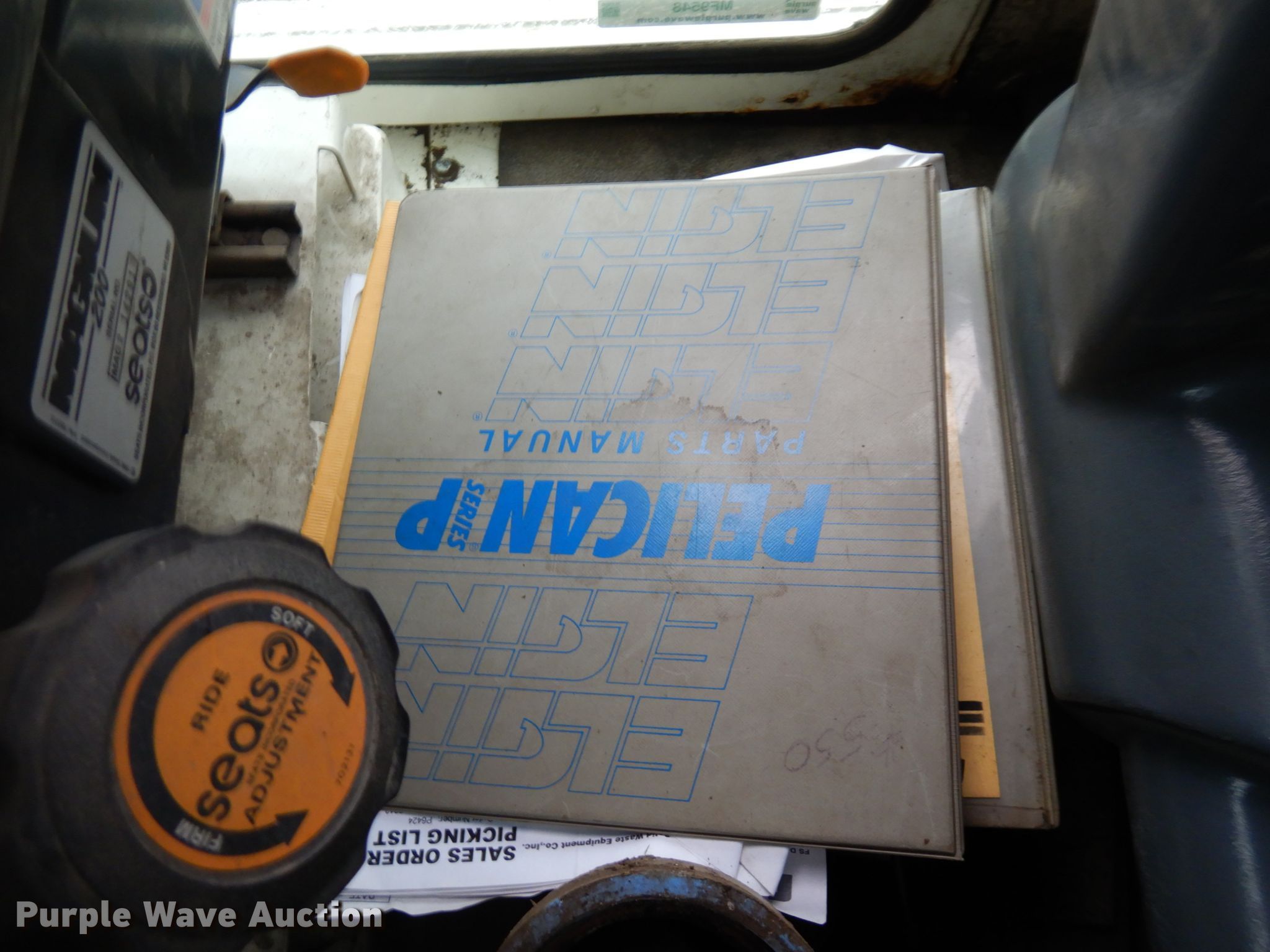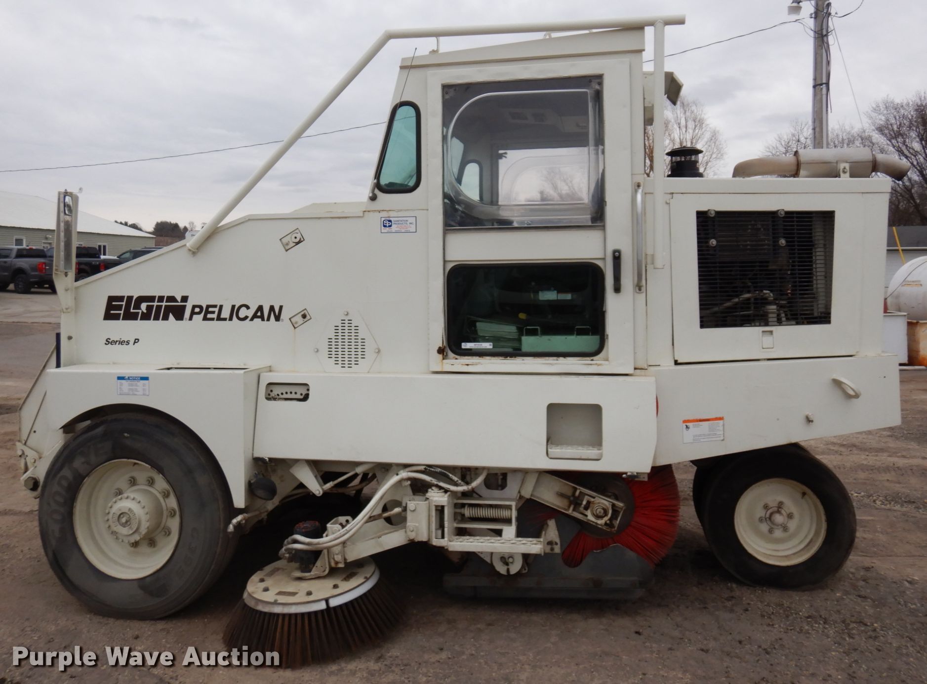 Elgin Pellican street sweeper. Miles: 28,445 on odometer, Hours: 7,972 on meter. Engine Cylinders: 4, Fuel type: Diesel. Transmission Hydrostatic. Chassis Suspension: Spring, Brakes: Hydraulic. Operators station Enclosed cab, AC, Heat, Dual operating station. Features Width: 66", Water spray system, Sweeper bed Sweeper bed type: Conveyor, Left gutter broom Diameter: 24", Right gutter broom Diameter: 24".. Tires Front: 11R22.5, Rear: 215/75 R17.5. Transfer of ownership documentation will be a bill of sale. Rochester Asphalt Inc. 2904 County Rd 15 SW. Byron, MN 55920