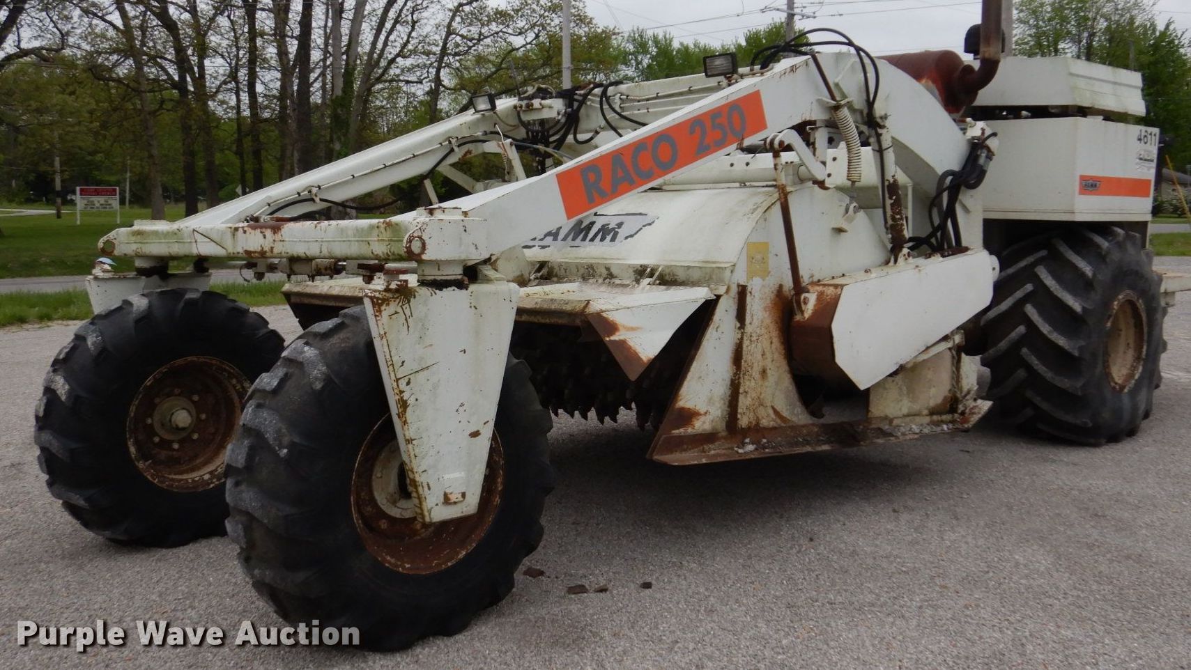 Hamm Raco 250 reclaimer. Hours: 6,181 on meter, Serial: 1197, Unit #: 4611. Engine Deutz, Cylinders: 8, Fuel type: Diesel. Transmission Hydrostatic, Two speed travel. Features Cutting head Width: 86", Diameter: 48", Teeth, Carbide. Tires Front: 28LR26, Rear: 19.5L-24. Mount Vernon Highway Department. 700 George St. Mount Vernon, IL 62864