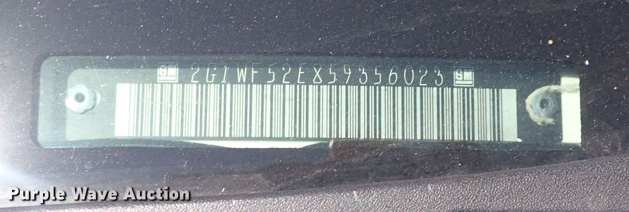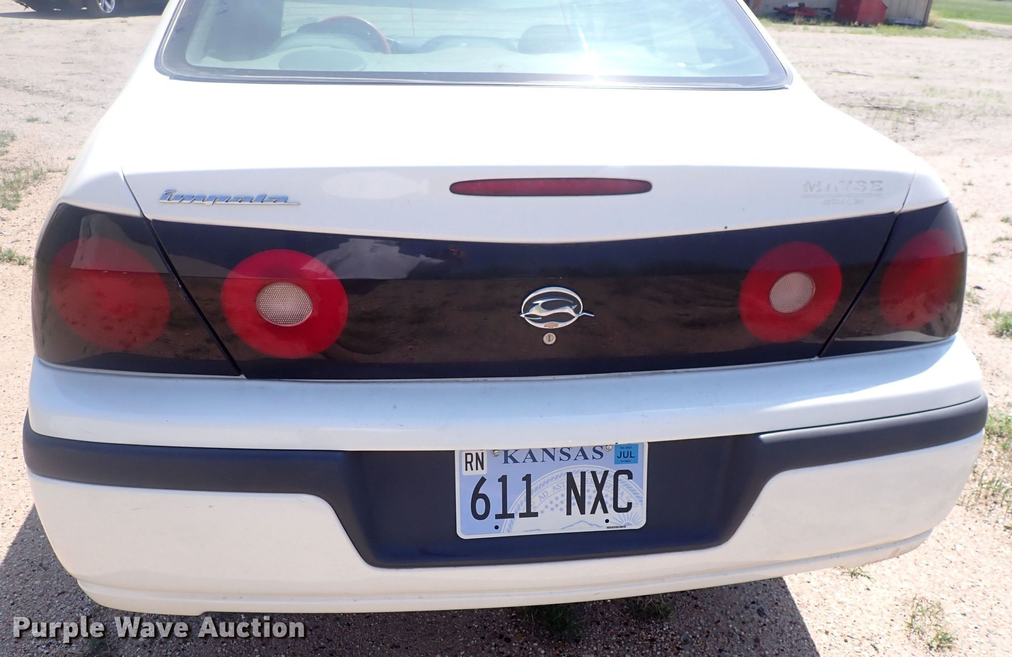 2005 Chevrolet Impala. Miles: 191,641 on odometer, VIN: 2G1WF52E859356023. Engine Displacement: 3.4L V6 OHV, Cylinders: 6, Fuel type: Gas. Transmission Automatic. Interior AC, Heat, Power windows, Power locks, Cruise control. Tires Size: 225/60R16. Notes Unknown operating condition. Kansas title. Title history is unknown. Seized vehicle. Condition and history are unknown. No additional information is available. Reno County Drug Enforcement Unit. Hutchinson, KS 67502