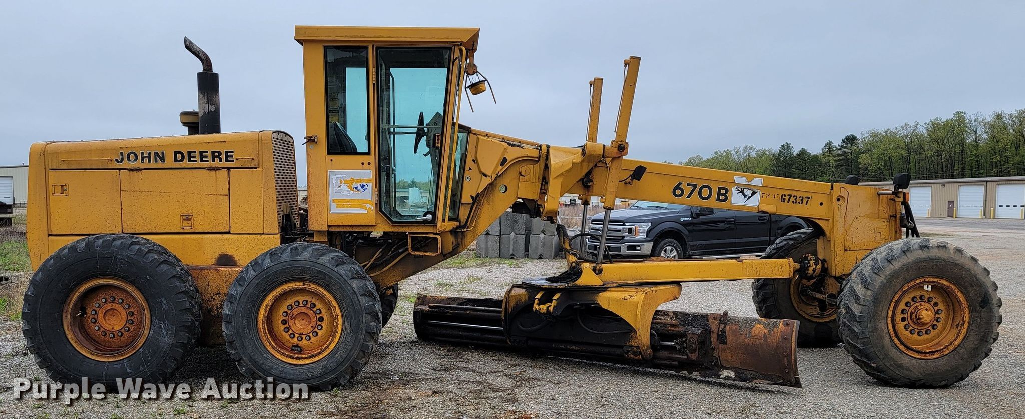 Purple Wave is selling a used Motor Grader in Missouri. This item is a 1988 John Deere 670B motor grader with the following: Hours: 2,179 on meter, Serial: DW670BX520555, Unit #: G7337