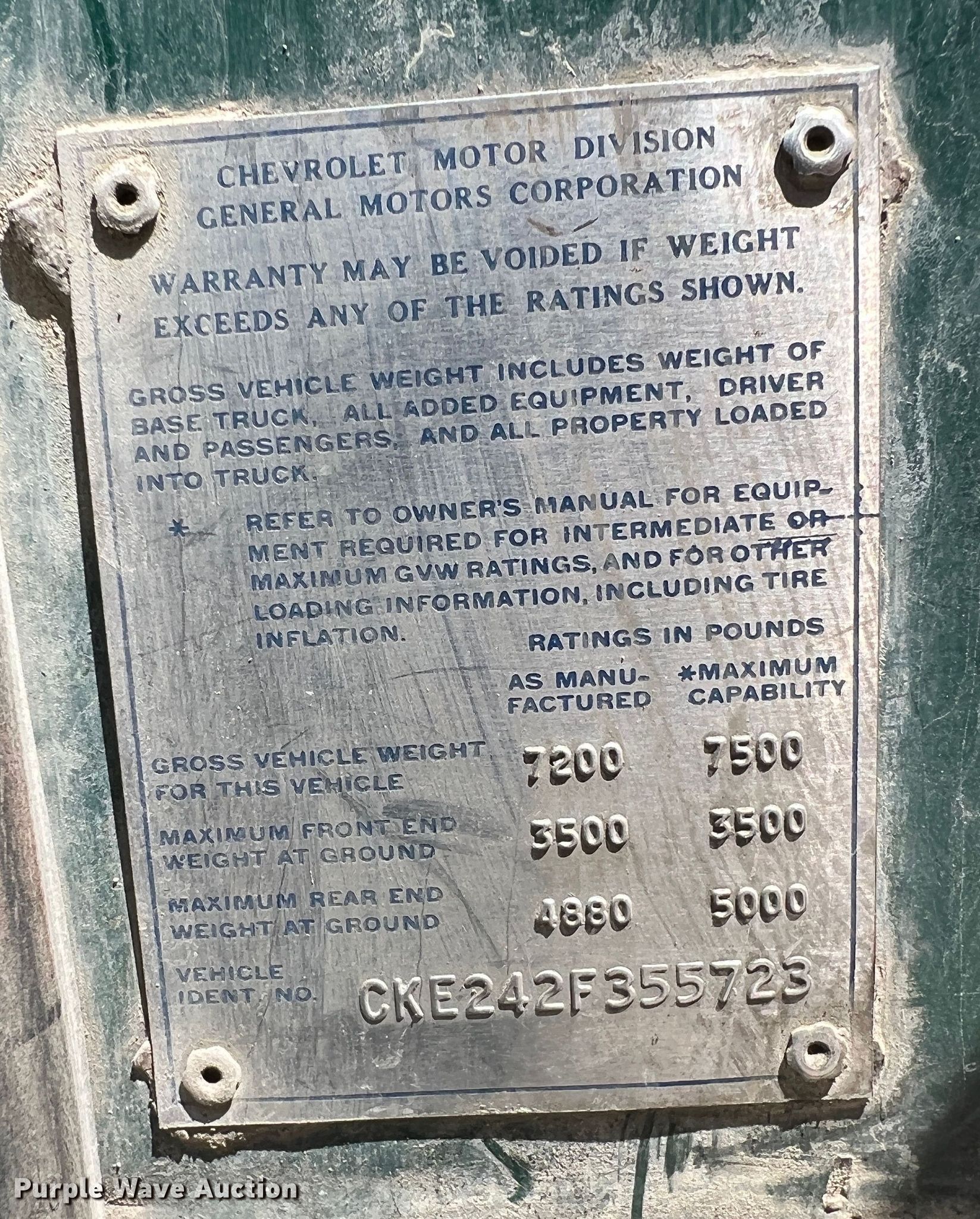 Purple Wave is selling a used 1/2 Ton Pickup or Van in Kansas. This item is a 1972 Chevrolet K20 flatbed truck with the following: Miles: 69,908 on odometer, VIN: CKE242F355723