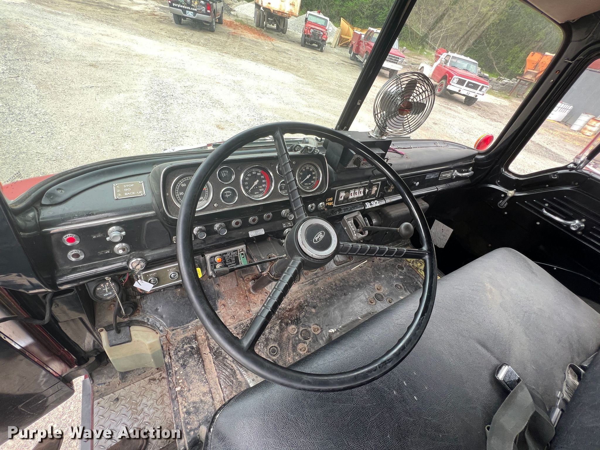 1979 Ford 900 fire truck. Miles: 25,286 on odometer, VIN: C91LVBA8592. Engine Cylinders: 8, Fuel type: Gas. Transmission Automatic. Chassis Axles: Single, Suspension: Spring, Brakes: Air, GVWR: 29,300 lbs, Wheelbase: 153". Interior Auxiliary controls. Features Fire truck body Pump 1,000 gpm, PA/ siren controls. Tires Size: 10.00R20. Kansas title. Montgomery County Rural Fire Dist. 1. Independence, KS 67301
