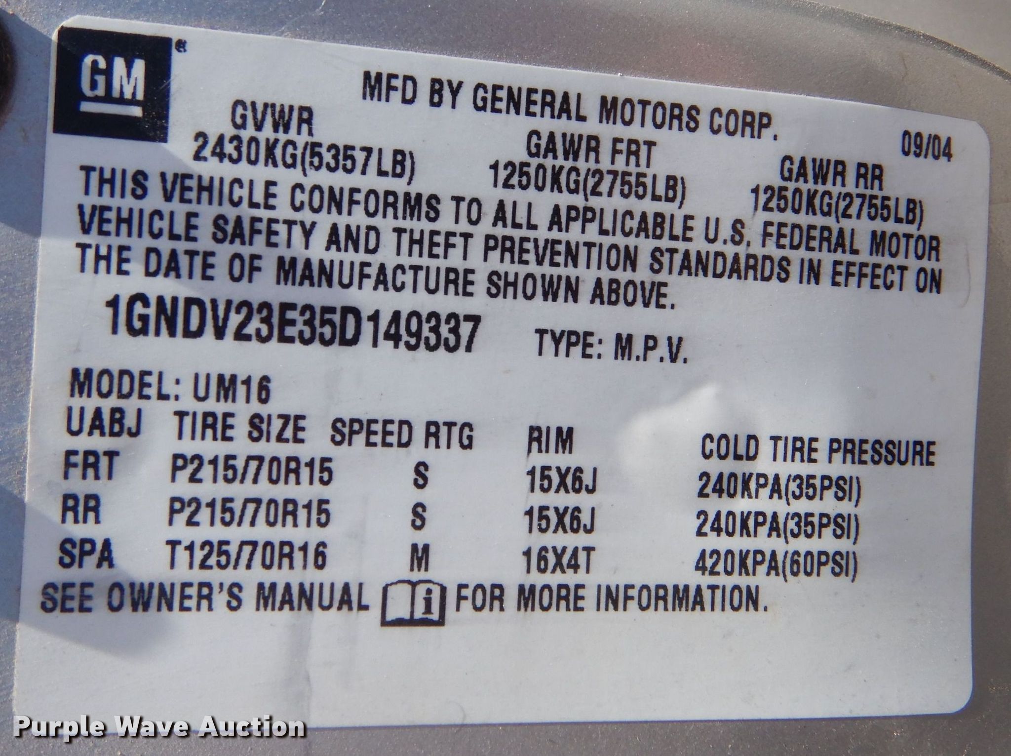 - VIN: 1GNDV23E35D149337