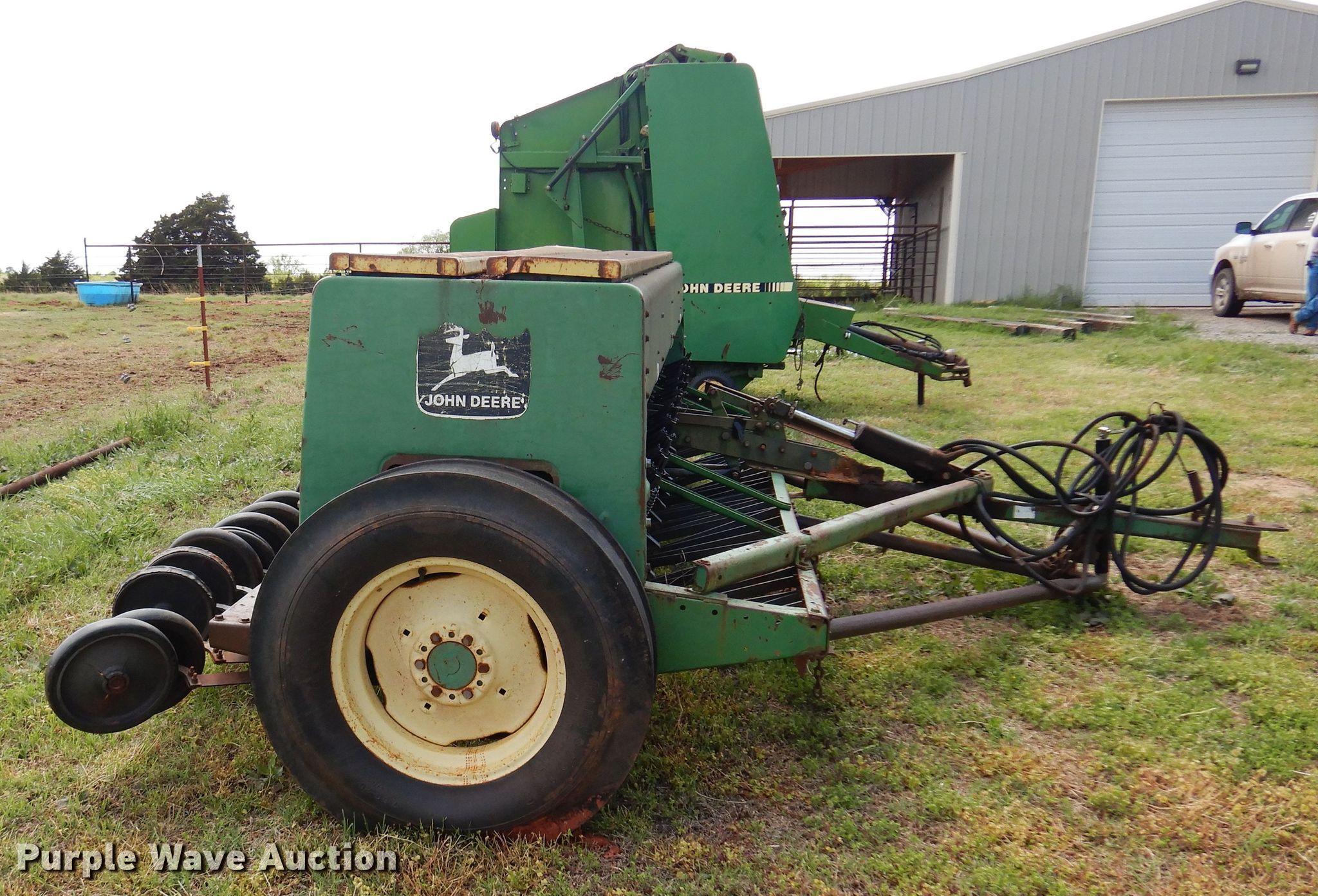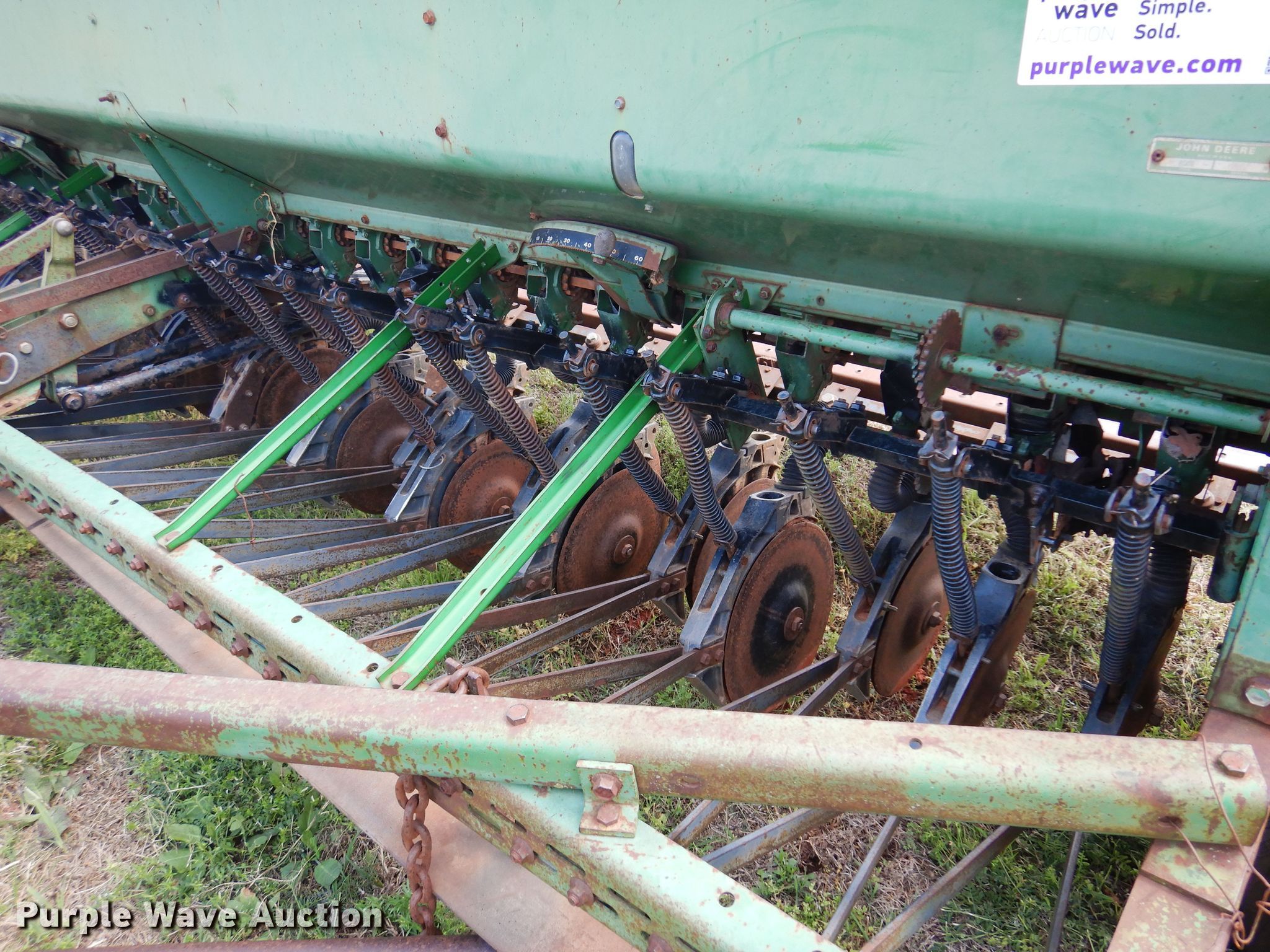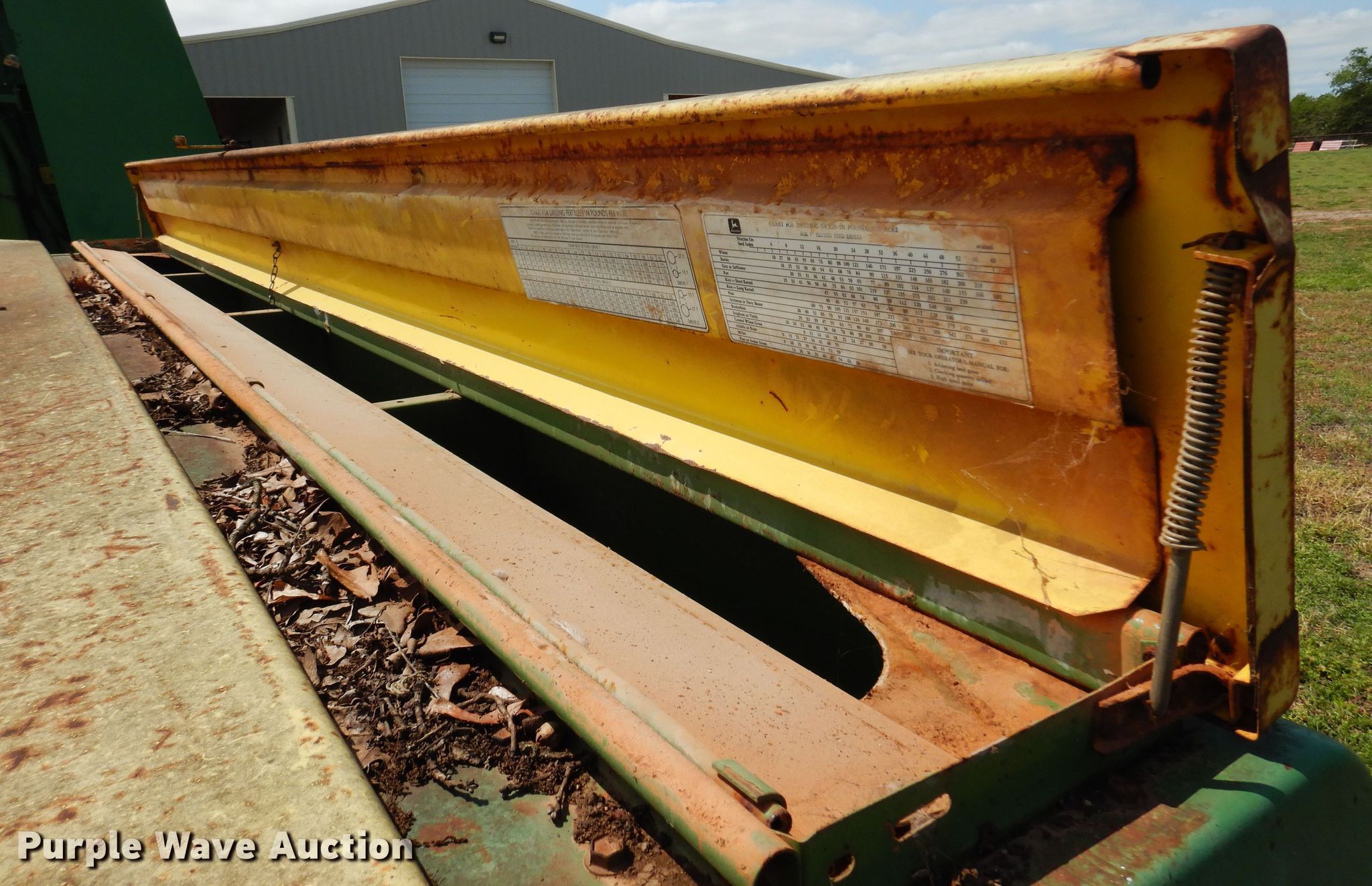 Purple Wave is selling a used Grain Drill or Seeder in Oklahoma. This item is a John Deere 8350 grain drill with the following: Width: 13', Row units: 23, Row spacing: 6", Serial: 051166N