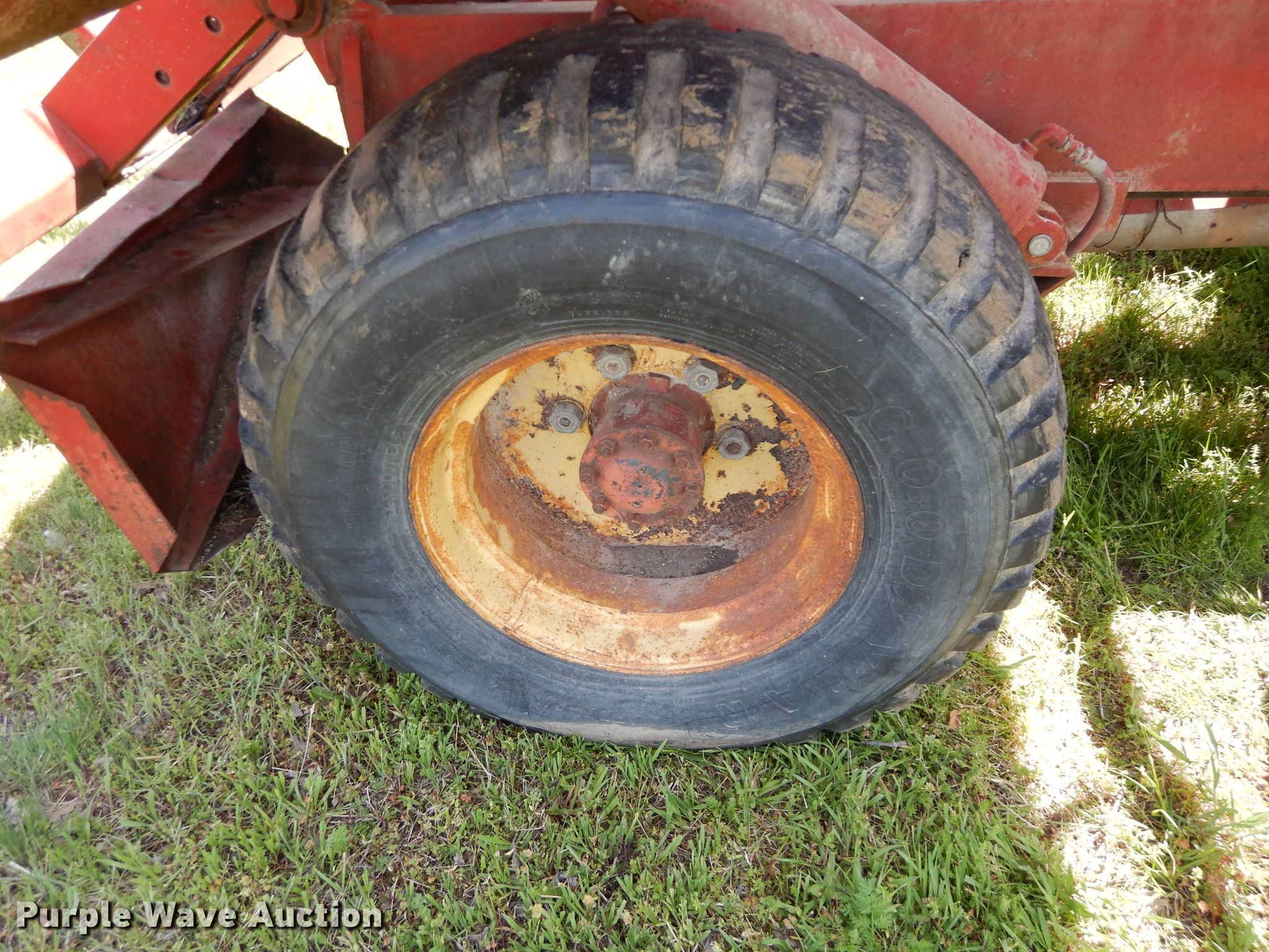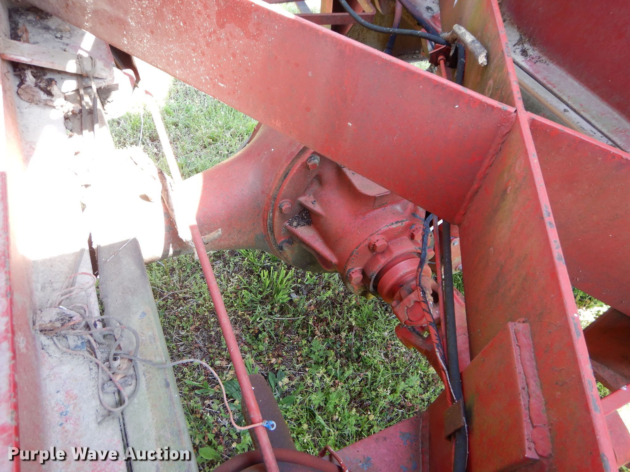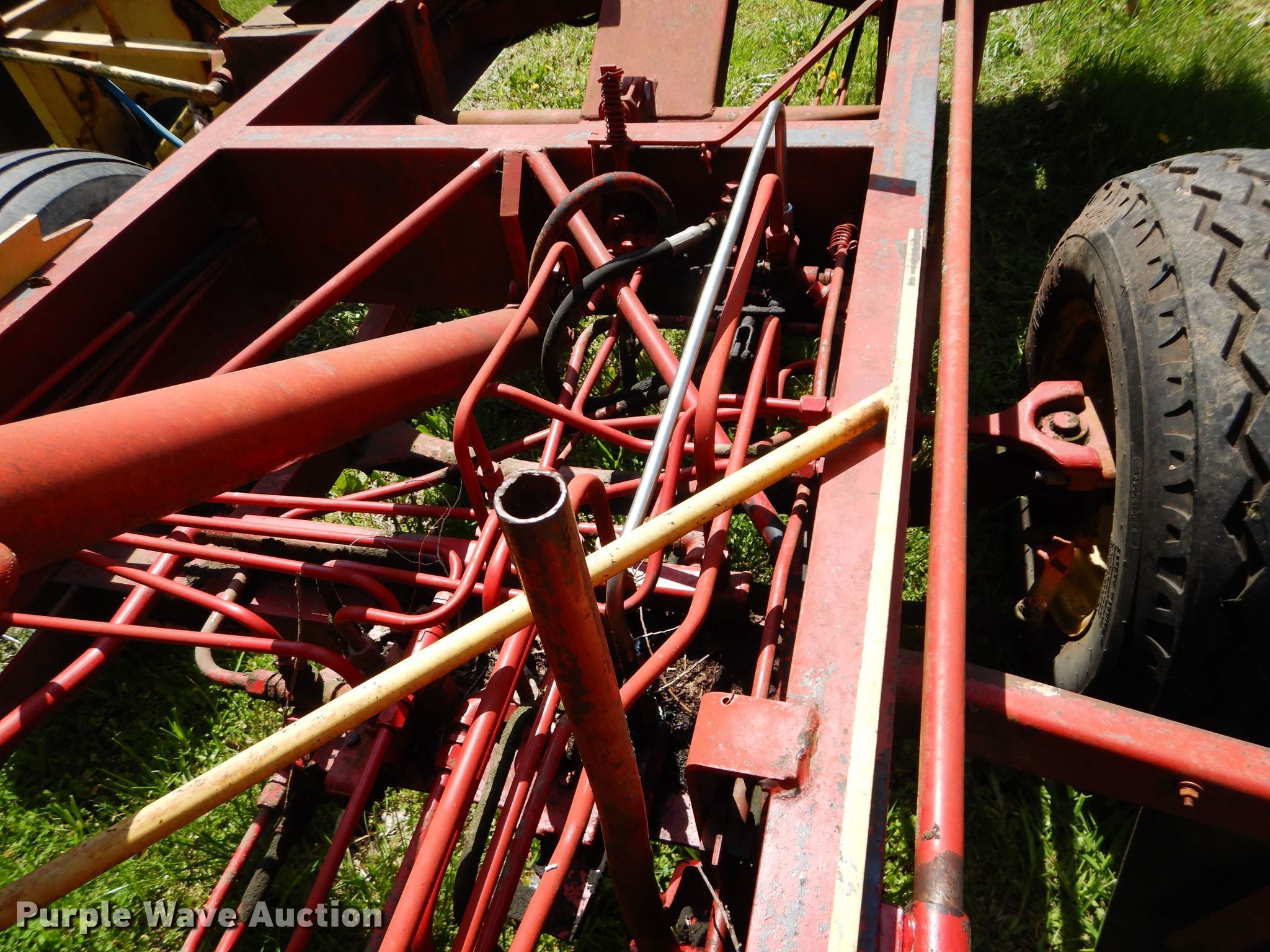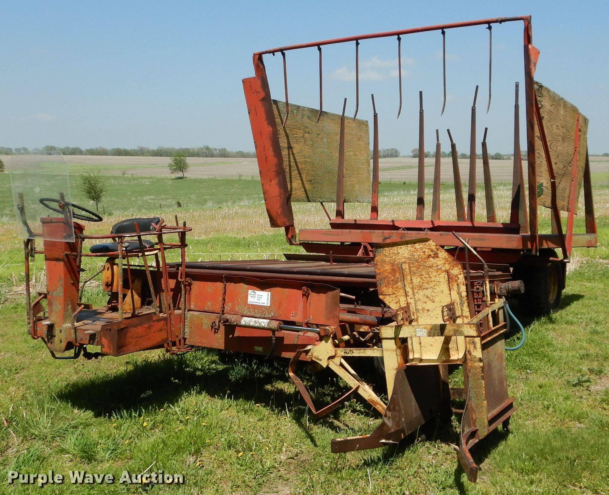 Purple Wave is selling a used Hay Handling in Kansas. This item is a New Holland Stackliner 1047 bale stacker with the following: Six cylinder gas engine, Five speed transmission, Three speed rear end, Square bale loader, 11L-16 front tires, 15-19.5ML rear tires, Serial: 12823