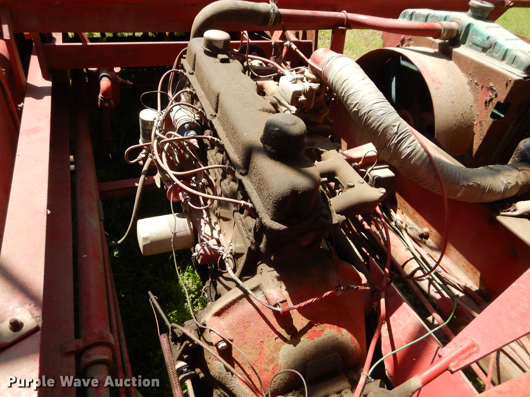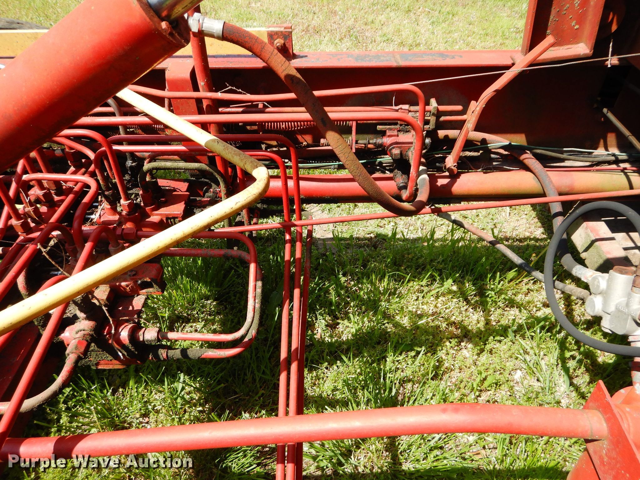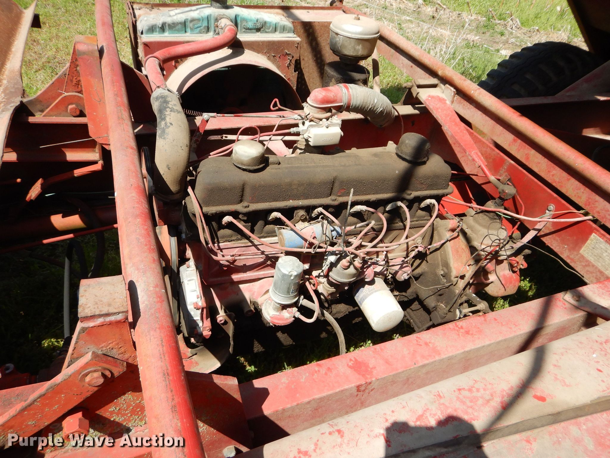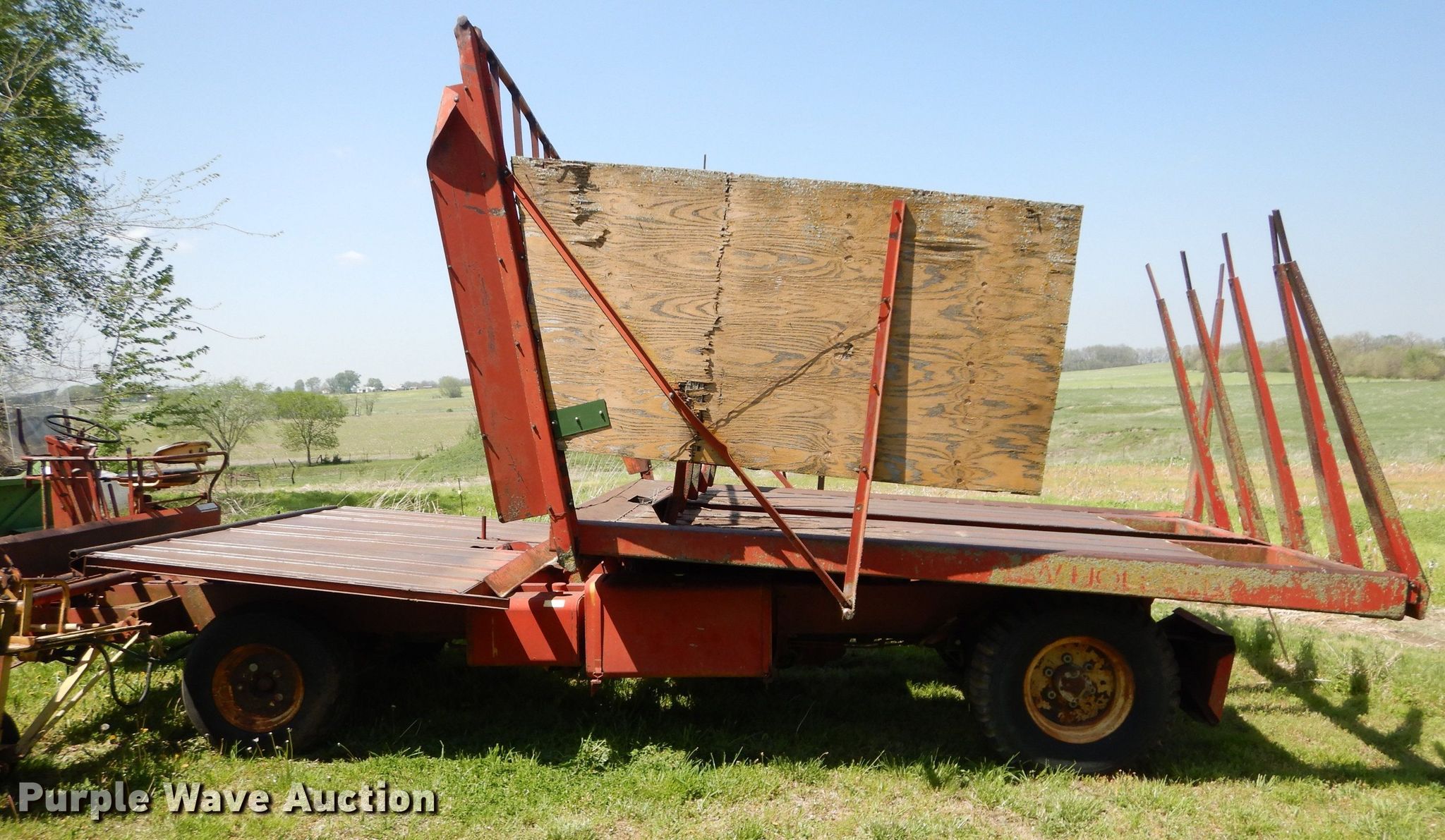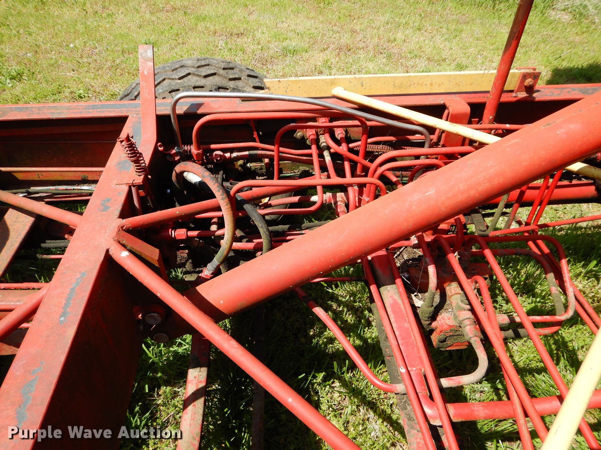 Purple Wave is selling a used Hay Handling in Kansas. This item is a New Holland Stackliner 1047 bale stacker with the following: Six cylinder gas engine, Five speed transmission, Three speed rear end, Square bale loader, 11L-16 front tires, 15-19.5ML rear tires, Serial: 12823