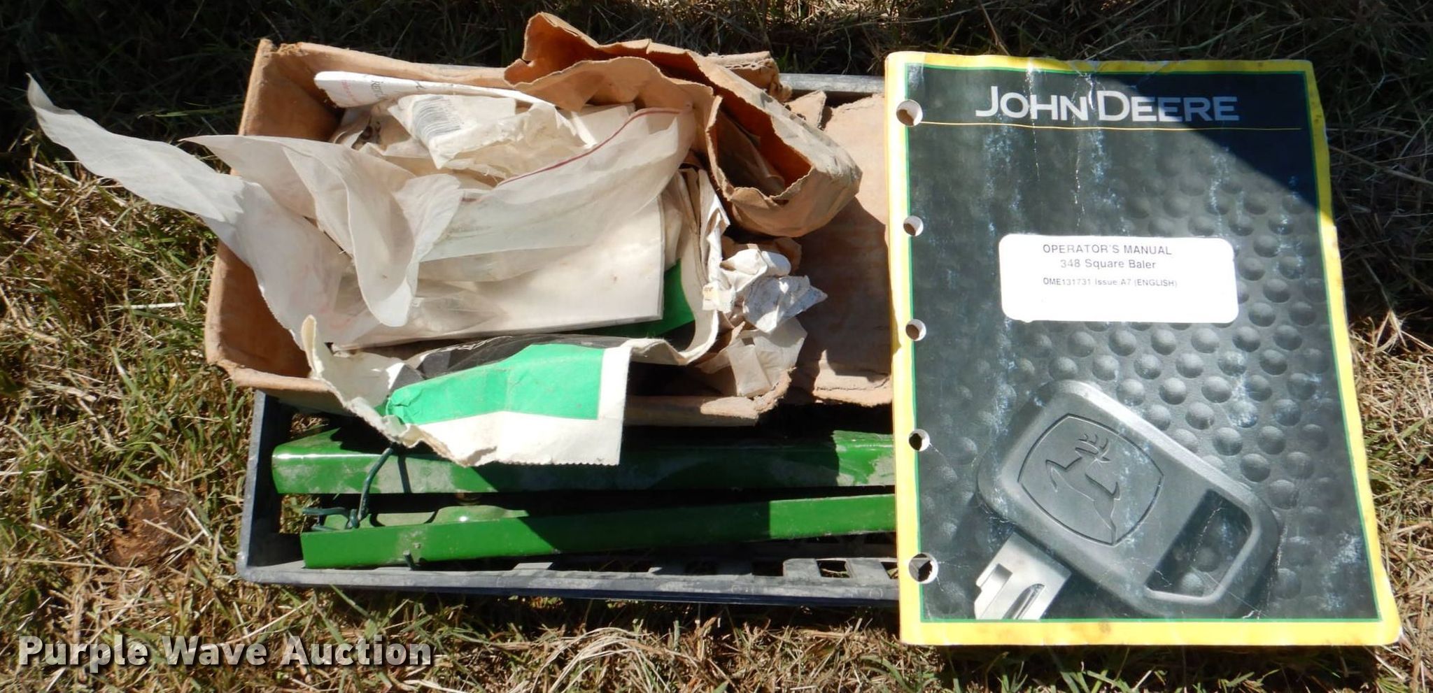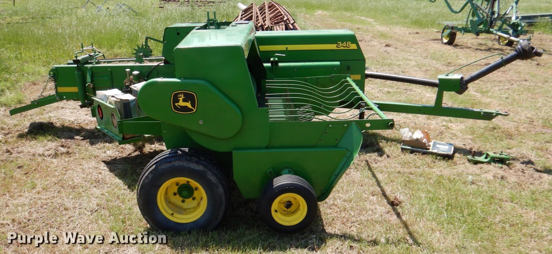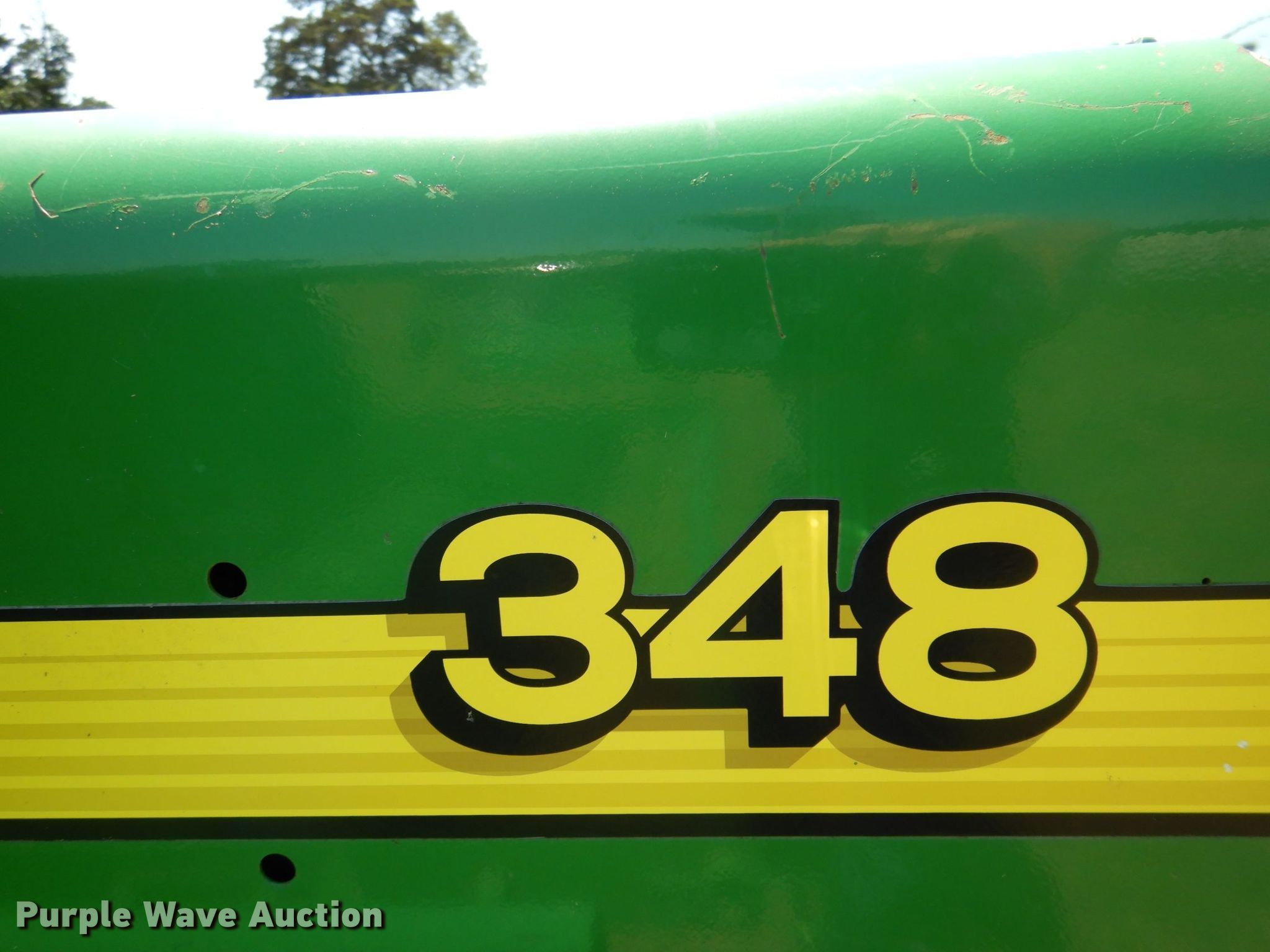 Purple Wave is selling a used Square Baler in Texas. This item is a 2008 John Deere 348 small square baler with the following: Serial: E00348W341580