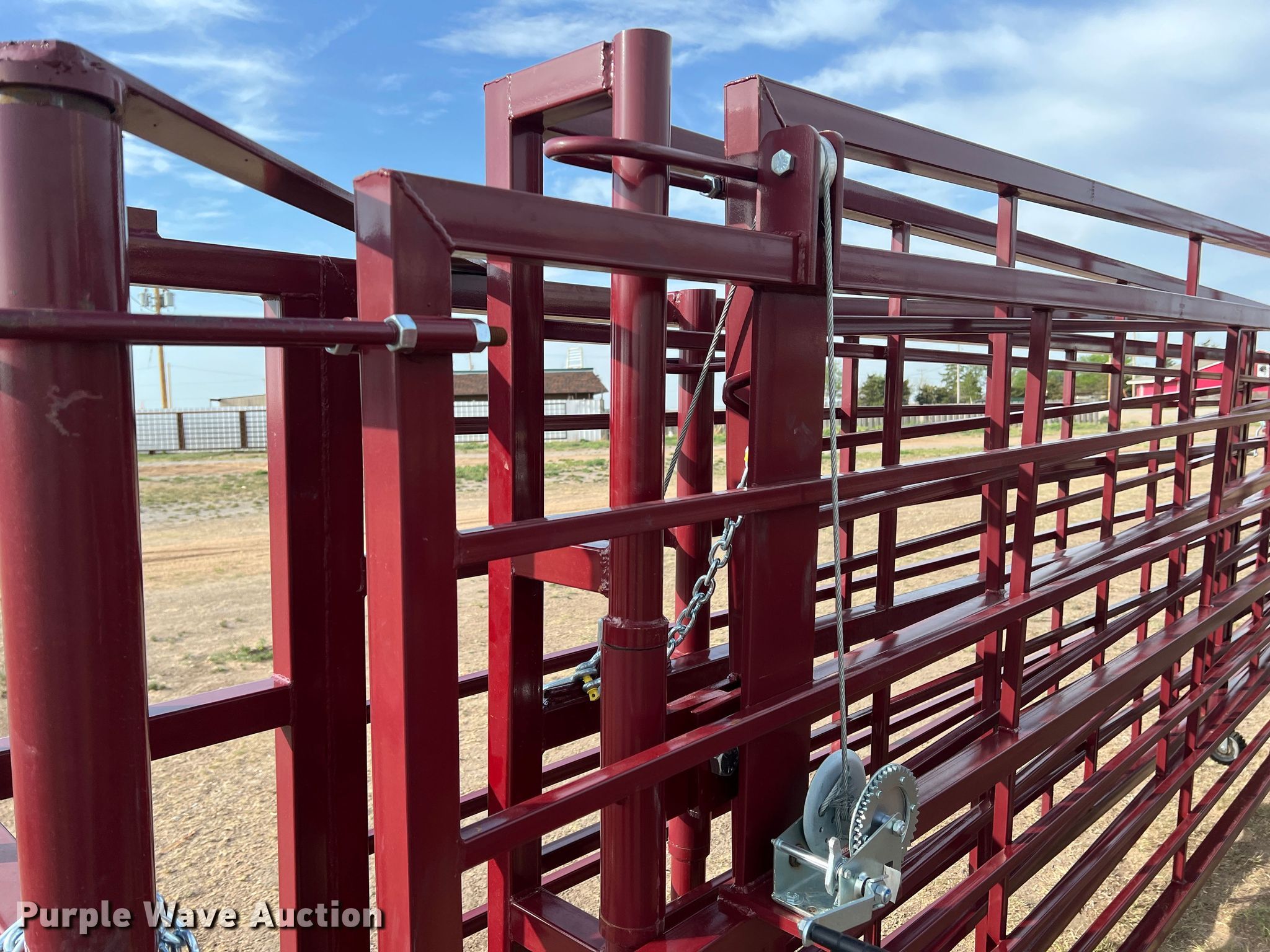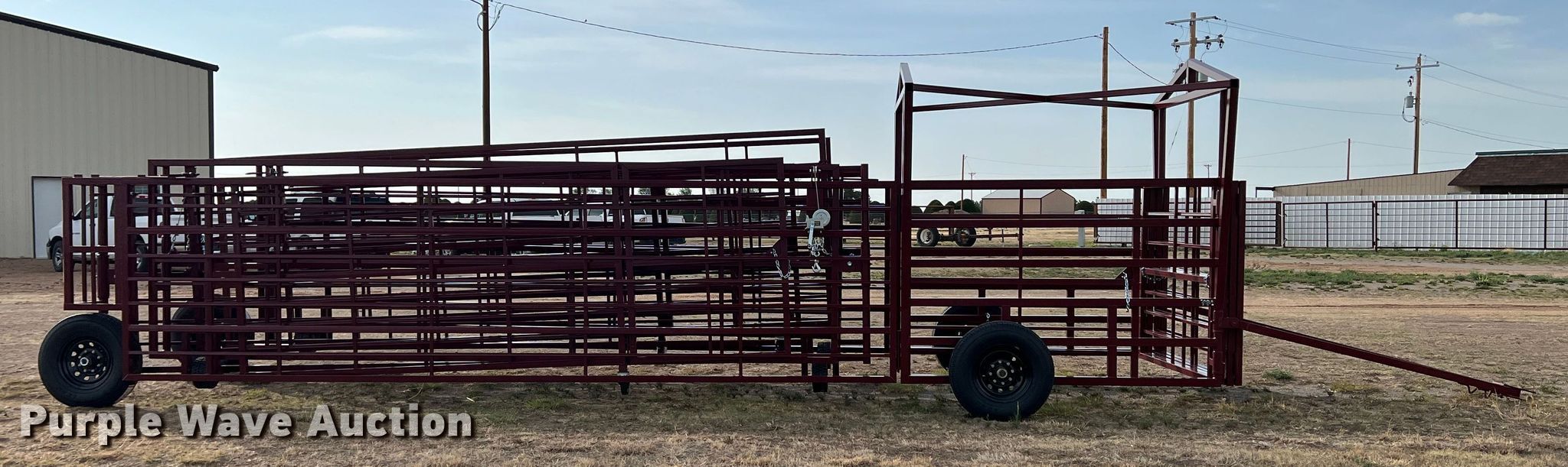 2022 Range Corral 90R corral. (4) panels 21'L x 62"H, 19'L x 62"H, 17'L x 62"H, 16'L x 62"H, 14'W x 62"H dividers, 70 head capacity, 235/80R16 tires, Serial: 202103. Plains Service & Sales. 511 E. Hwy 54. Plains, KS 67869