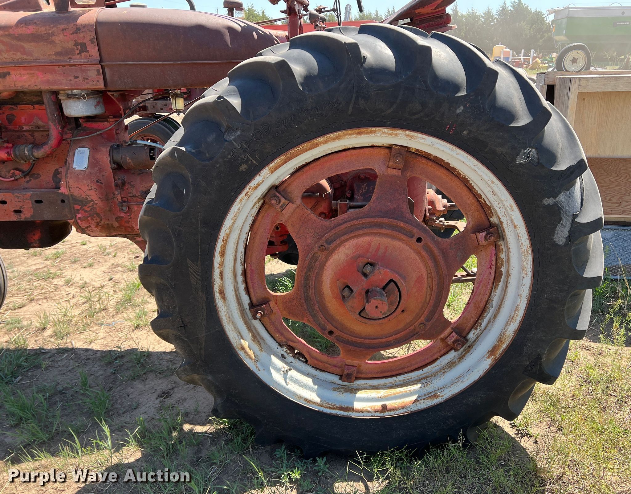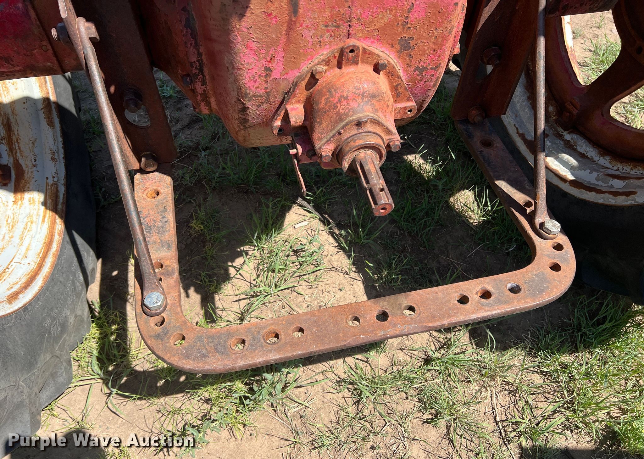 International M tractor. Serial: FBK249062X1. Engine Cylinders: 4, Fuel type: Gas. Transmission Manual, 3F - 1R. Features PTO: 540. Tires Front: 6.50-16, Rear: 13.6-38. 1587 Cottonwood St. Sublette, KS 67877