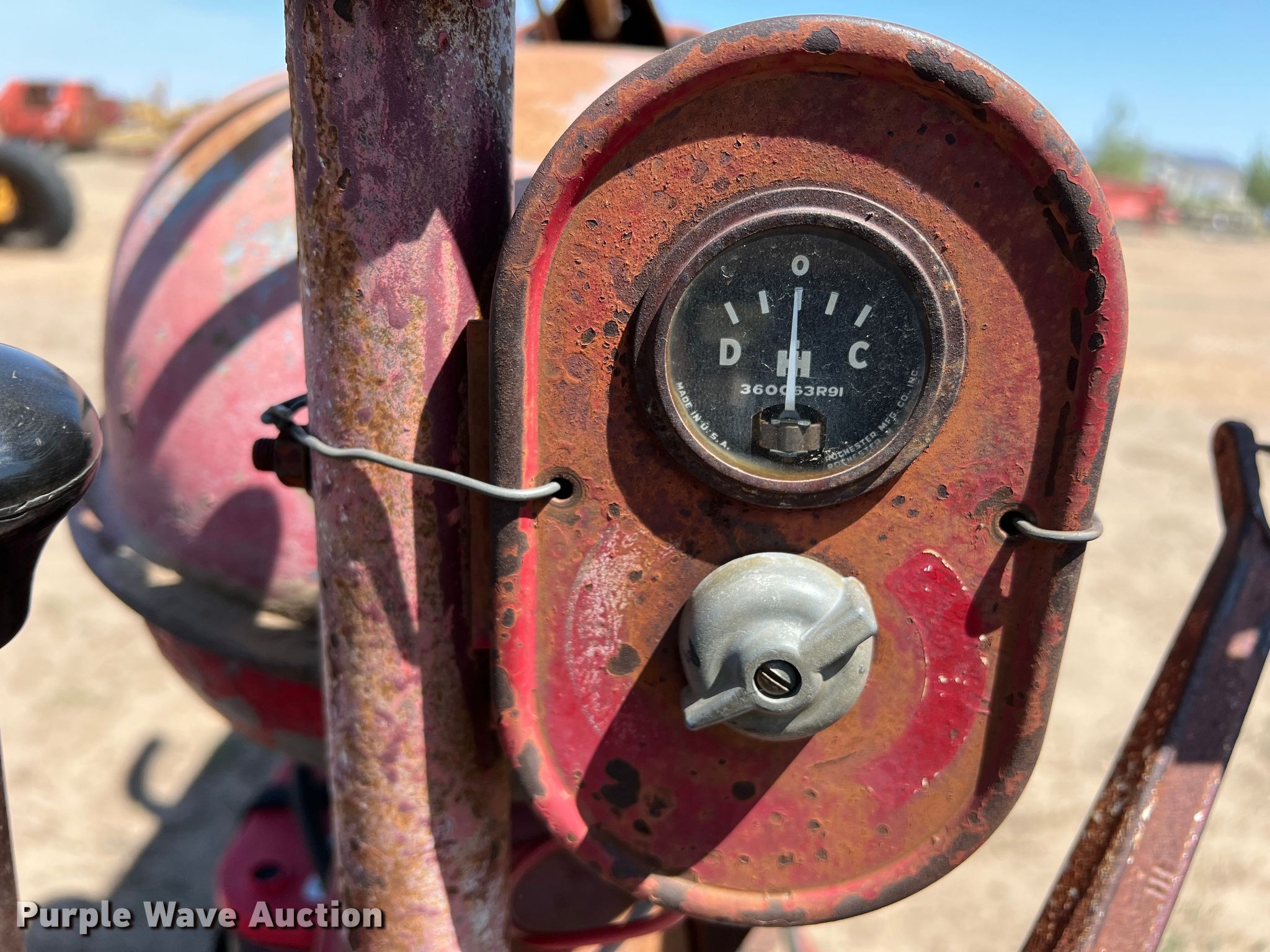 International M tractor. Serial: FBK-37758. Engine Cylinders: 4, Fuel type: Gas. Transmission Manual, 3F - 1R. Features PTO: 540. Tires Front: 6.50-16, Rear: 380/80R38. 1587 Cottonwood St. Sublette, KS 67877