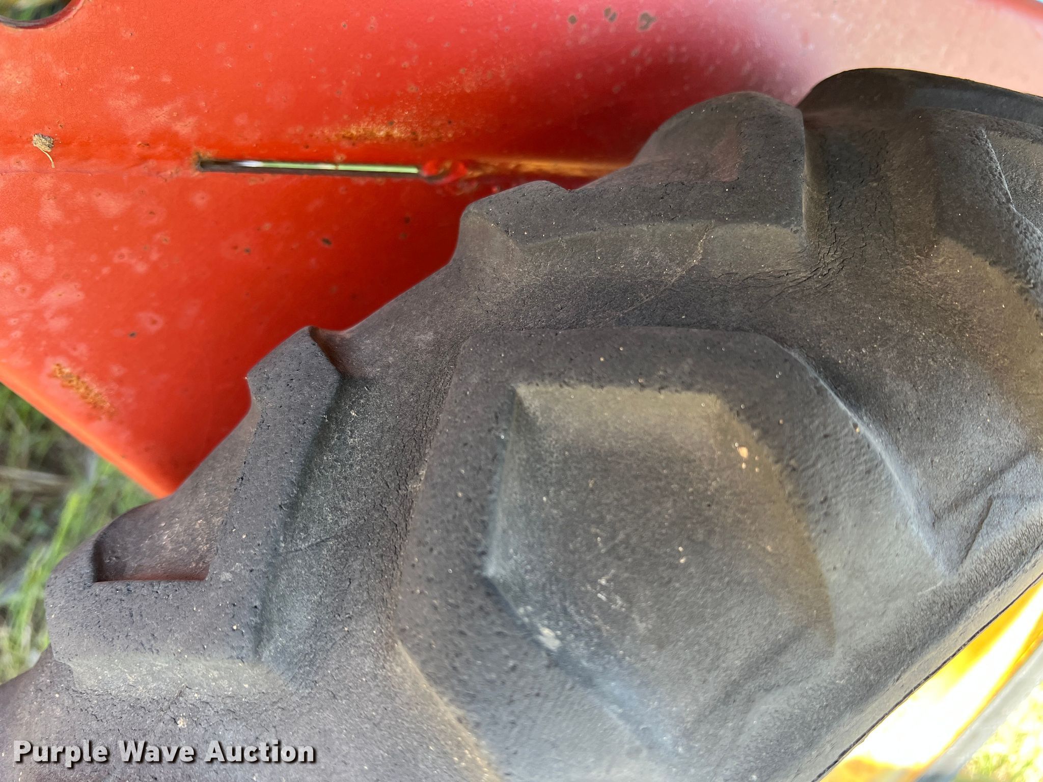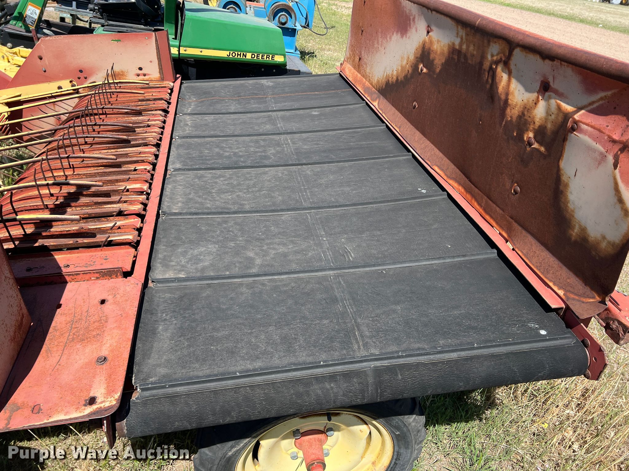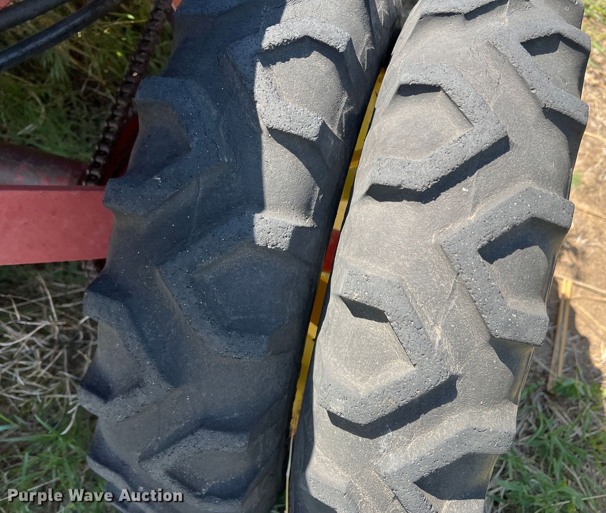 New Holland 166 windrow turner. Serial: 934385. Features 5'5"W pickup, 3'W conveyor belt. Tires Front: 12x3.00, Rear: 5.00-15. 1587 Cottonwood St. Sublette, KS 67877