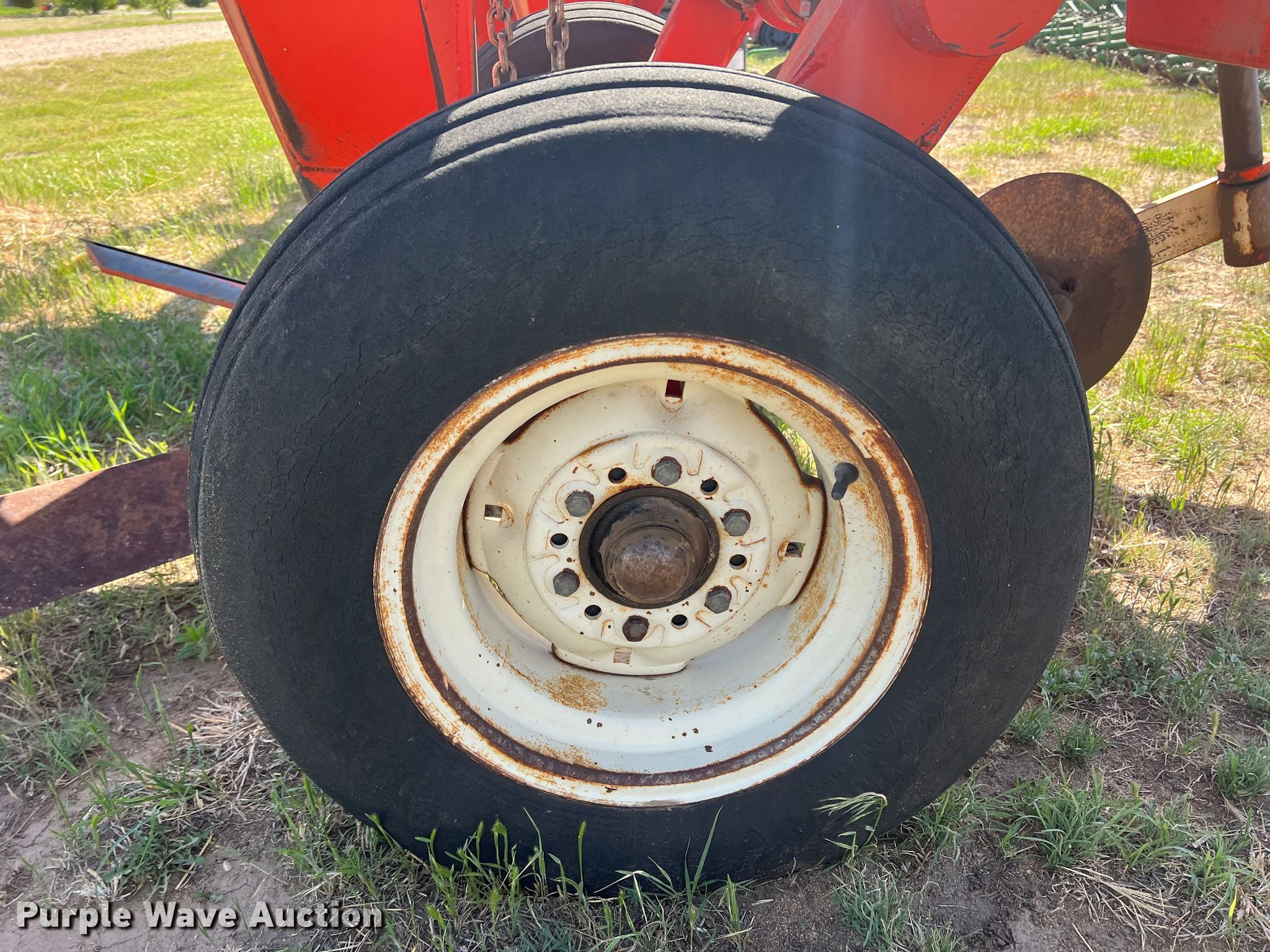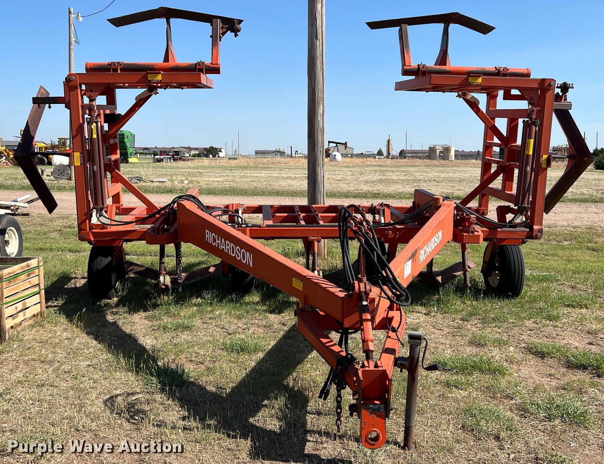 Richardson AE-43 sweep plow. Overall width: 33', Serial: 361. Features Shanks: 7, Sweep width: 64", Operation Hydraulic lift, Hydraulic fold. Tires Tire size: 9.5L-15. Notes Additional parts. 1587 Cottonwood St. Sublette, KS 67877