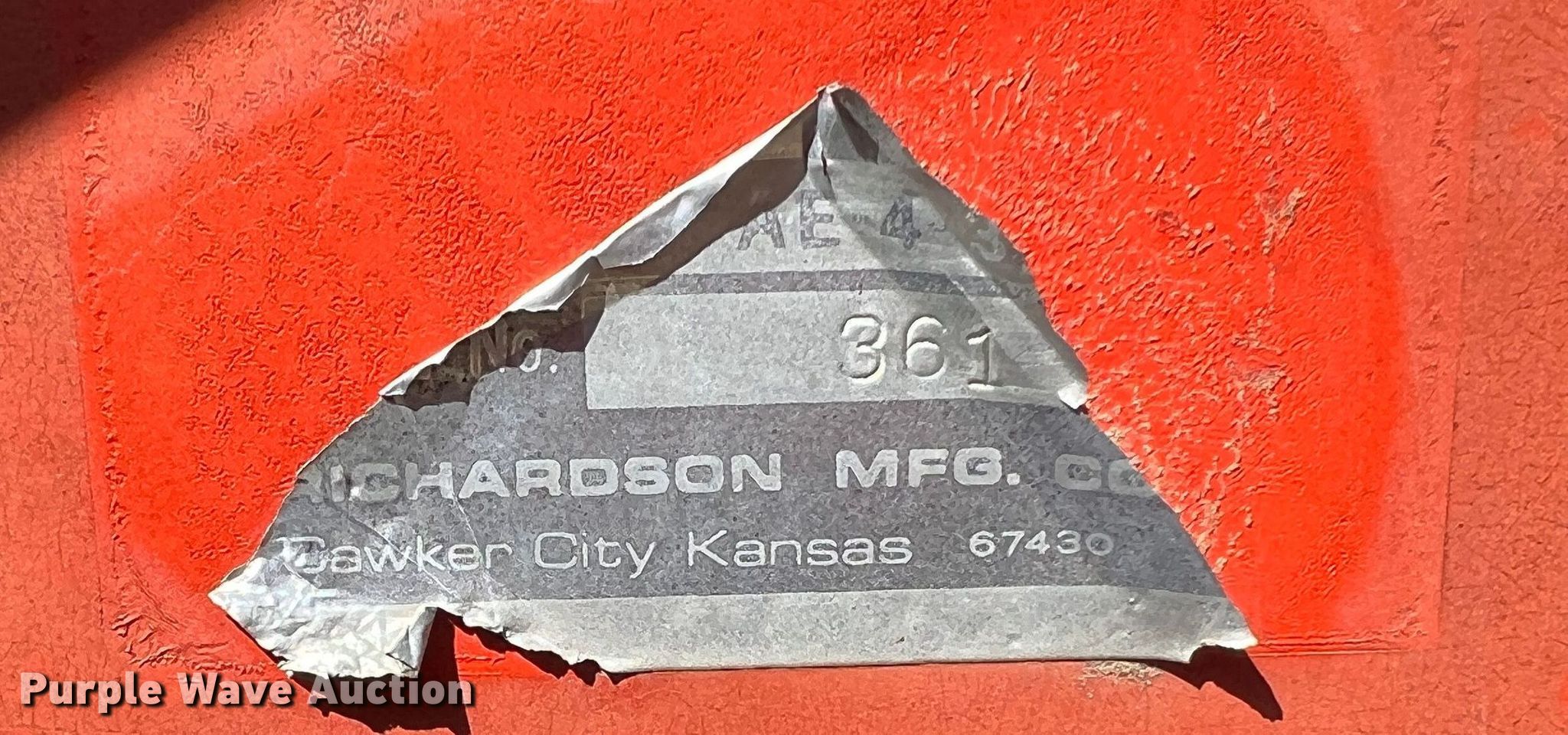 Purple Wave is selling a used Field Cultivator or Sweep Plow in Kansas. This item is a Richardson AE-43 sweep plow with the following: Overall width: 33', Serial: 361