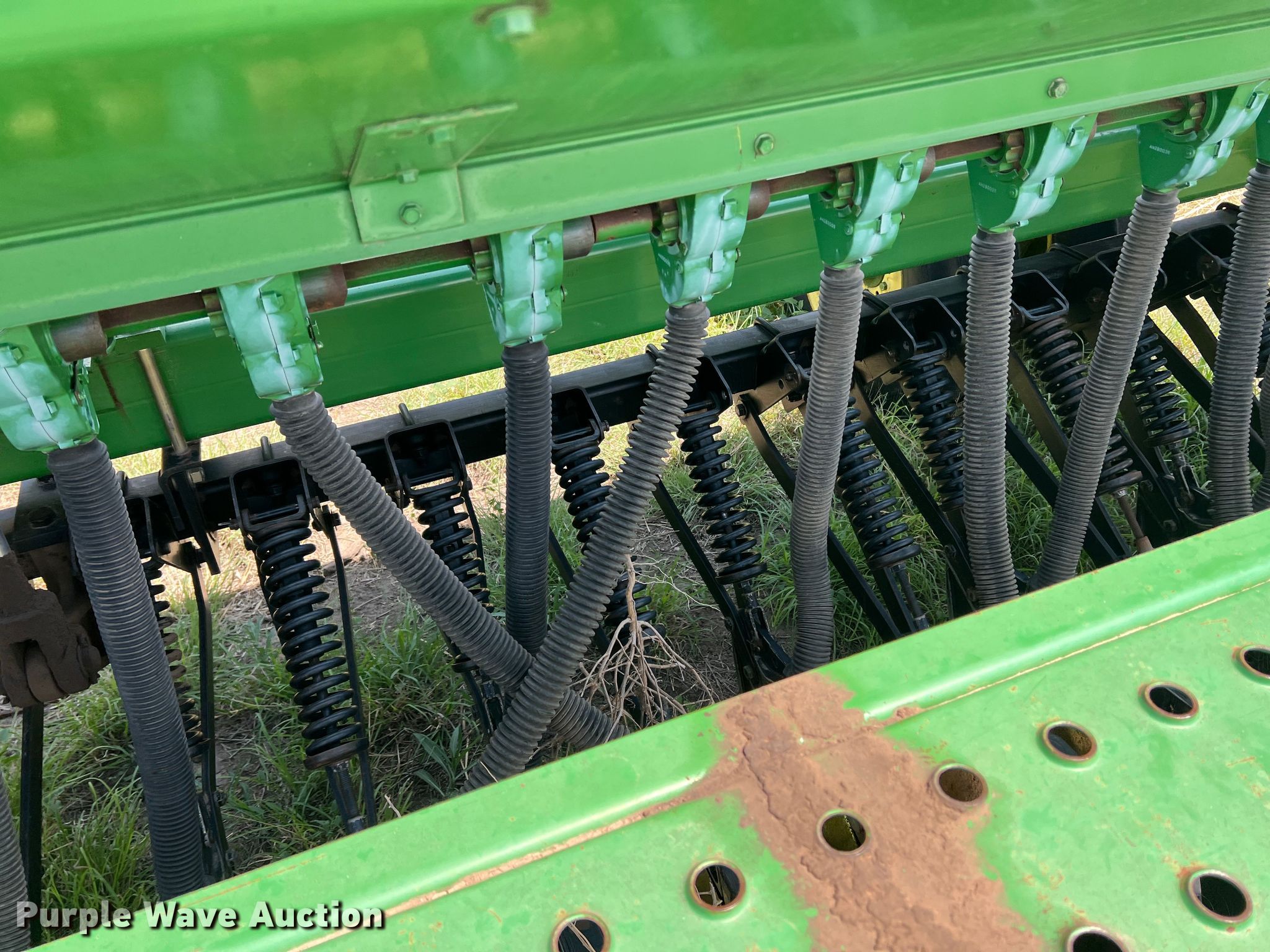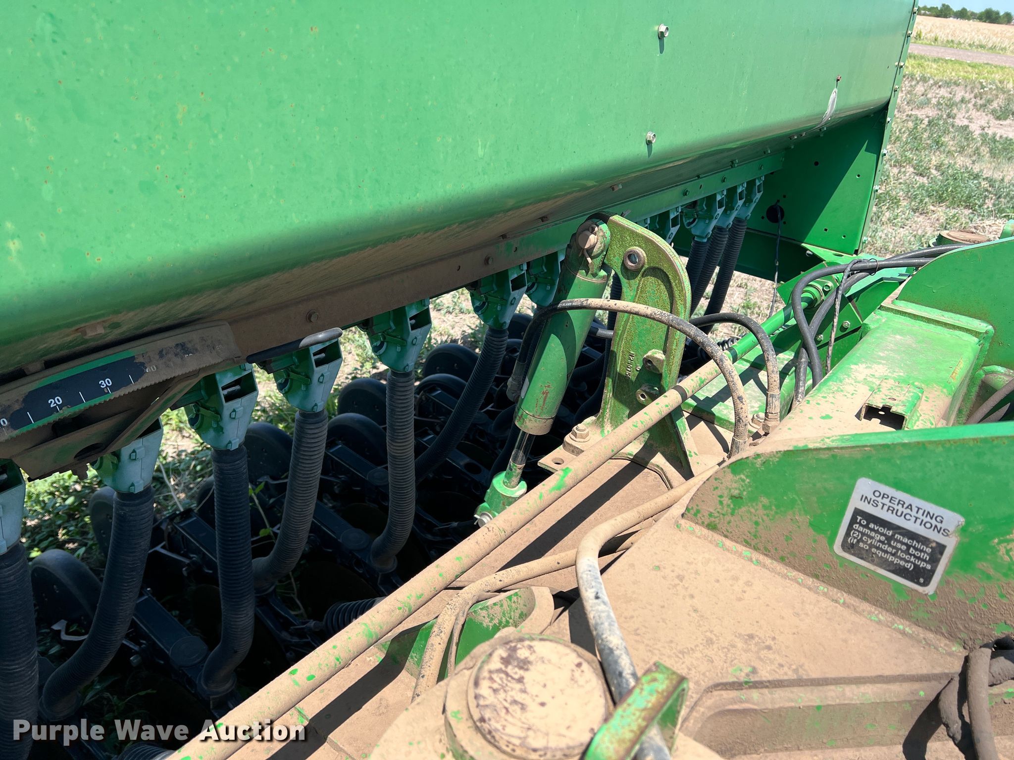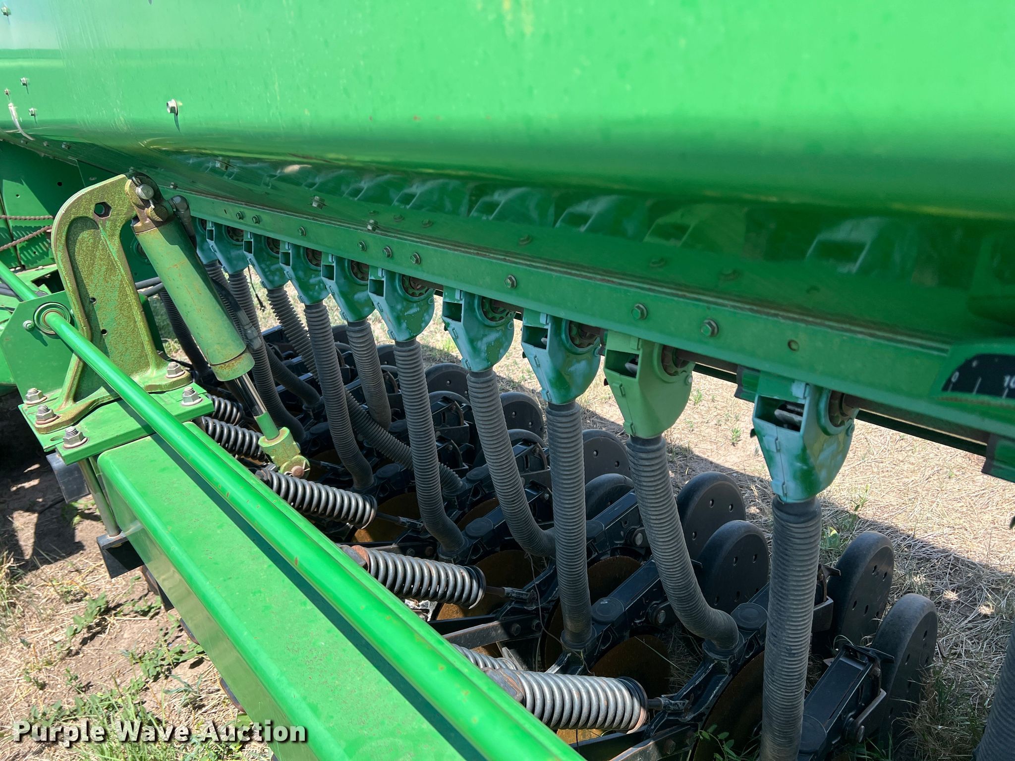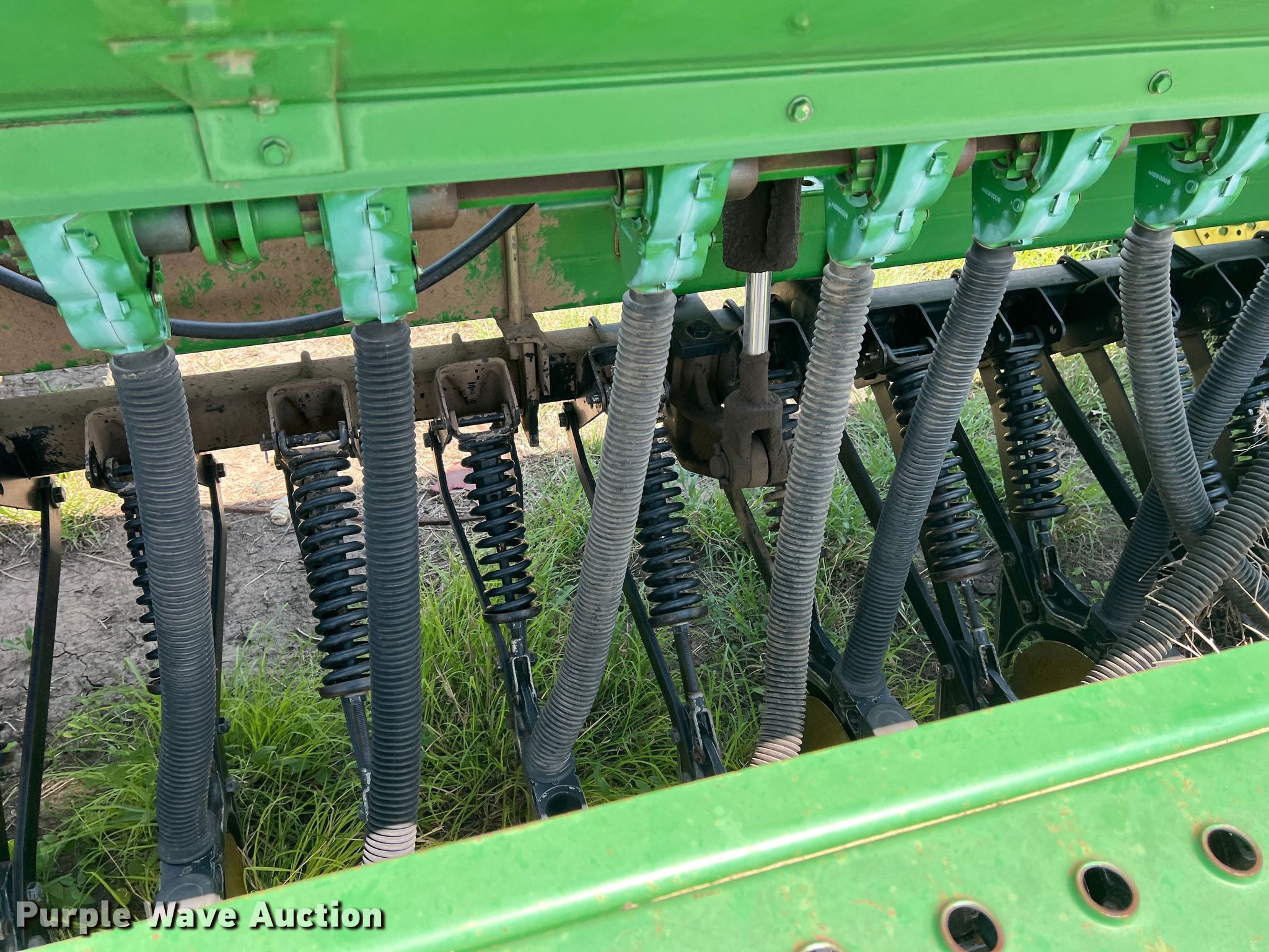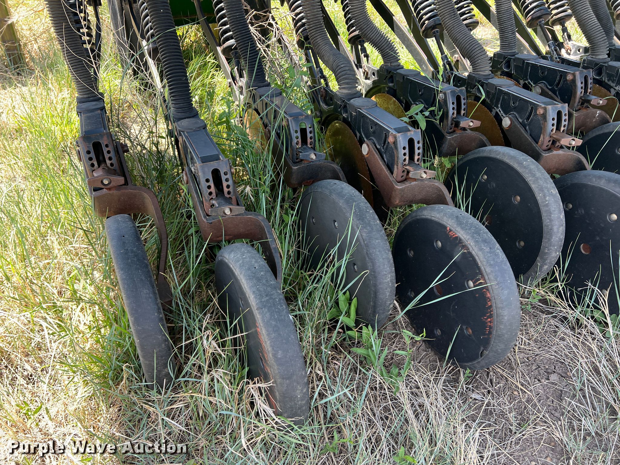 Purple Wave is selling a used Grain Drill or Seeder in Texas. This item is a John Deere 455 grain drill with the following: Width: 35', Row units: 56, Row spacing: 7", Serial: N00455H005112