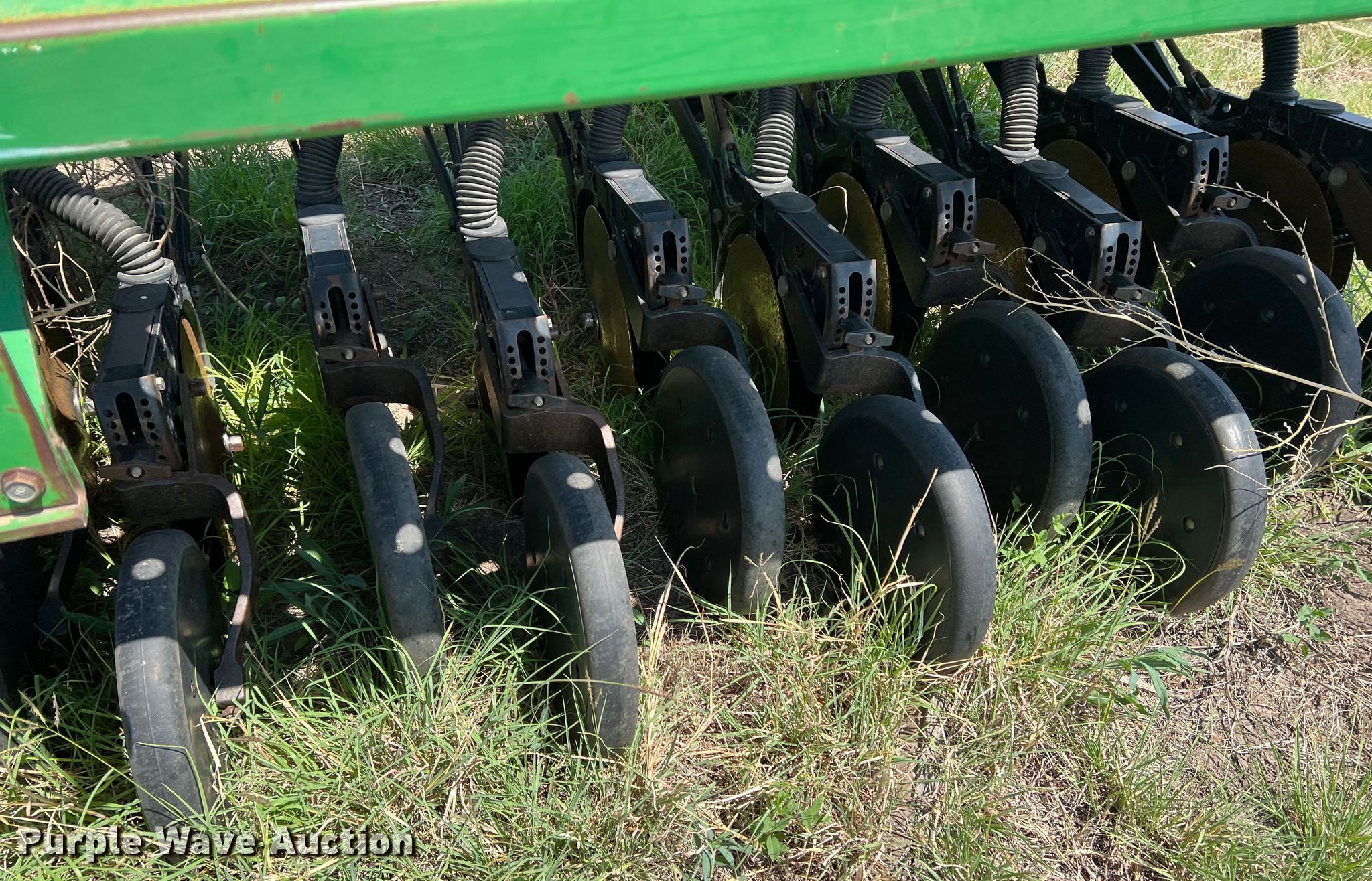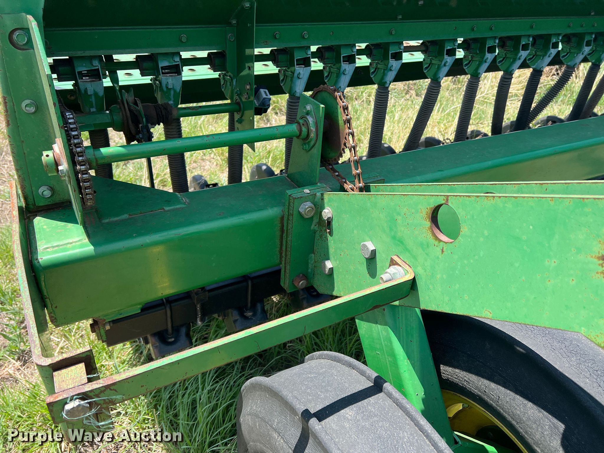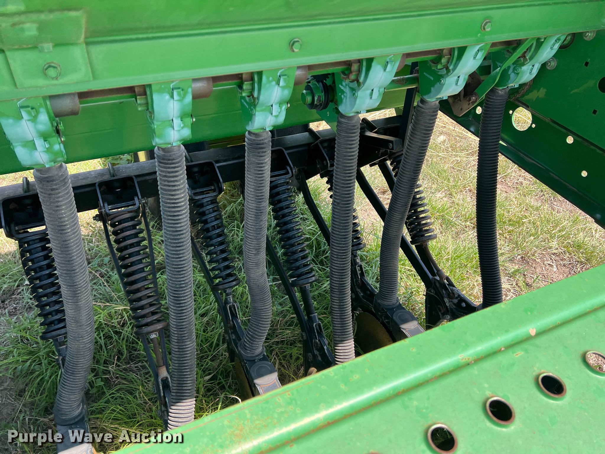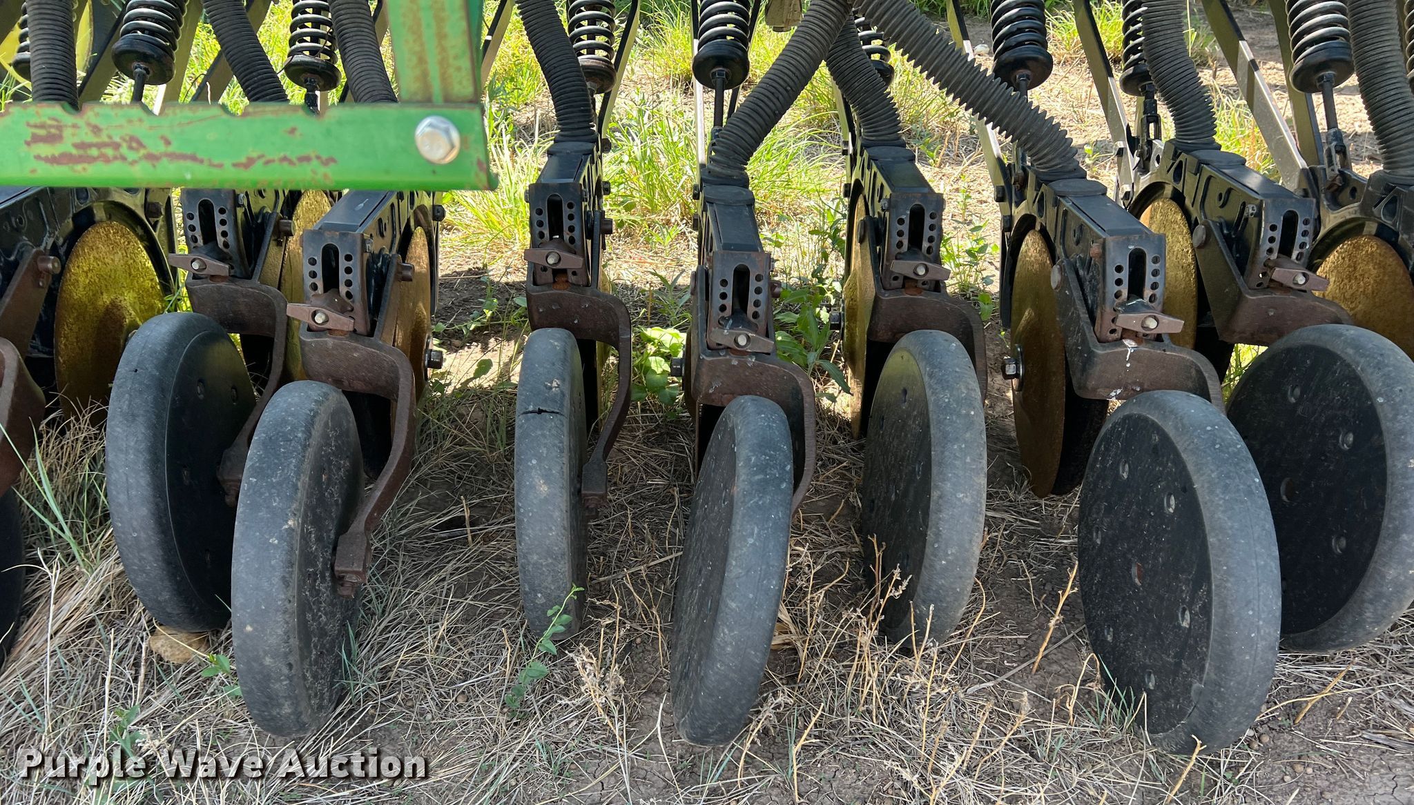 Purple Wave is selling a used Grain Drill or Seeder in Texas. This item is a John Deere 455 grain drill with the following: Width: 35', Row units: 56, Row spacing: 7", Serial: N00455H005112