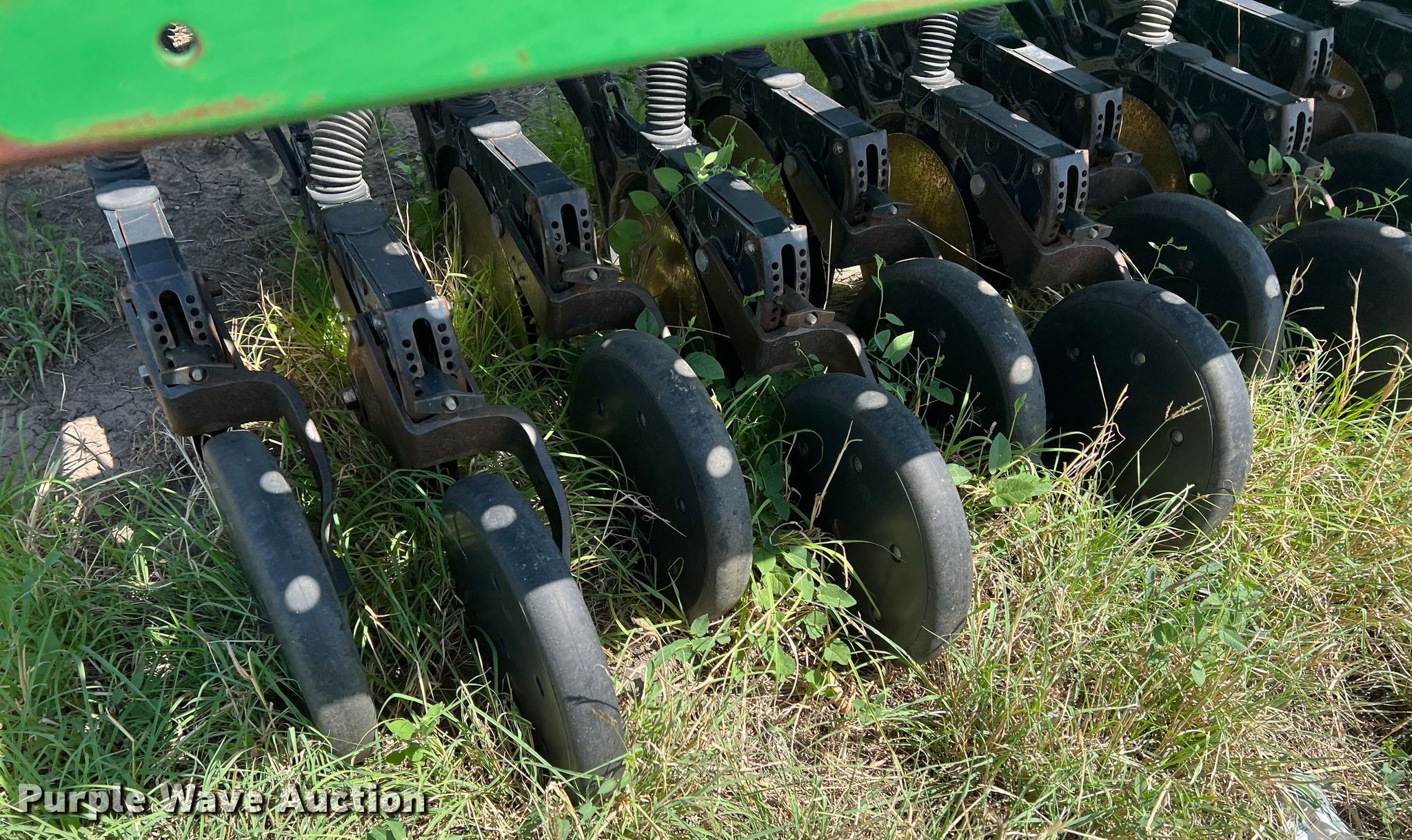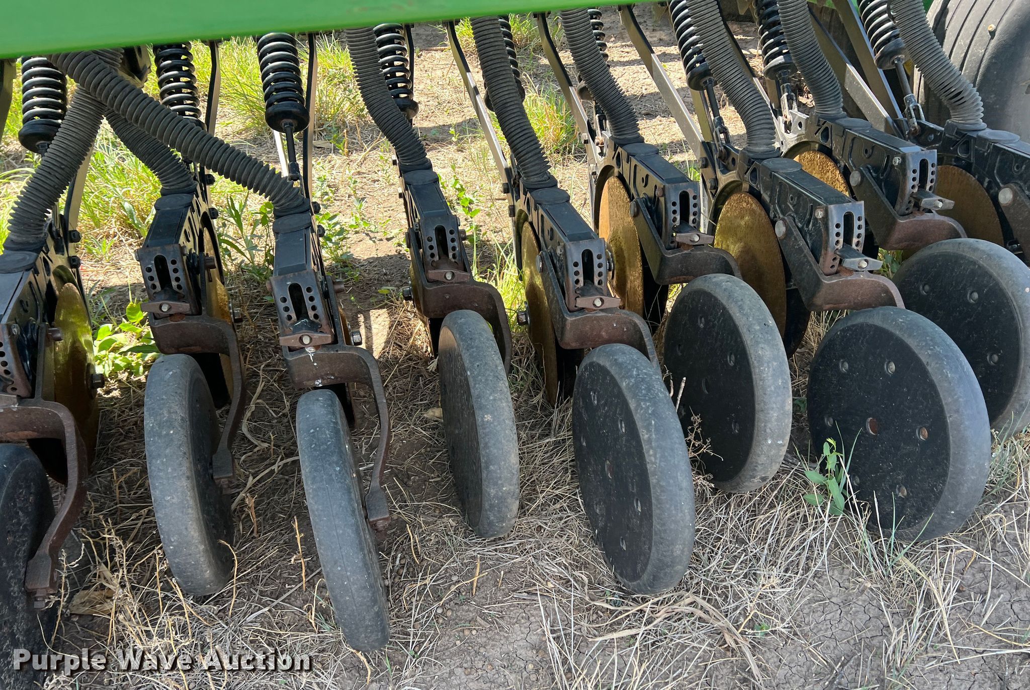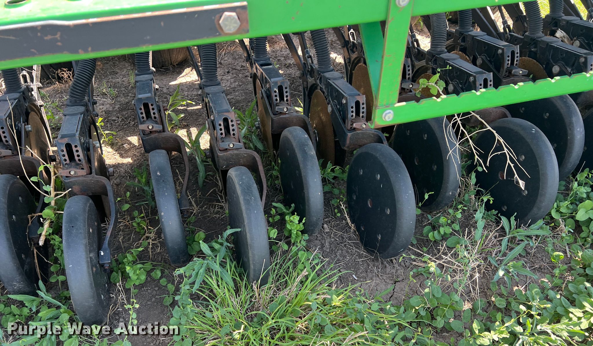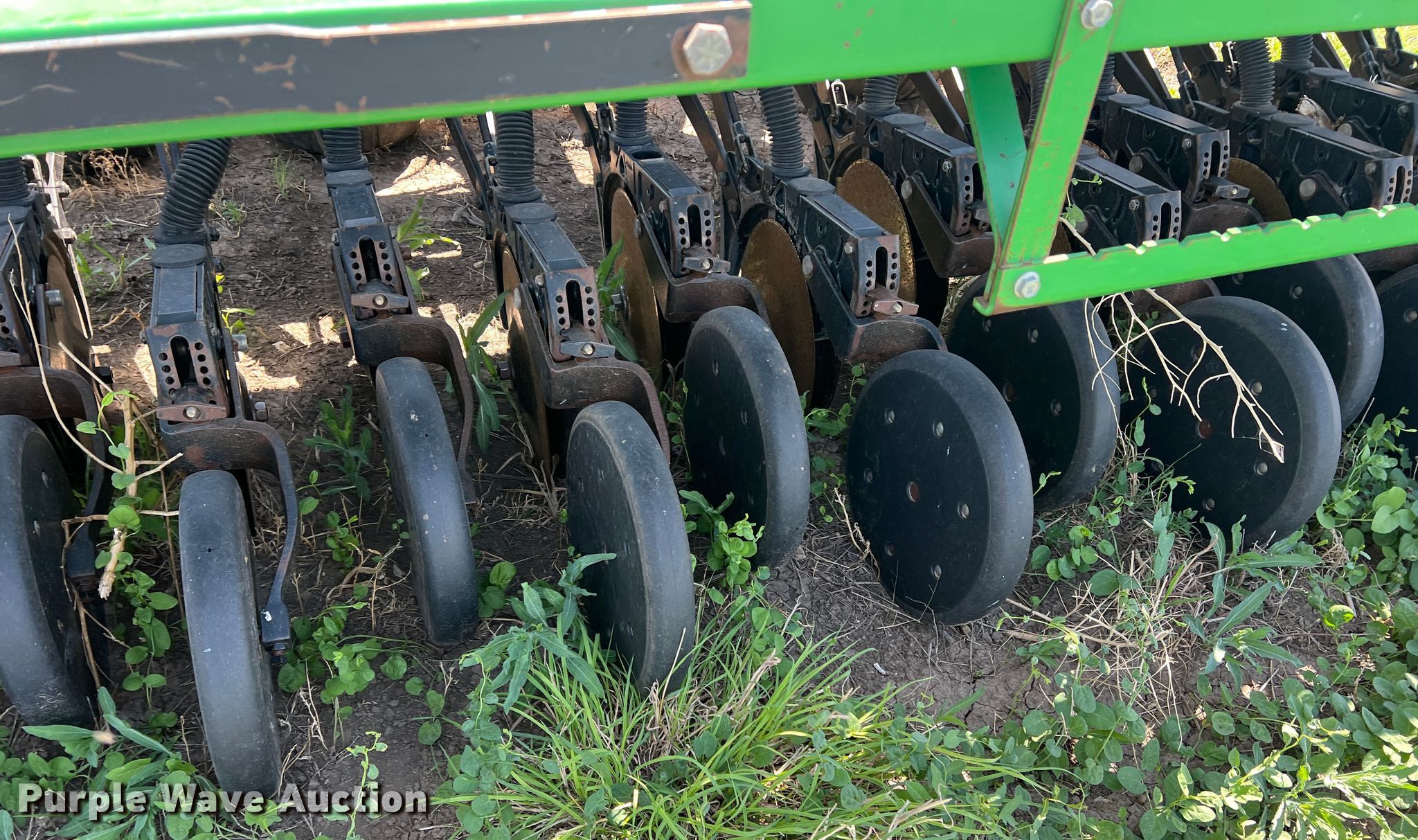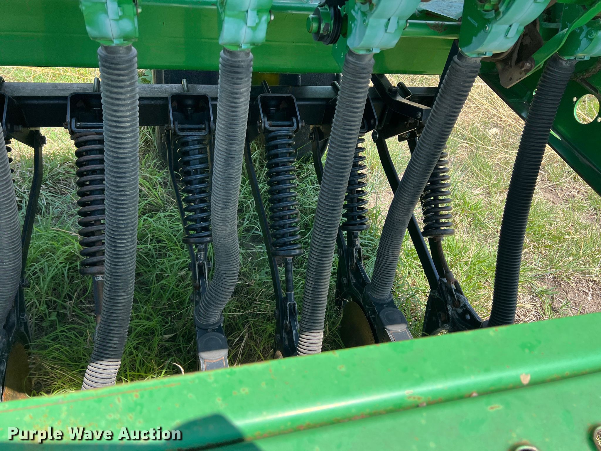 Purple Wave is selling a used Grain Drill or Seeder in Texas. This item is a John Deere 455 grain drill with the following: Width: 35', Row units: 56, Row spacing: 7", Serial: N00455H005112