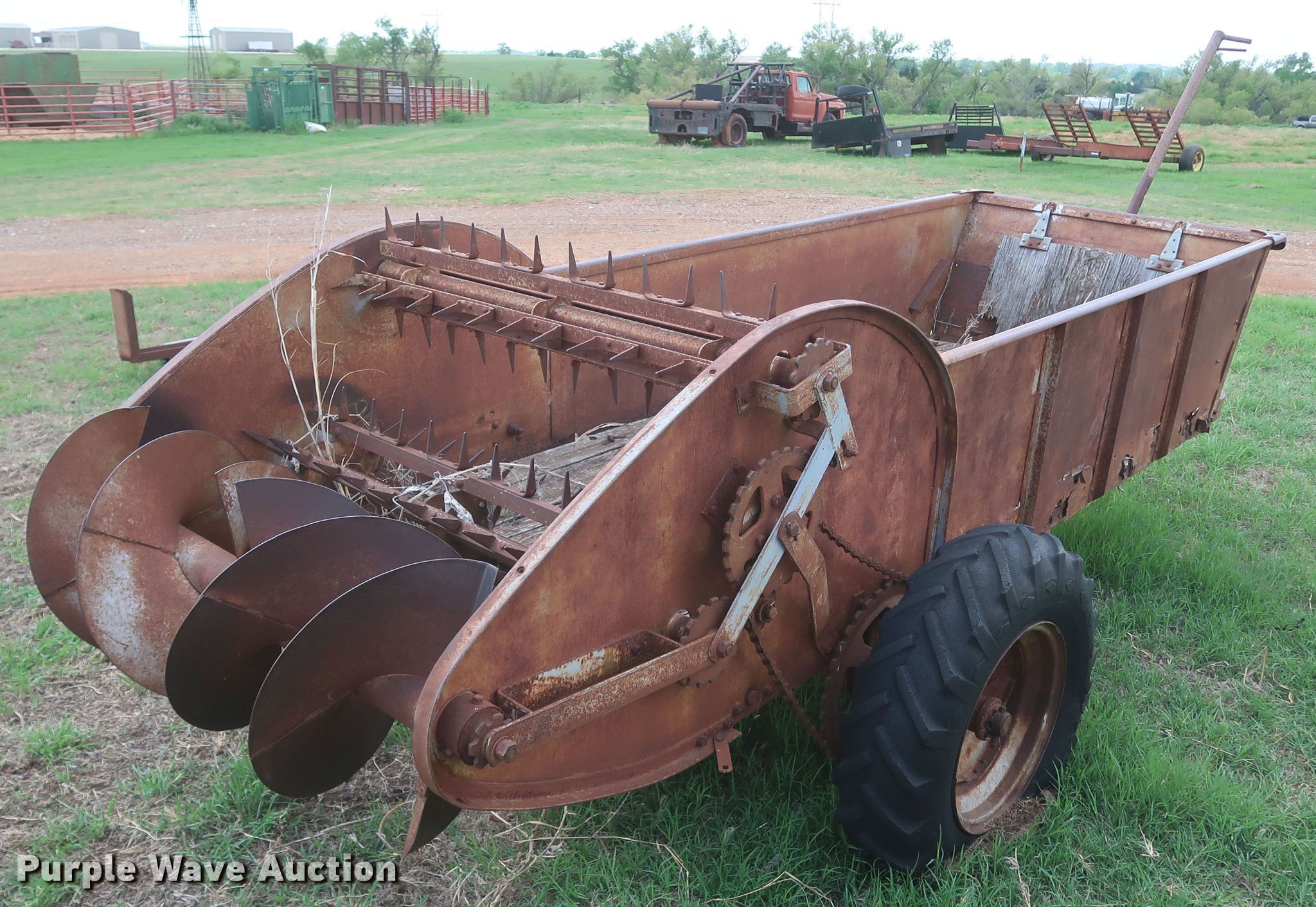 Purple Wave is selling a used Manure Spreader in Oklahoma. This item is a Ferguson A-J0-20 manure spreader with the following: Serial: 3888
