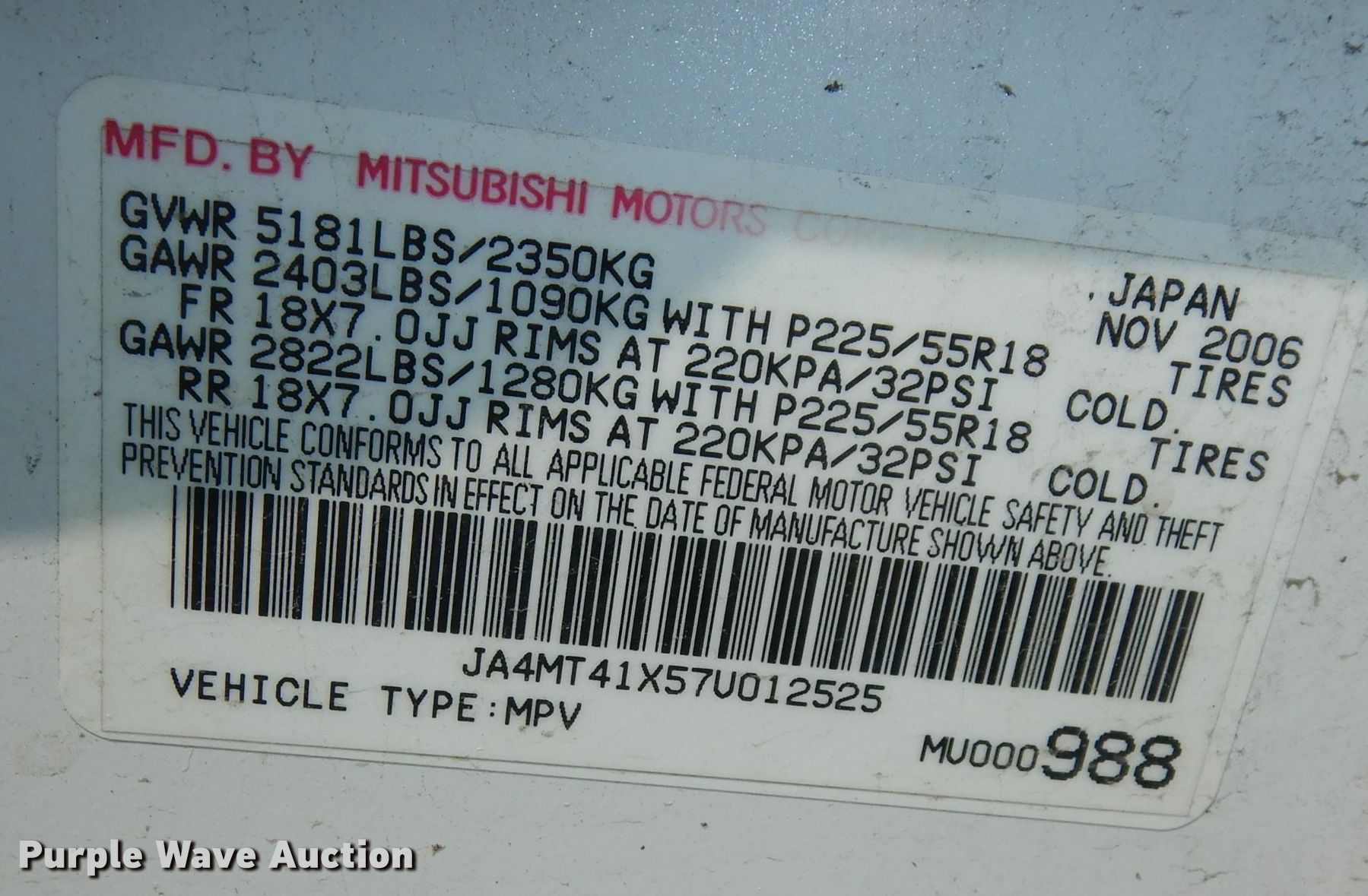 - VIN: JA4MT41X57U012525