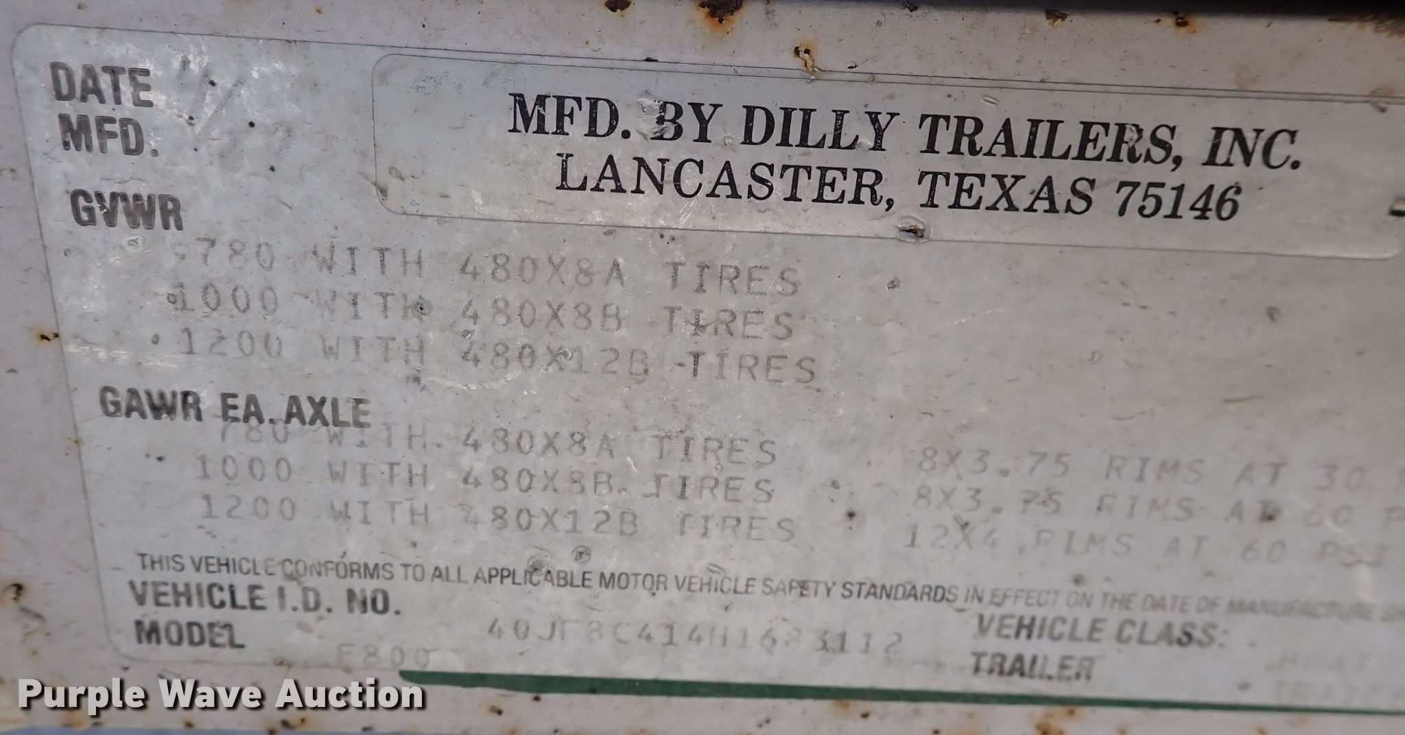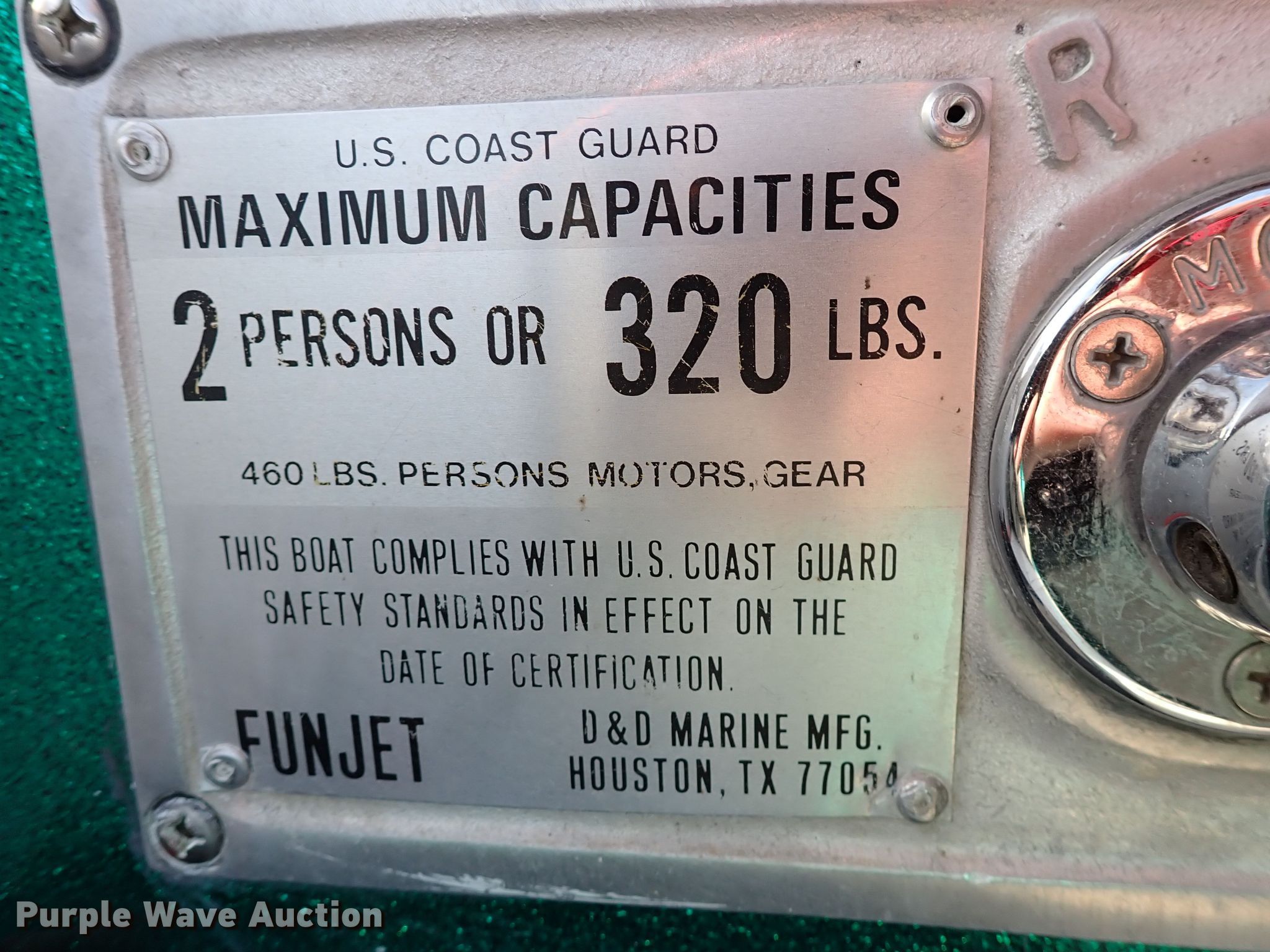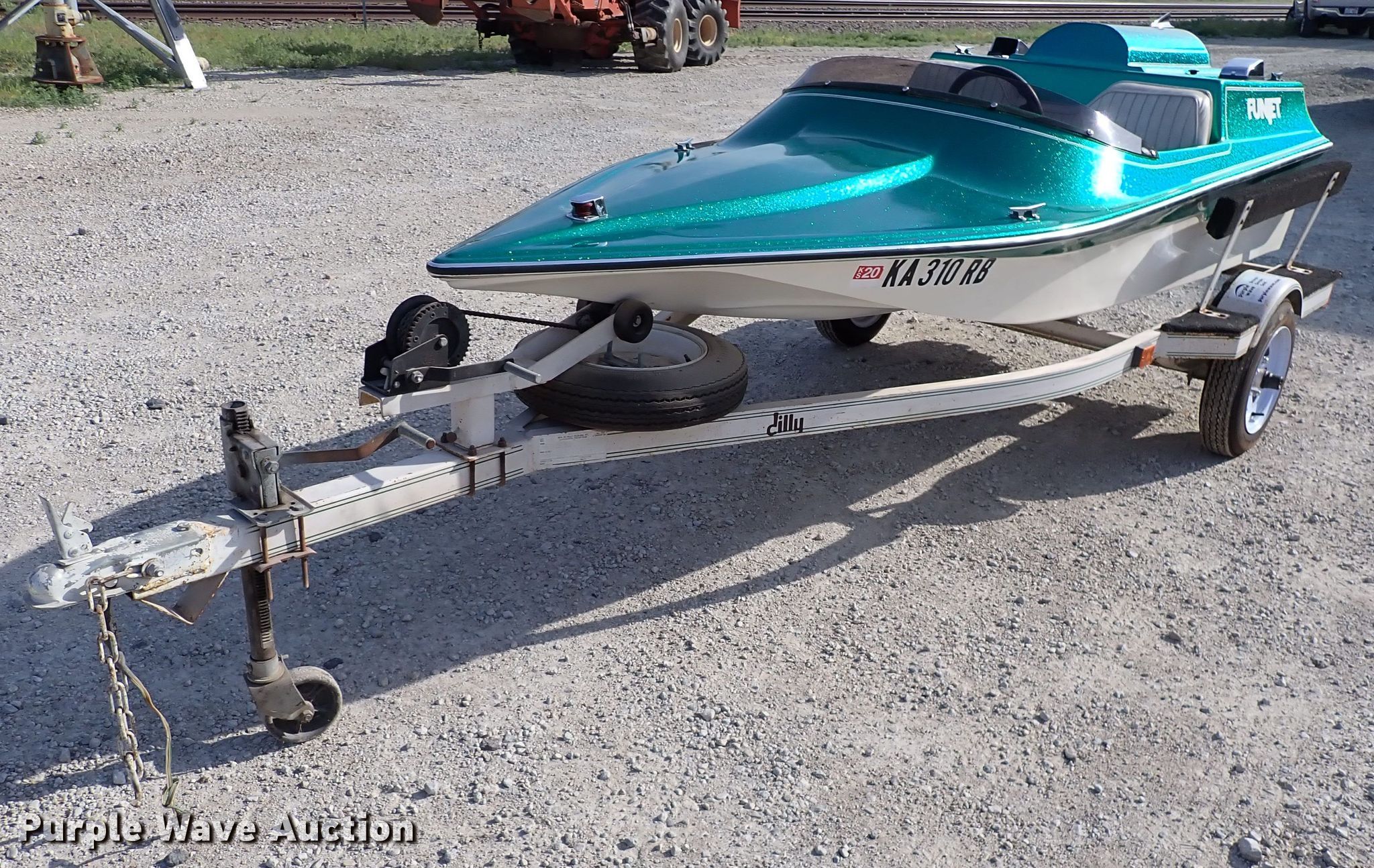 1987 Funjet boat. Hull ID: DDQJ2758D787. Engine Engine type: Inboard, Suzuki, Cylinders: 2, Fuel type: Gas. Operators station Capacity Person: 2, 320 lbs. Trailer 2017 Dilly F800, VIN: 40JF8C414H1683112, Overall length: 13', Overall width: 62", GVWR: 1,200 lbs, Ball hitch size: 2", Axles: Single, Tire size: 4.80-12. Transfer of ownership documentation will be a bill of sale. Wamego Recycling. Wamego, KS 66547