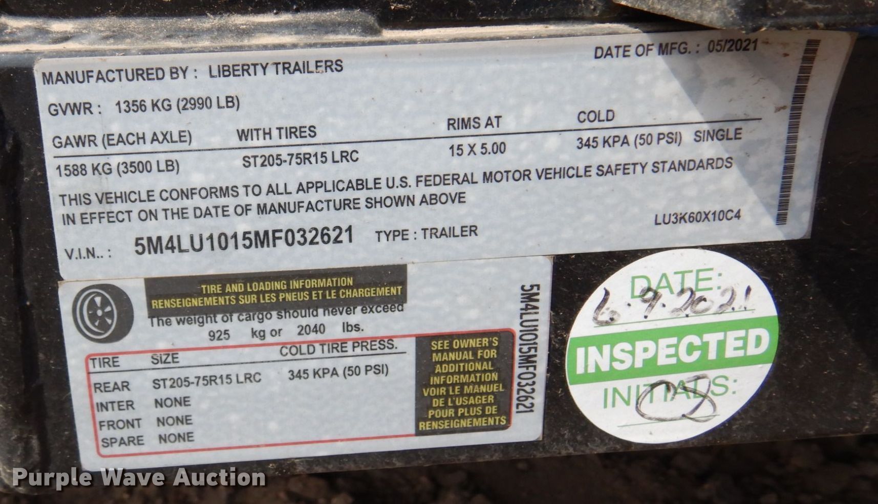 Purple Wave is selling a used Car or Utility Trailer in Minnesota. This item is a 2021 Liberty utility trailer with the following: VIN: 5M4LU1015MF032621