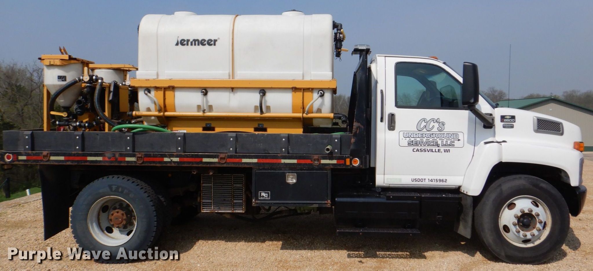 2005 Chevrolet C8500 flatbed truck. Miles: 83,273 on odometer, VIN: 1GBM8C1325F528071. Engine Displacement: 7.6L, Cylinders: 8, Fuel type: Diesel, HP: 350. Transmission Allison, Automatic. Chassis Axles: Single, Suspension: Spring, Brakes: Air, PTO, GVWR: 33,000 lbs. Interior AC, Heat, Cruise control, Brake controller. Features Flatbed Omaha, Serial: 186255, 14' 3" L x 7' 10" W, Removable sides. Tires Size: 11R22.5. Notes Windshield chipped or cracked, Fluid mixing system will be removed prior to auction, not included. Wisconsin title. Title distribution may be delayed up to 14 days from verification of funds. CC's Underground Service. 10609 Cadwell Rd. Cassville, WI 53806