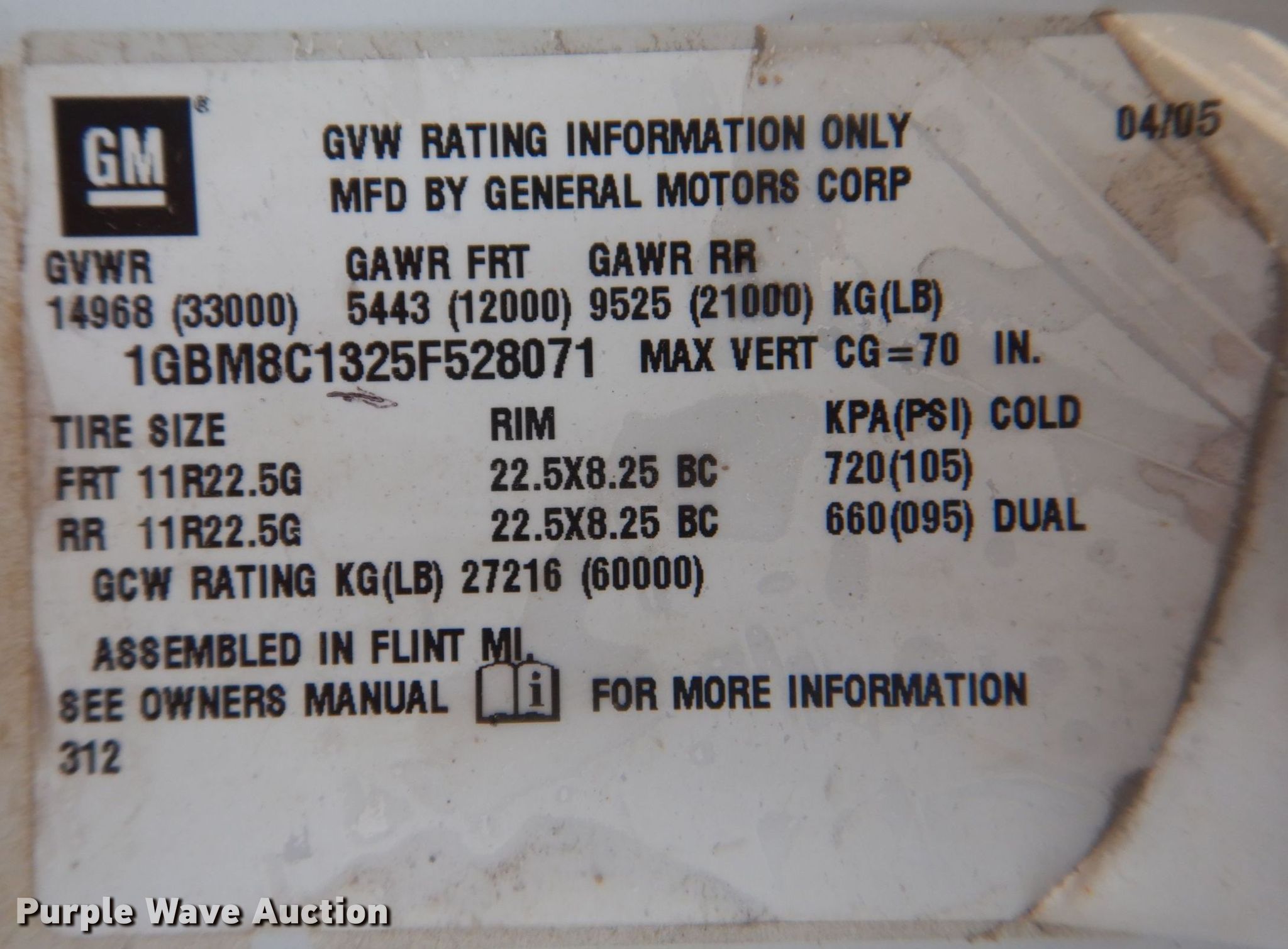 Purple Wave is selling a used Flat Bed Truck in Wisconsin. This item is a 2005 Chevrolet C8500 flatbed truck with the following: Miles: 83,273 on odometer, VIN: 1GBM8C1325F528071