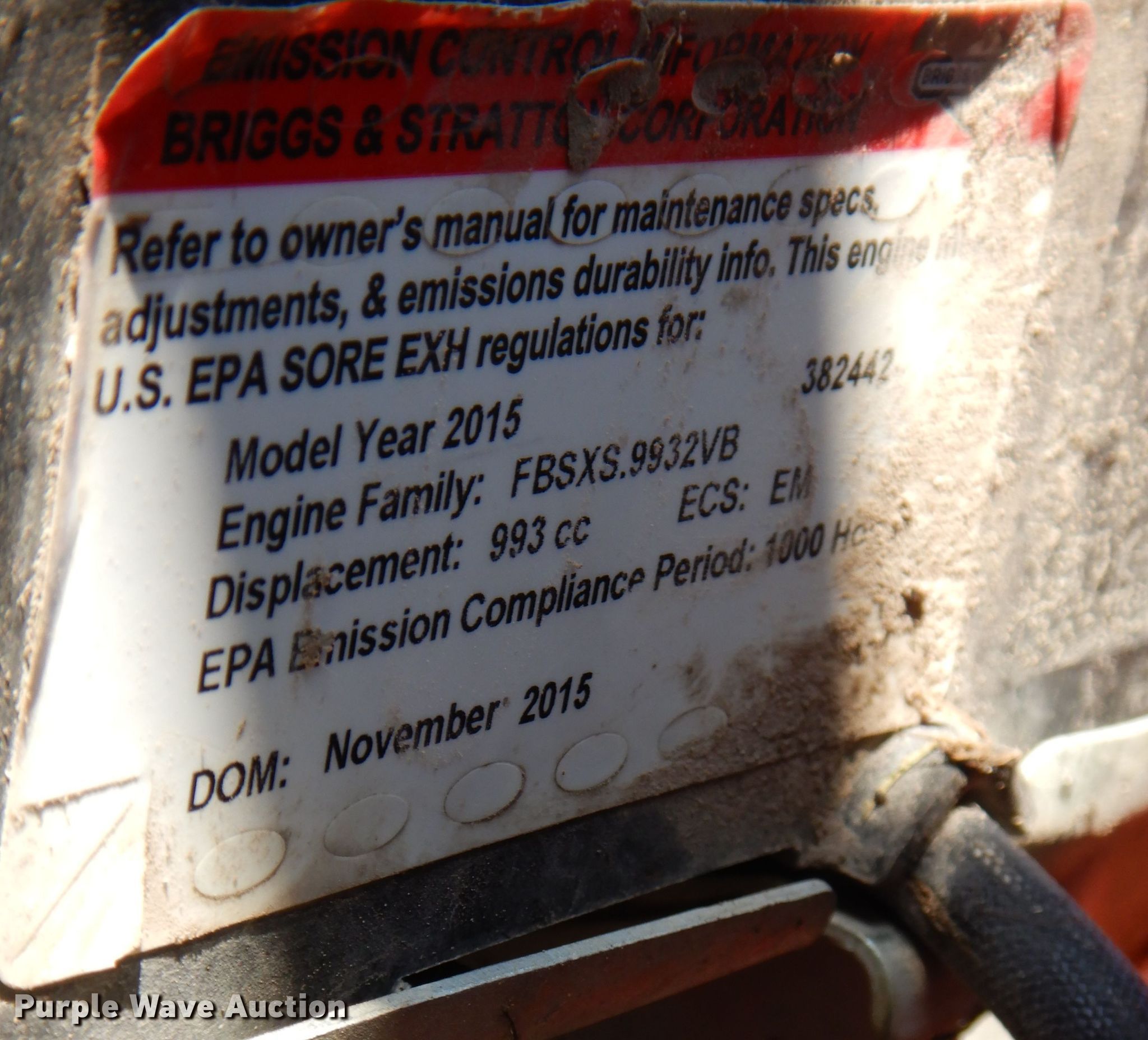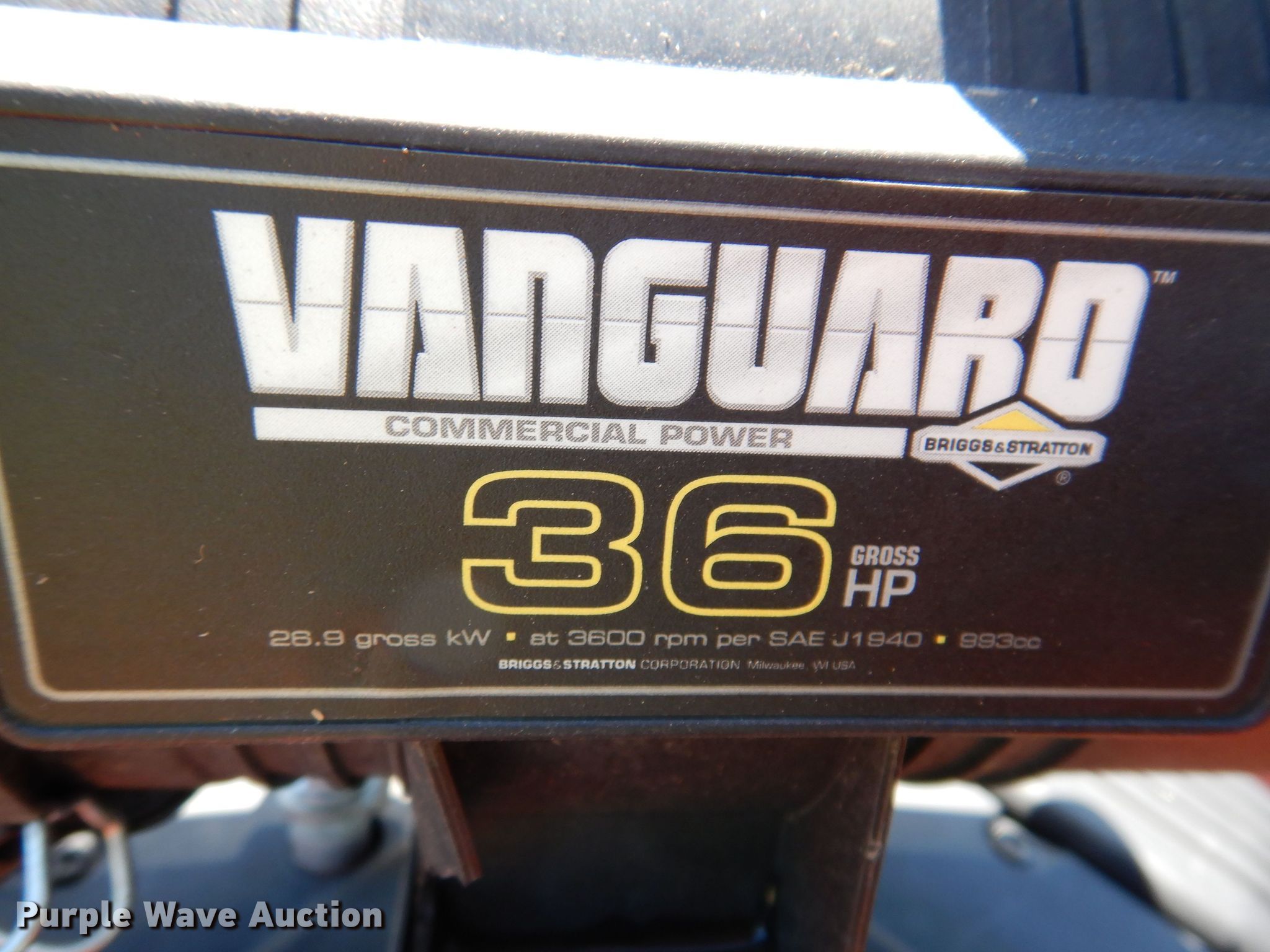 Bad Boy Outlaw XP ZTR lawn mower. Hours: 782 on meter, Cutting width: 61", Serial: BBX6136VA02161030. Engine Briggs & Stratton Vanguard, Serial: 382442, Displacement: 993 cc, Cylinders: 2, Fuel type: Gas, HP: 36. Transmission Hydrostatic. Chassis PTO. Operators station OROPS. Tires Front: 13x6.5-6, Rear: 24x12-12NHS. The Machinery Barn. 121 S 29th St. Centerville, IA 52544