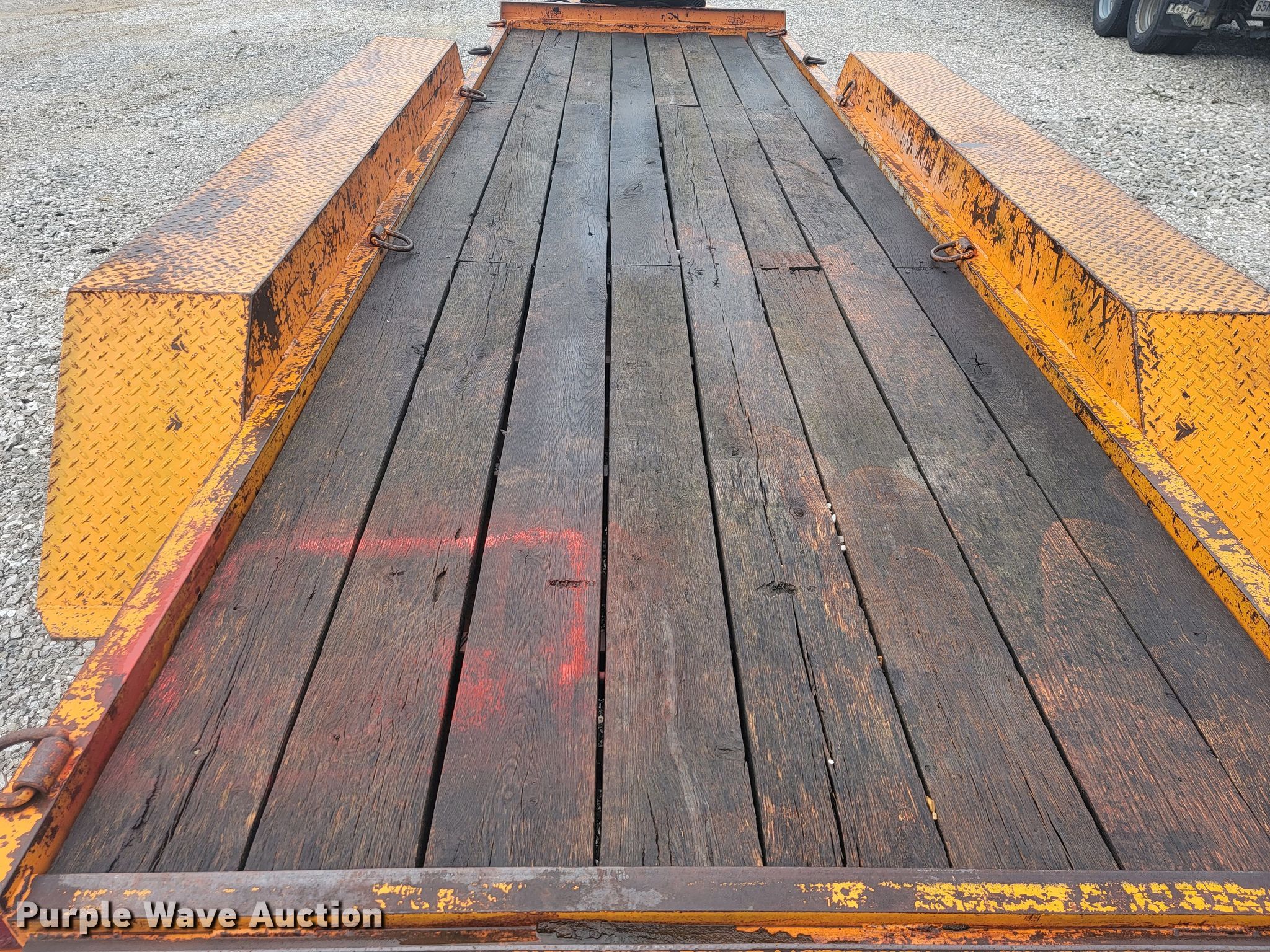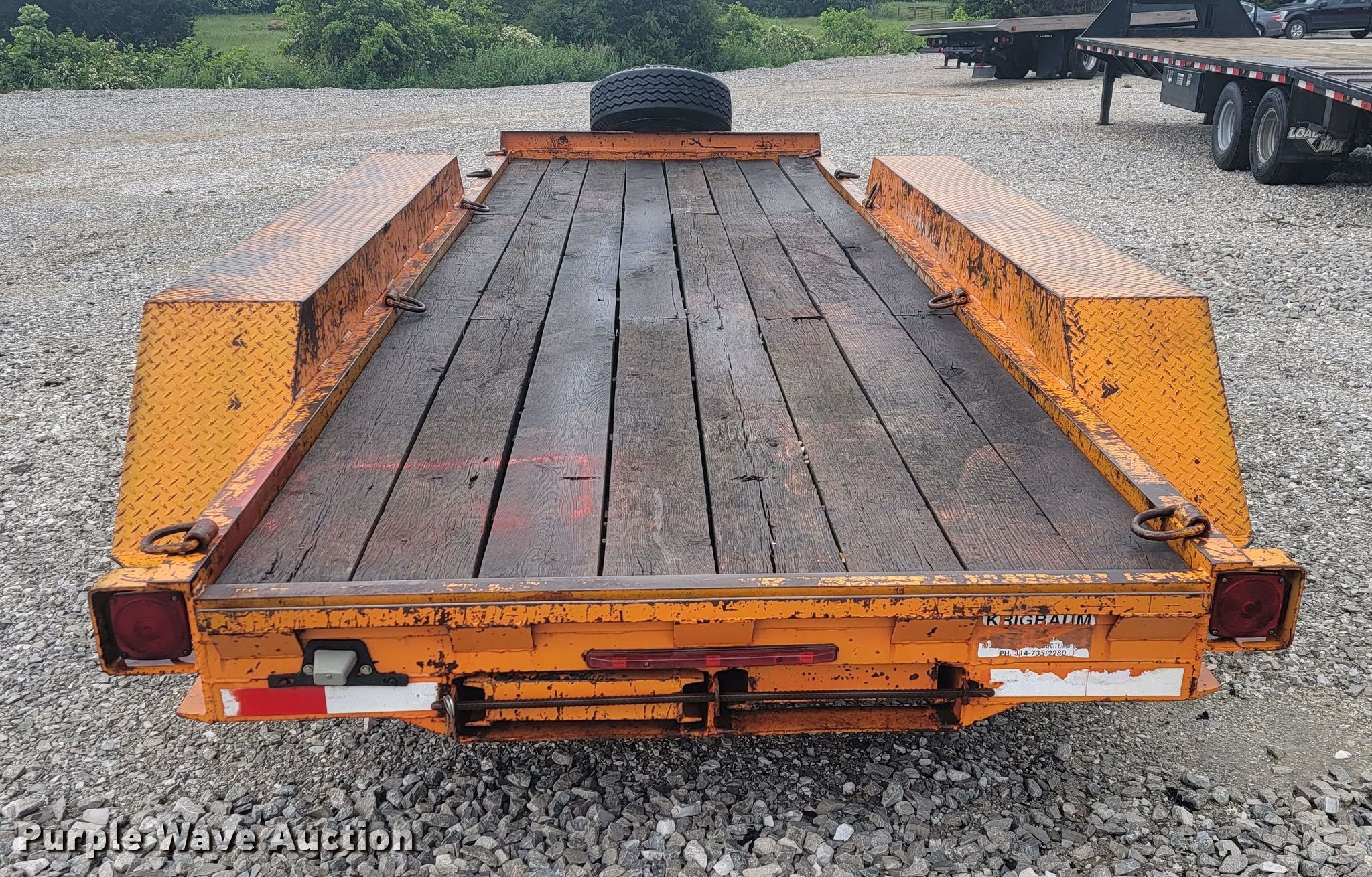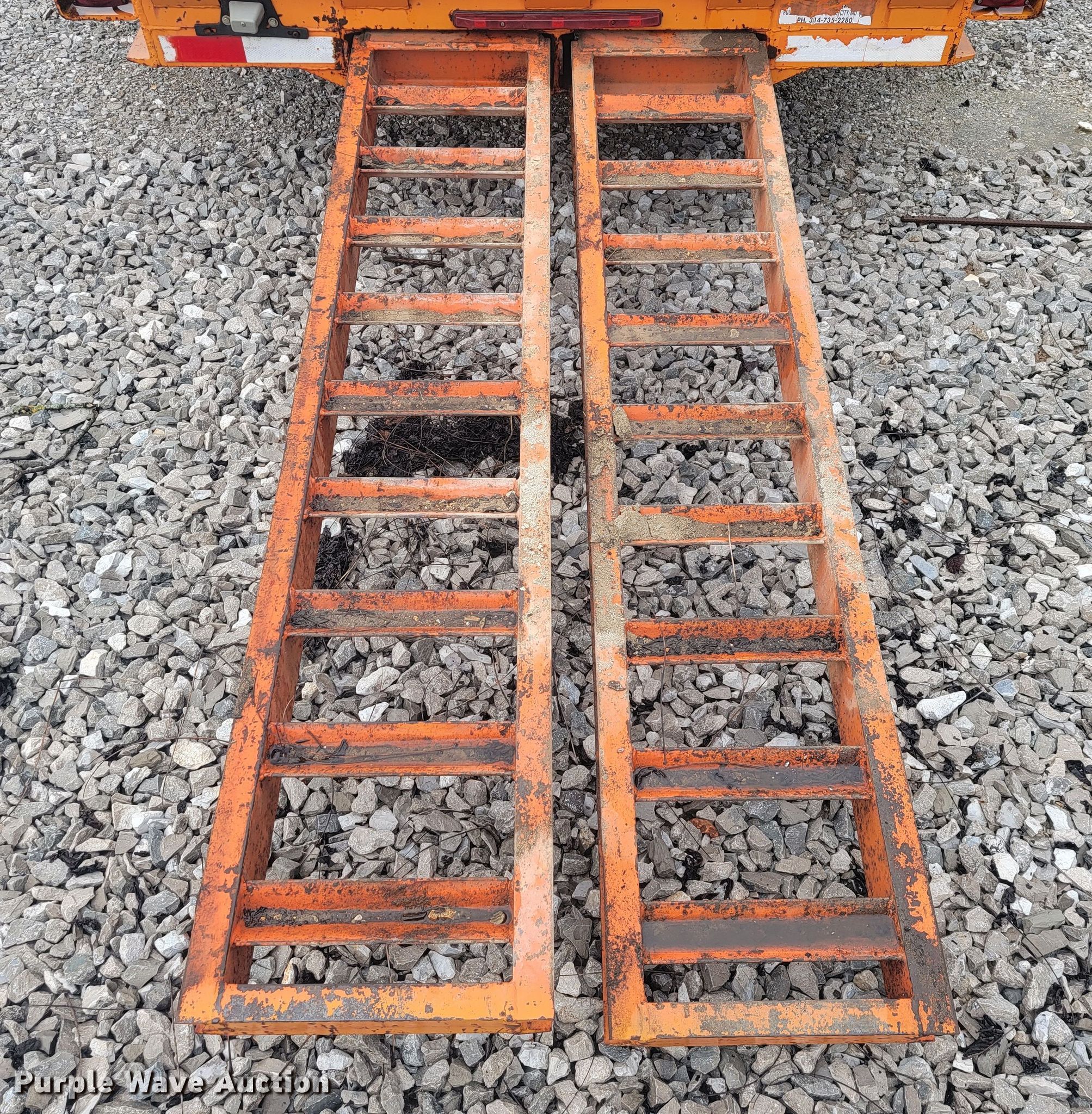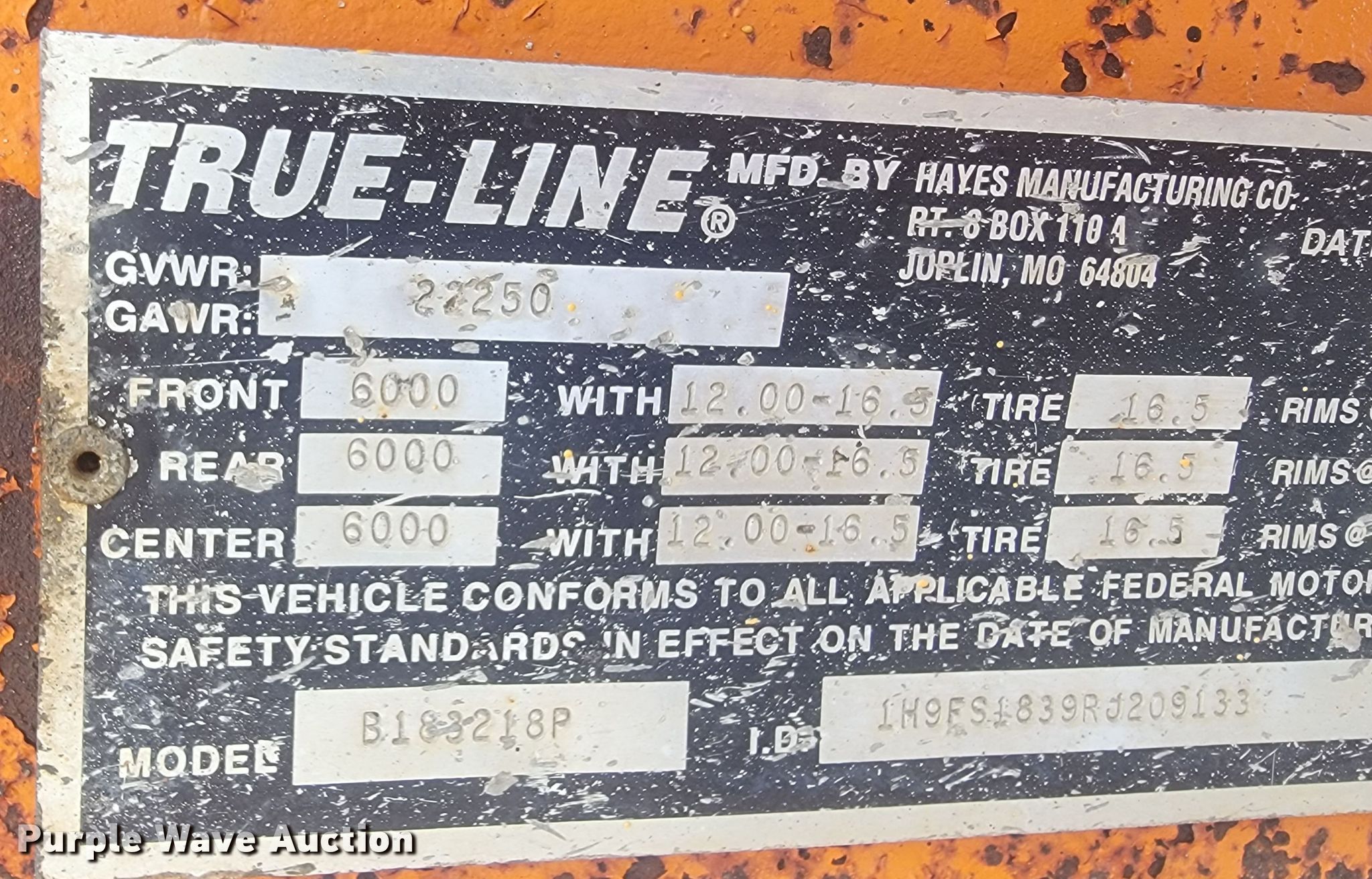 1994 True Line B18318P equipment trailer. VIN: 1H9FS1839RJ209133. Dimensions Overall: 22' L x 8' W, Deck: 18' L x 66" W, Deck height: 26", Ramps: Manual Length: 6'. Features Deck type: Wood. Chassis Hitch: Pintle, Landing gear: Single, Suspension: Spring, Brakes: Electric, Axles: Triple, GVWR: 22,250 lbs. Tires Size: 12-16.5LT. Missouri title. Rogers Backhoe. 9372 E Farm Road 186. Rogersville, MO 65742