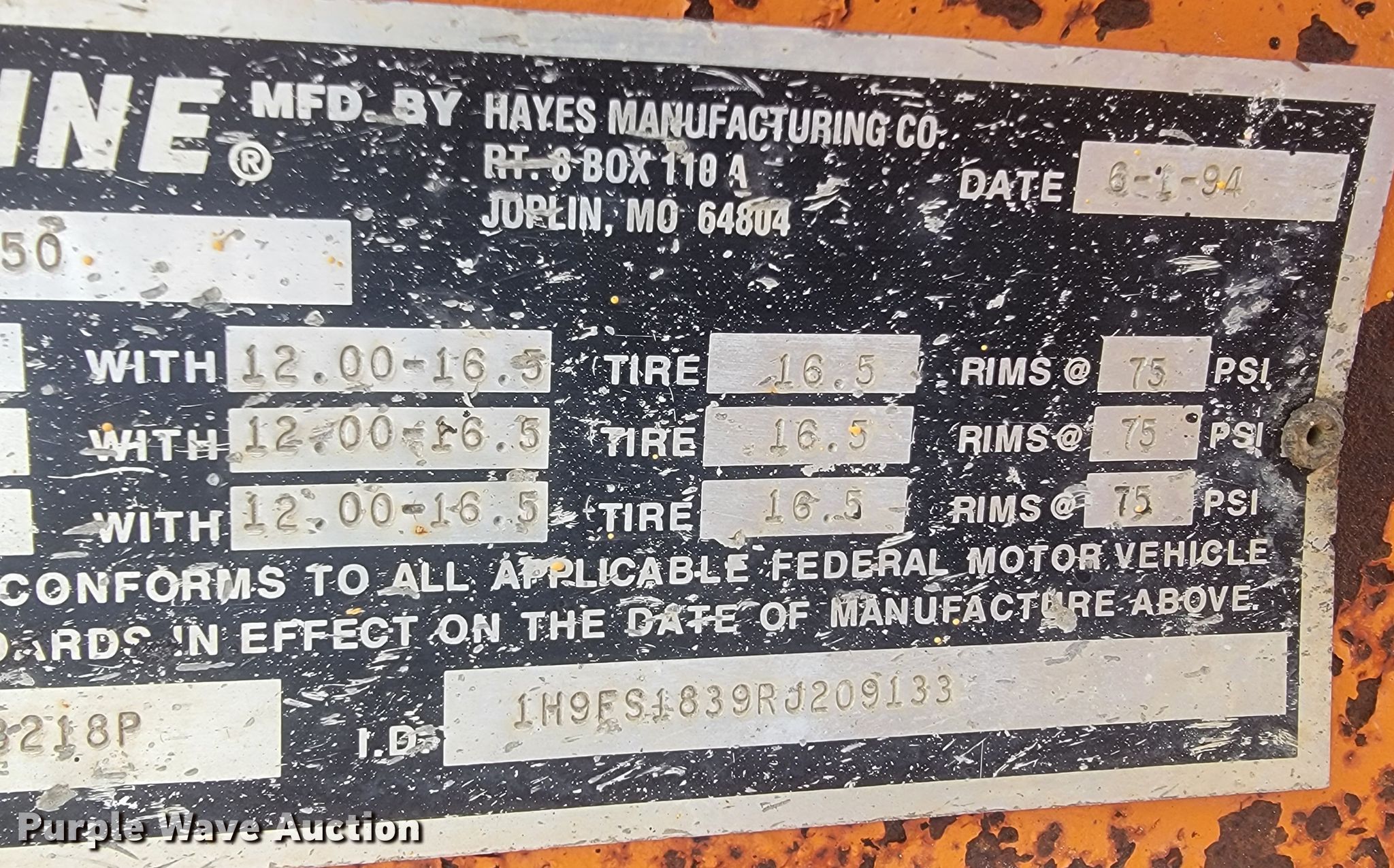 Purple Wave is selling a used Equip. Trailer in Missouri. This item is a 1994 True Line B18318P equipment trailer with the following: VIN: 1H9FS1839RJ209133