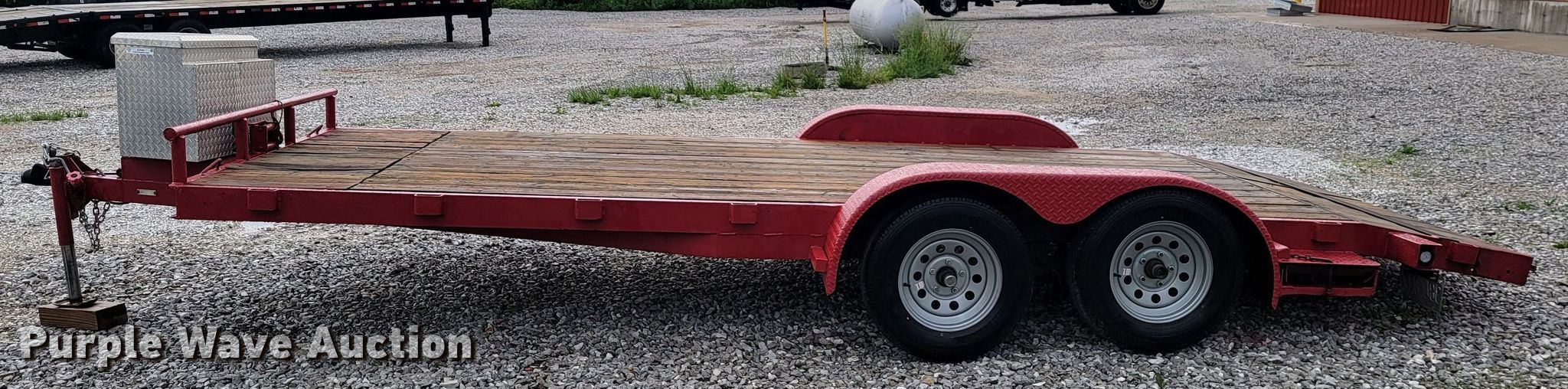 2000 Shop built utility trailer. VIN: DRXMVB000242839MO. Dimensions Overall: 23' L x 102" W, Deck: 15' 8" L x 7' W, Side height: 26", Tail length: 32" Length: 4'. Features Deck type: Wood, Winch Strong arm. Chassis Ball hitch: 2 5/16", Landing gear: Single, Suspension: Spring, Brakes: Electric, Axles: Tandem. Tires Size: 205/75R15. Missouri title. Rogers Backhoe. 9372 E Farm Road 186. Rogersville, MO 65742