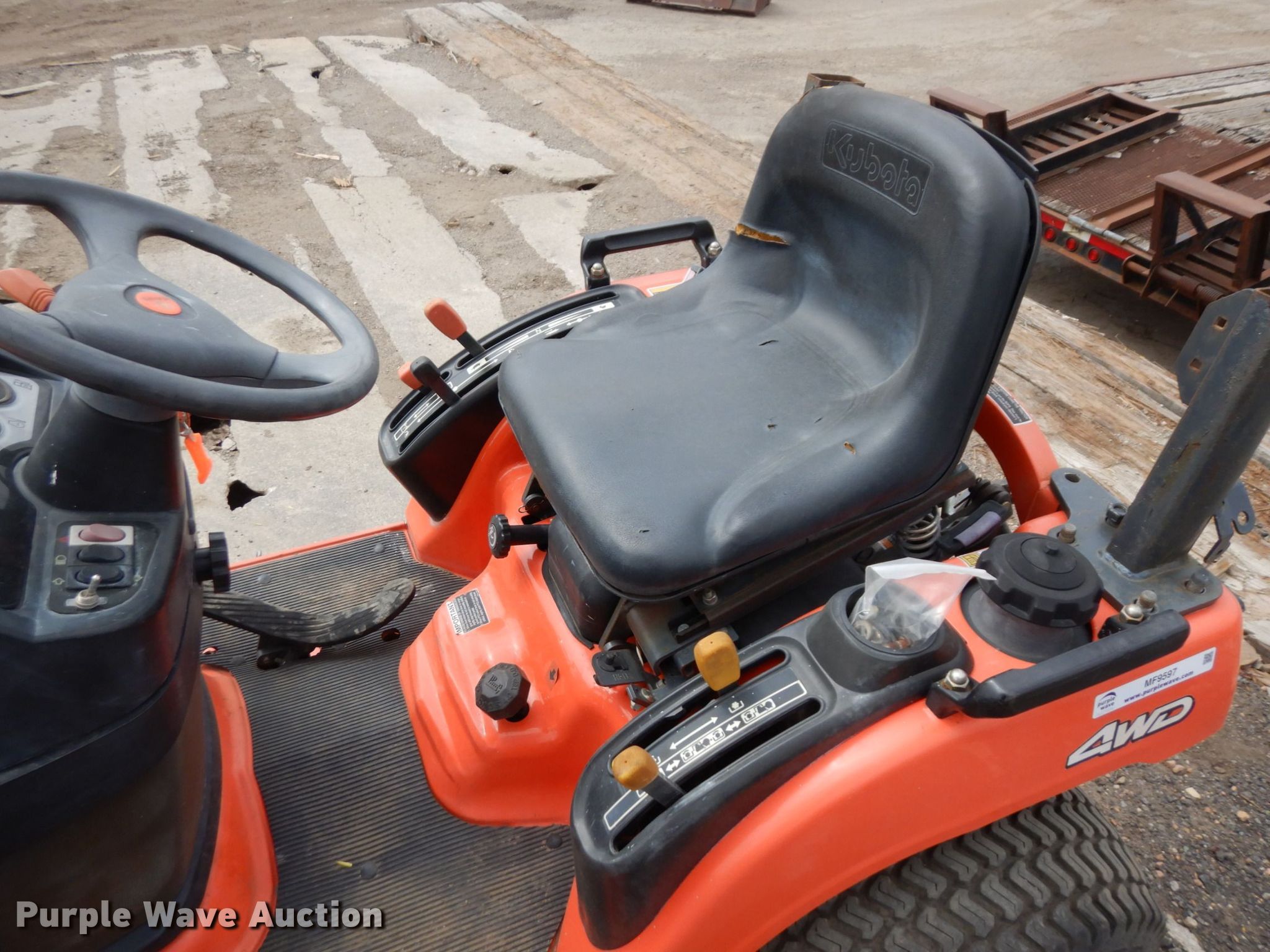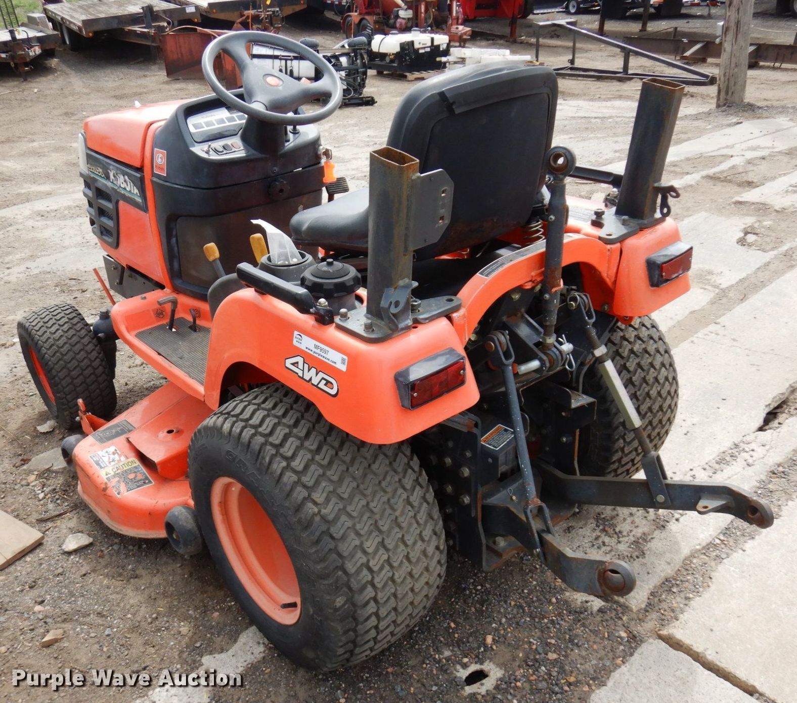 Purple Wave is selling a used Lawn Mower in Minnesota. This item is a Kubota BX1500 lawn mower with the following: Hours: 949 on meter, Cutting width: 50", Serial: 3KBXL.898KCB