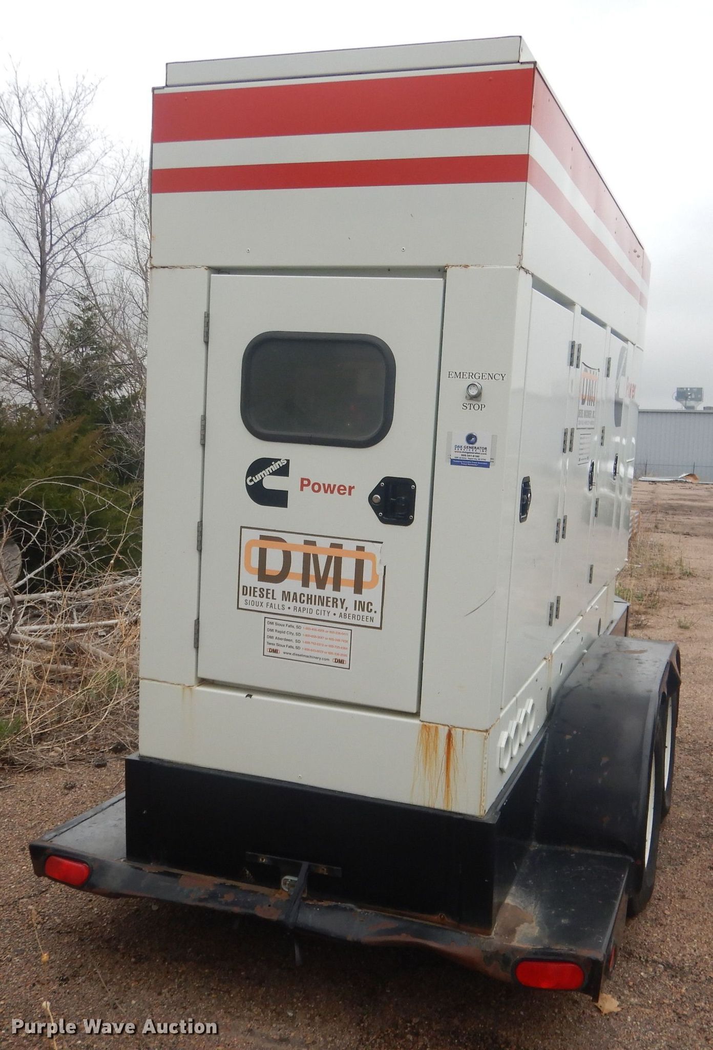 Onan 100DGDB generator. Hours: 129 on meter, Hours: Unknown, VIN: I9909888739. Engine Cummins 6BT5.9, Cylinders: 6, Fuel type: Diesel. Electric Motor Colman, Volts: 12, Phase: Three. Features Generator kW: 100, Phase: Three, Electric start, Fuel tank. Trailer 16' L x 67" W, Ball hitch size: 2 5/16", Suspension: Spring, Axles: Tandem, Tire size: 225/75R15. Notes Load test report available upon email request to [email protected]. Transfer of ownership documentation will be a bill of sale. First National Bank of Gordon. North Platte, NE 69101