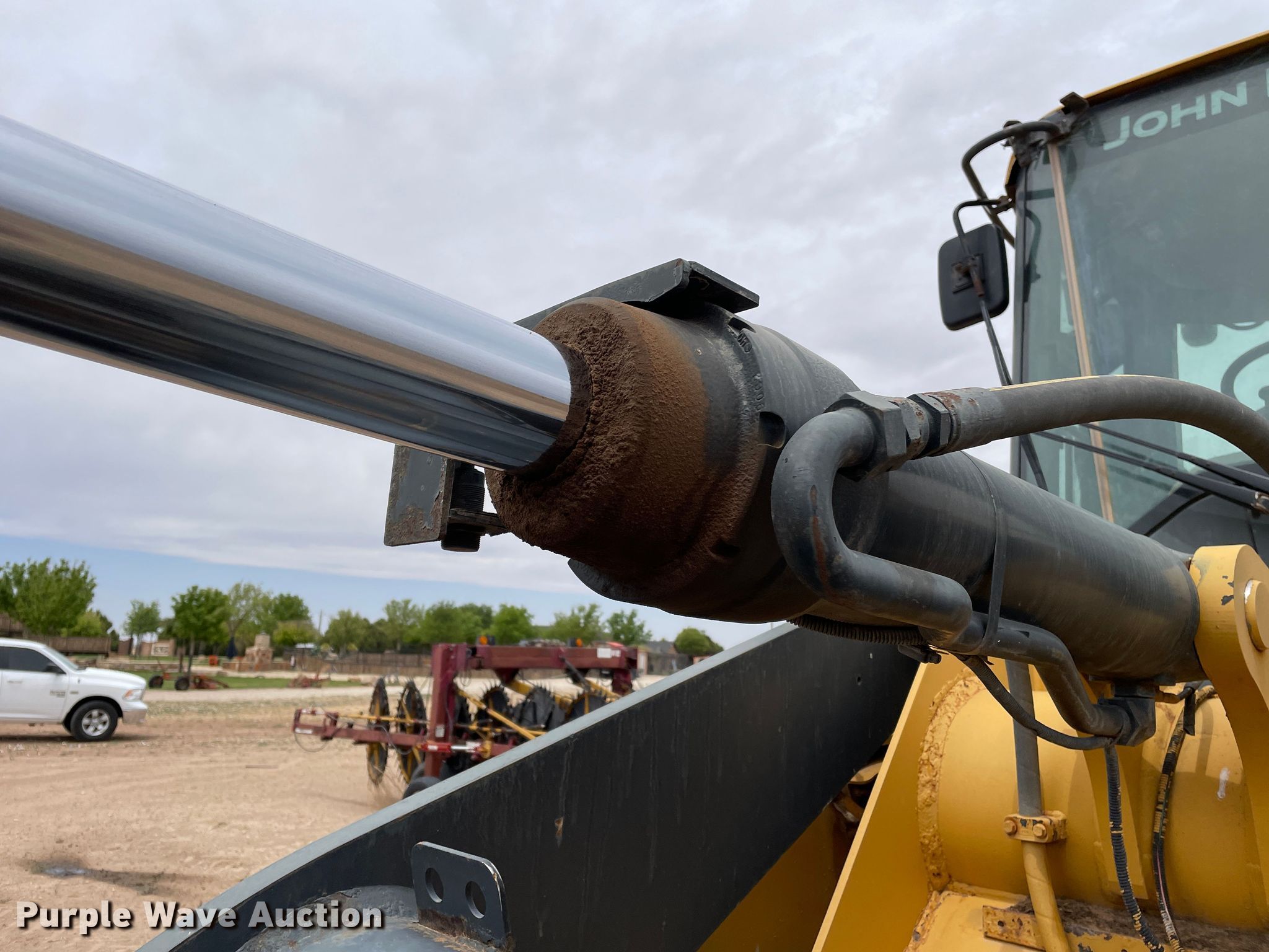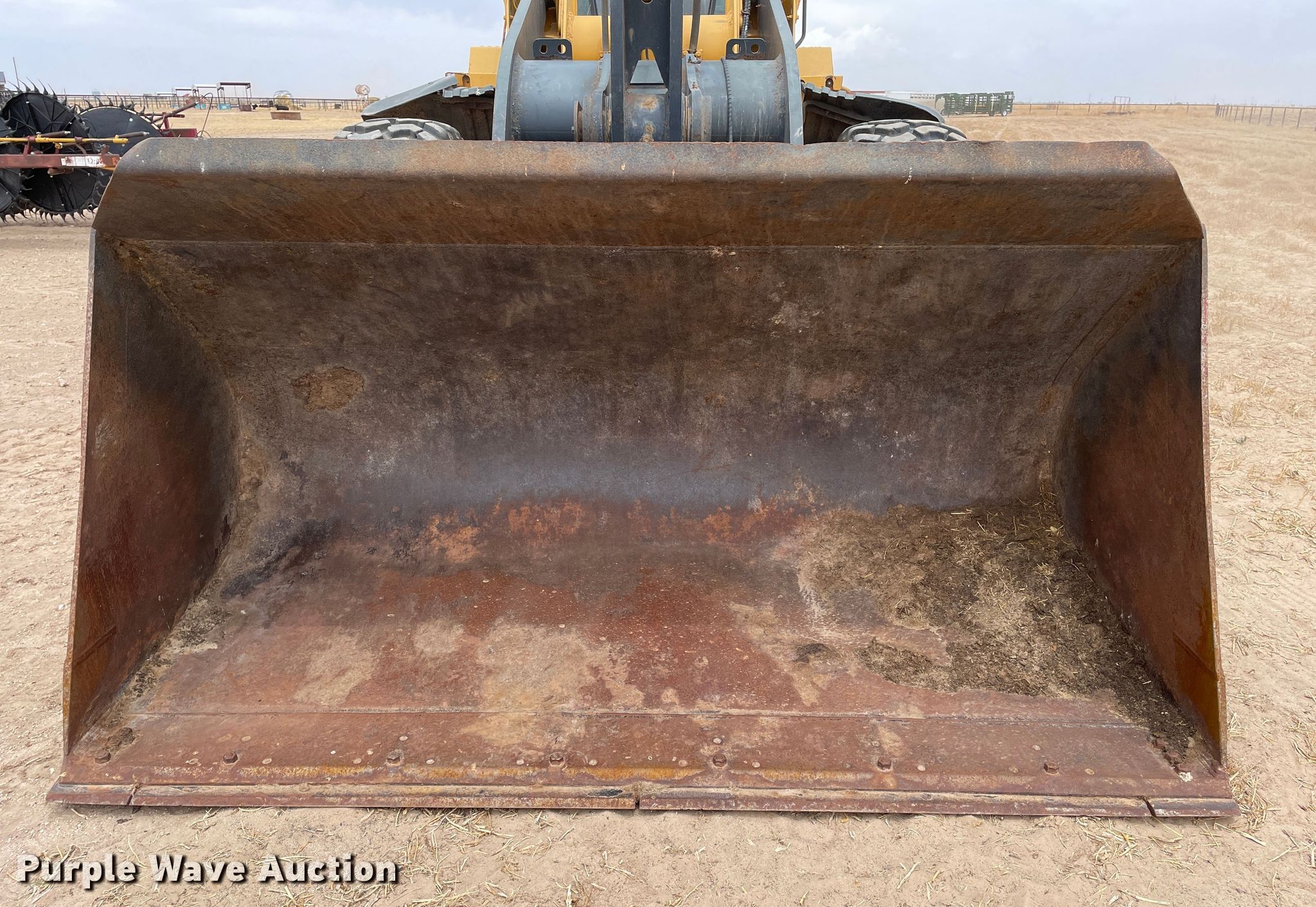 2014 John Deere 624K wheel loader. Hours: 7,791 on meter, Serial: 1DW624KZTEF661057. Engine John Deere 6068H, Displacement: 6.8L, Cylinders: 6, Fuel type: Diesel, HP: 198. Transmission Powershift, 4F - 3R. Chassis Differential lock: Rear. Operators station Enclosed cab, AC, Heat, Bucket controls: Two-lever, Ride control. Features Bucket John Deere, Width: 104", Cutting edge: Bolt-on. Tires Size: 20.5R25. Notes Glass cracked, Glass missing, Oil leak, Exhaust components missing. Boehning Dairy. 691 County Rd 55. Earth, TX 79031
